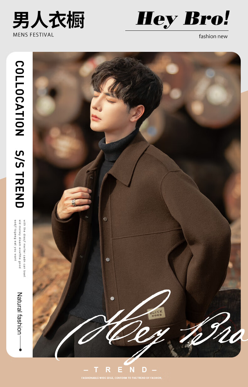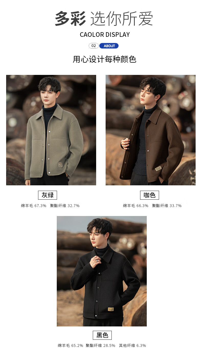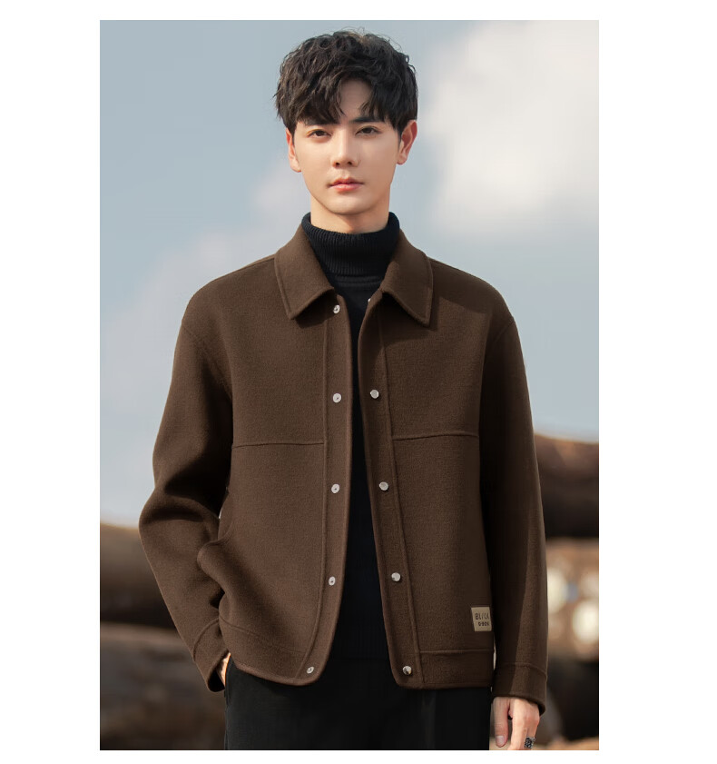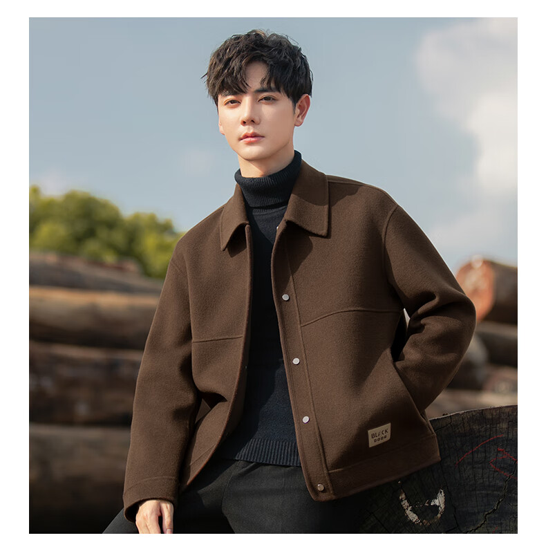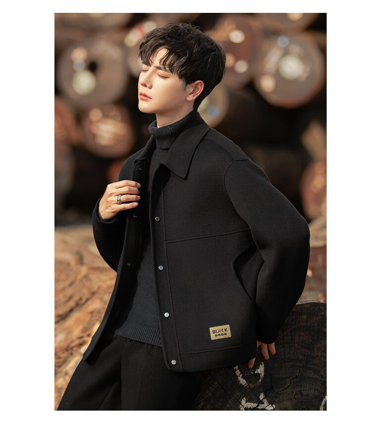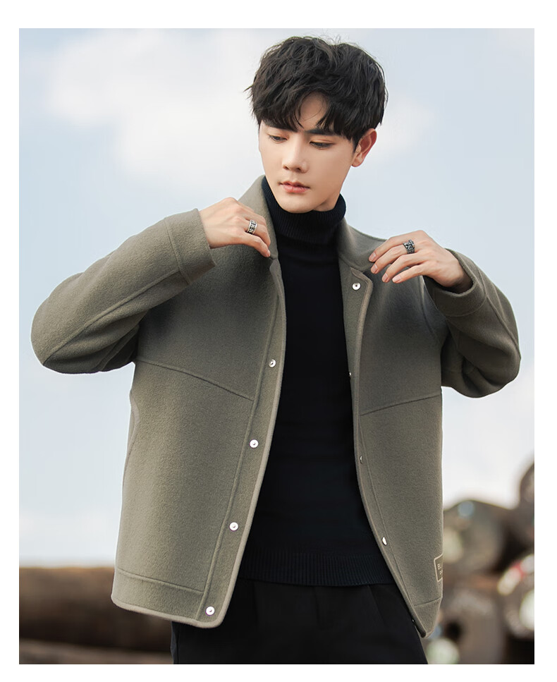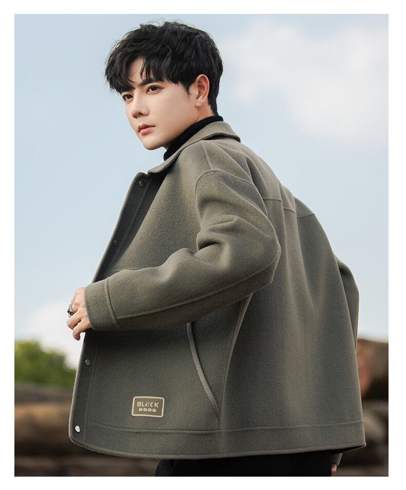 ROMON Woolen Jacket Men's Autumn and Winter New Loose Double-sided Velvet Coat Short Lapel Casual Woolen Jacket Gray Green 3XL