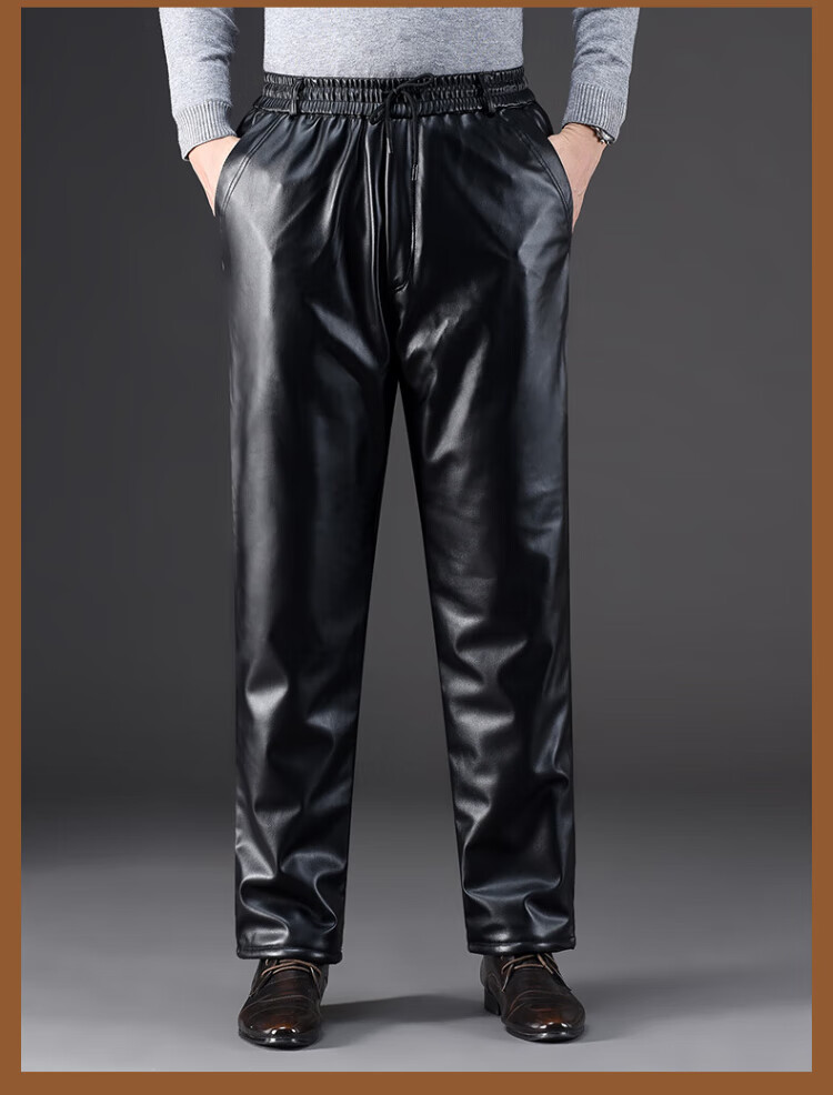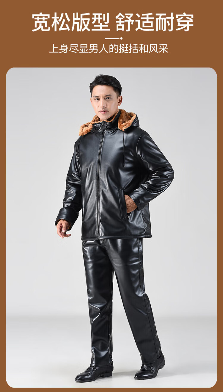Liyang Men's Leather Jacket and Leather Pants Suit Plus Velvet Thick Coat Takeaway Rider Driving Windproof Warm and Cold Resistance Workwear Leather Cotton Jacket Velvet Anti-Theft Leather Jacket and Leather Pants Suit 4XL 160-170Jin Jin is equal to 0.5 kg