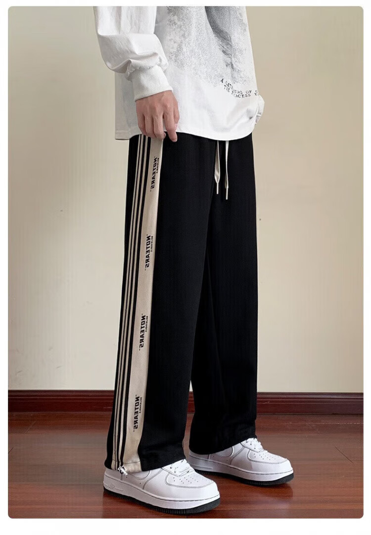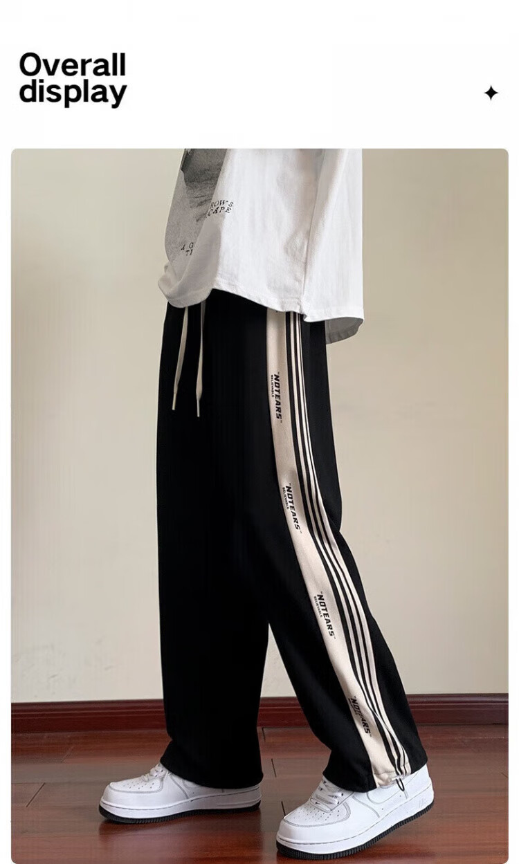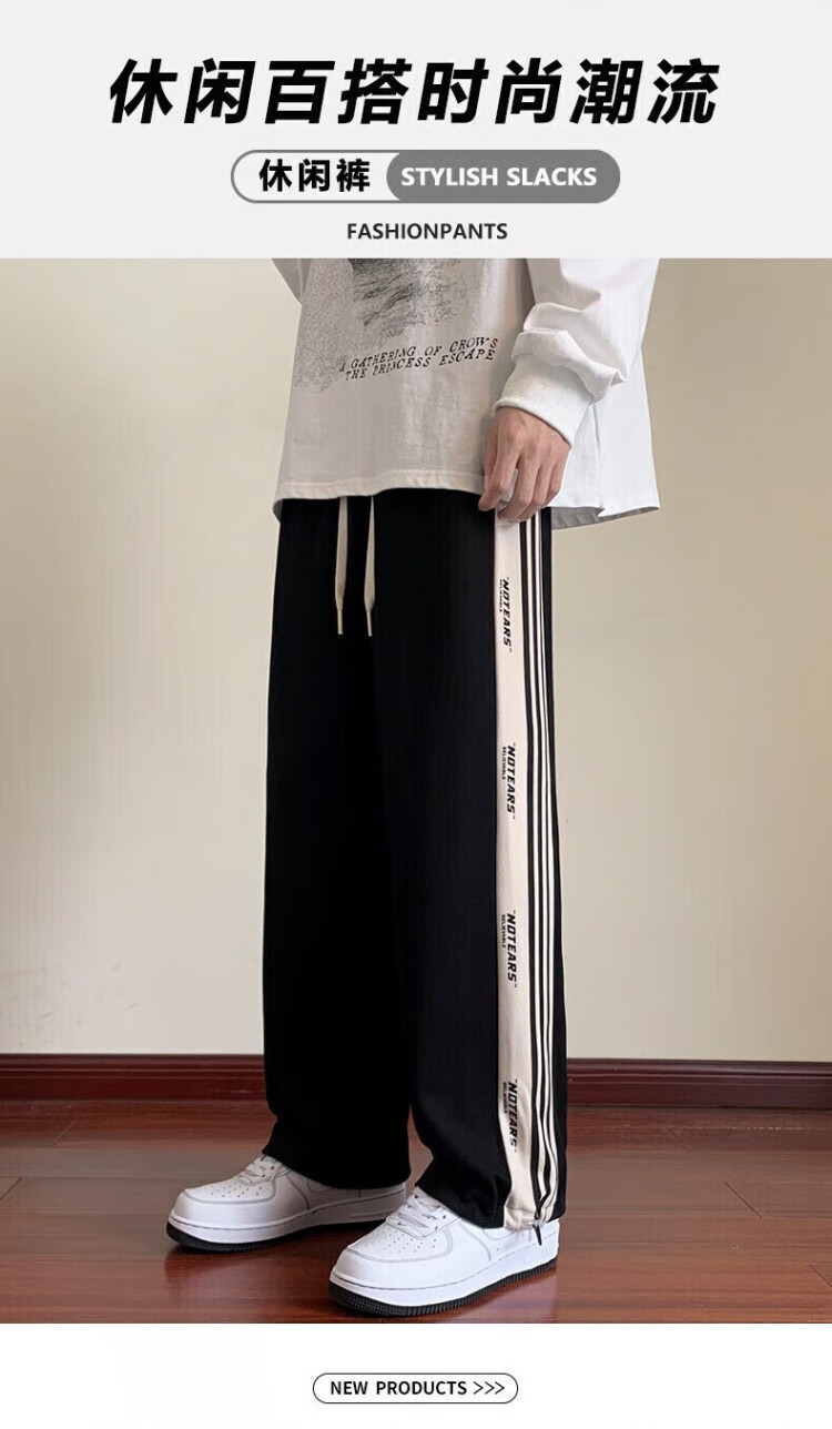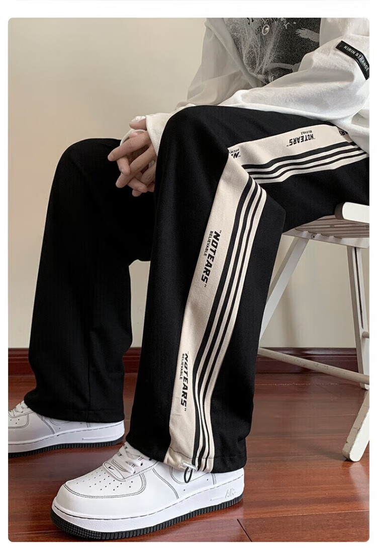 Foss Phil pants men's spring and autumn casual pants trendy striped loose sports straight trousers for men and teenagers ZX-K301 black 2XL (150Jin Jin is equal to 0.5kg -165Jin Jin is equal to 0.5kg)