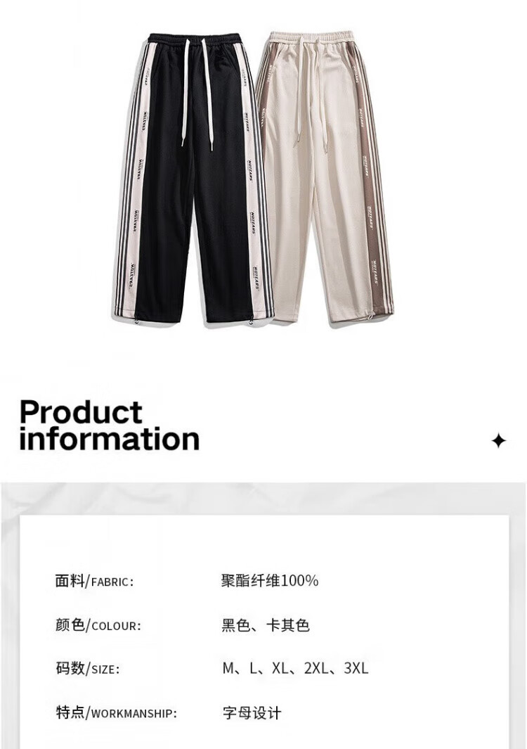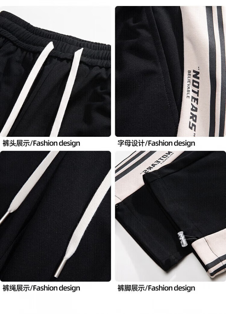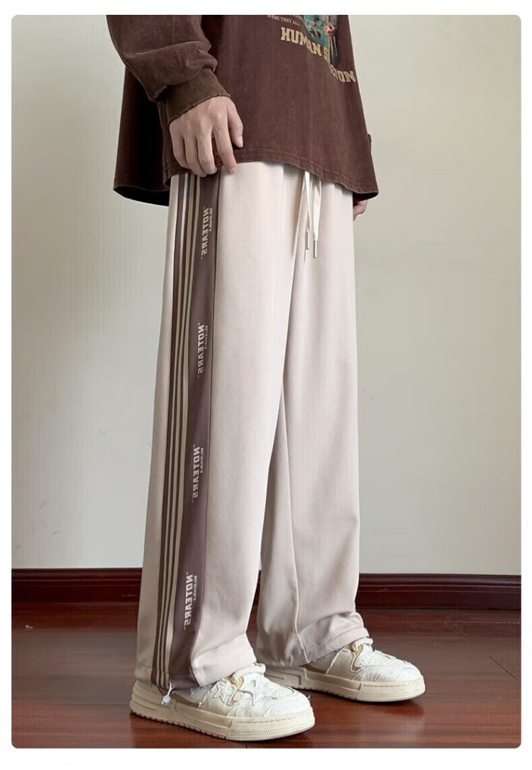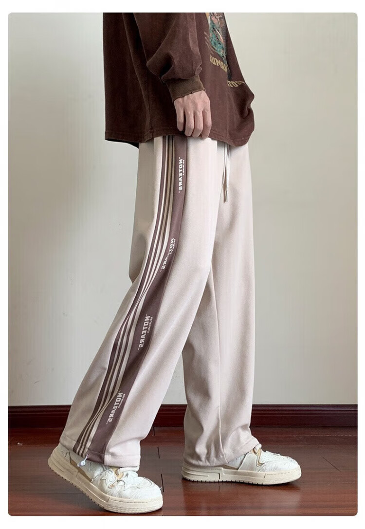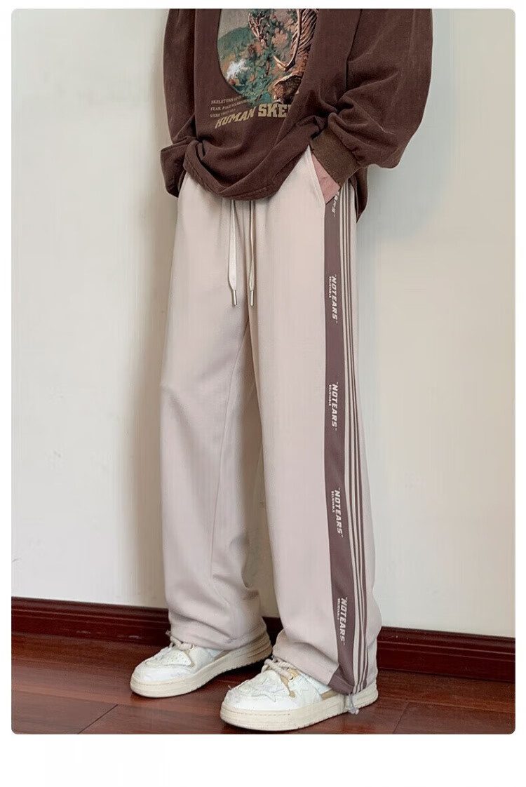 Foss Phil pants men's spring and autumn casual pants trendy striped loose sports straight trousers for men and teenagers ZX-K301 black 2XL (150Jin Jin is equal to 0.5kg -165Jin Jin is equal to 0.5kg)