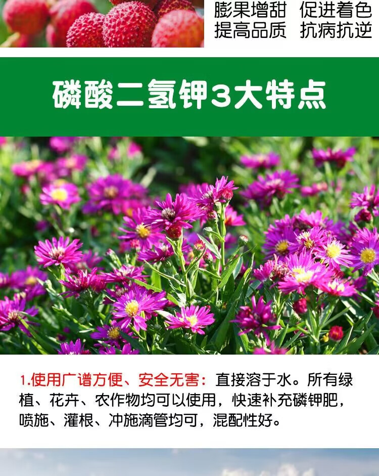 Potassium dihydrogen phosphate agricultural foliar fertilizer water-soluble fertilizer fruit and vegetable potted flowers phosphorus potassium fertilizer wheat and corn general fertilizer Potassium dihydrogen phosphate 5Jin Jin equals 0.5kg 99% customer choice