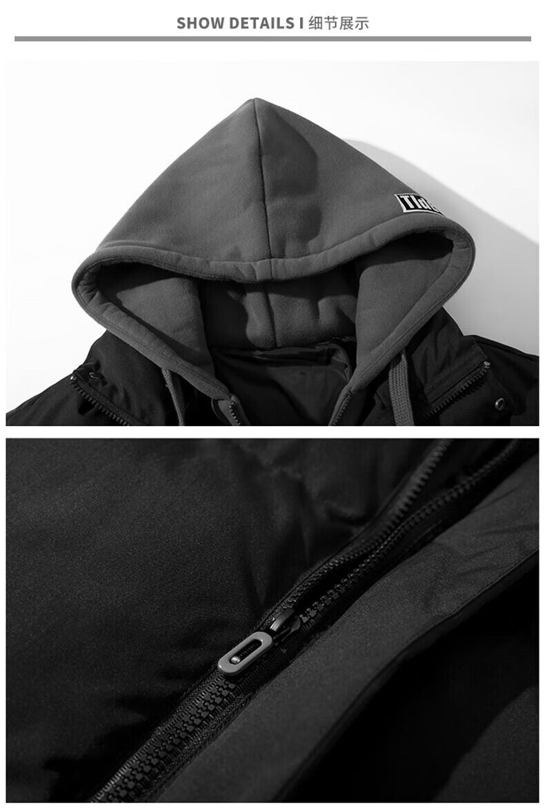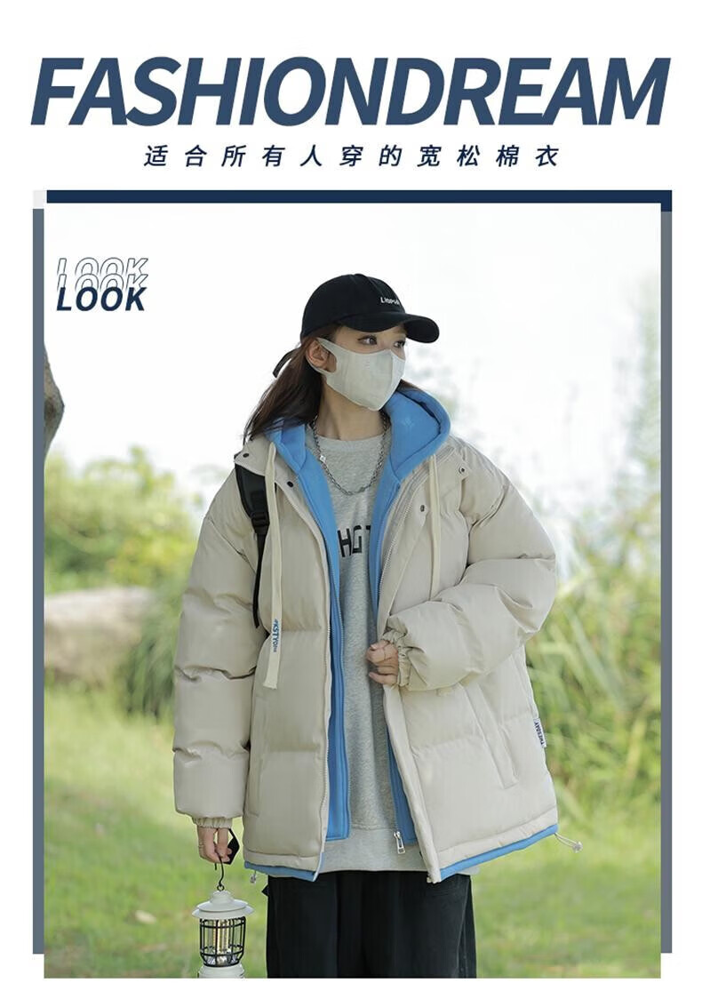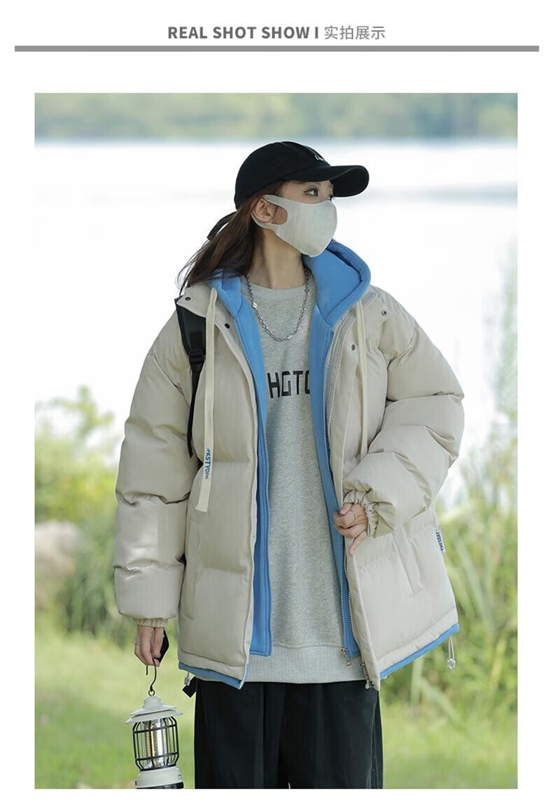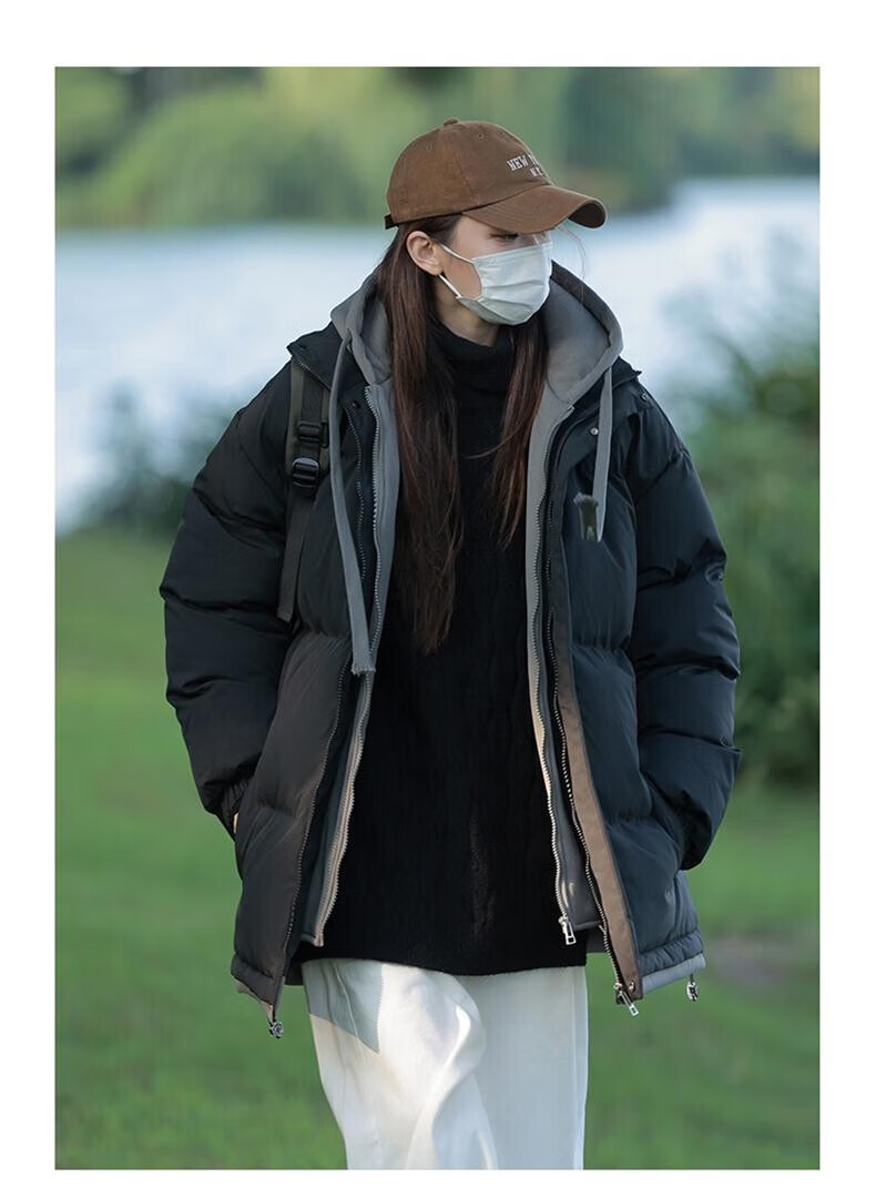 Jeanswest fake two-piece down cotton jacket for men and women in autumn and winter 2025 new couple casual jacket jacket men's trendy cotton coat to keep warm black (same style for men and women) M recommended 90-110Jin Jin equals 0.5 kg
