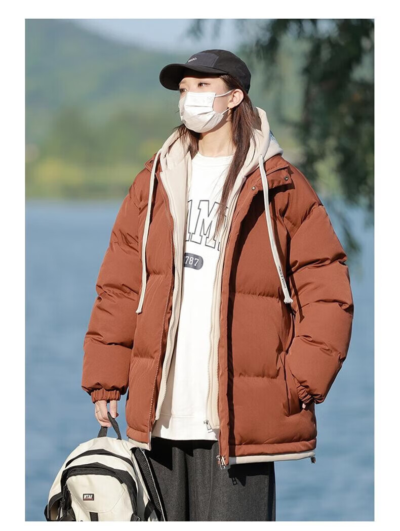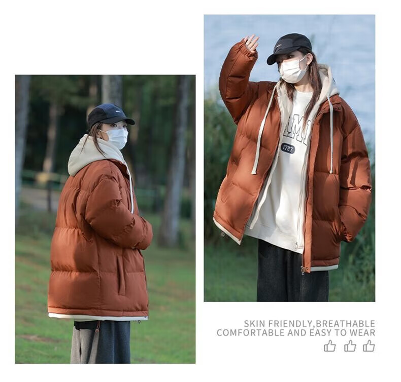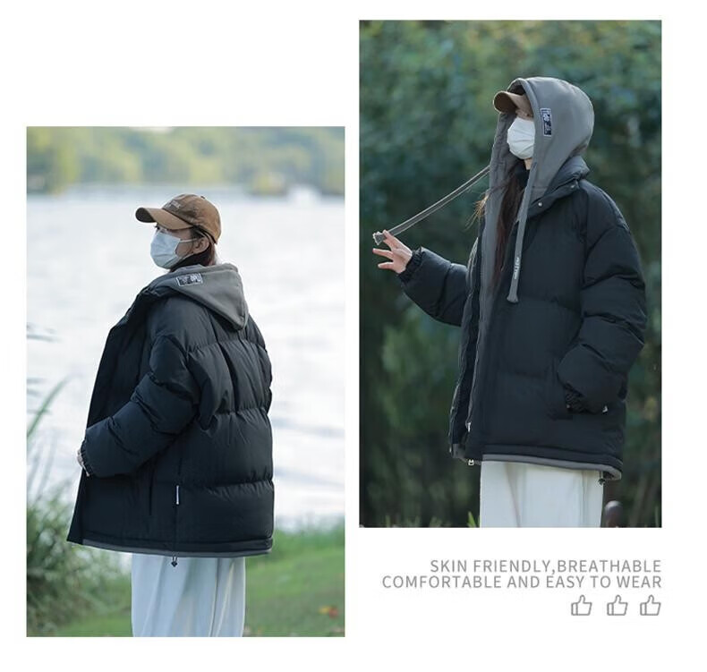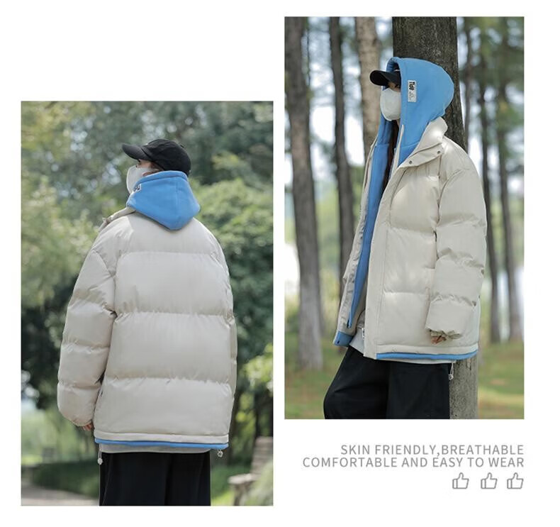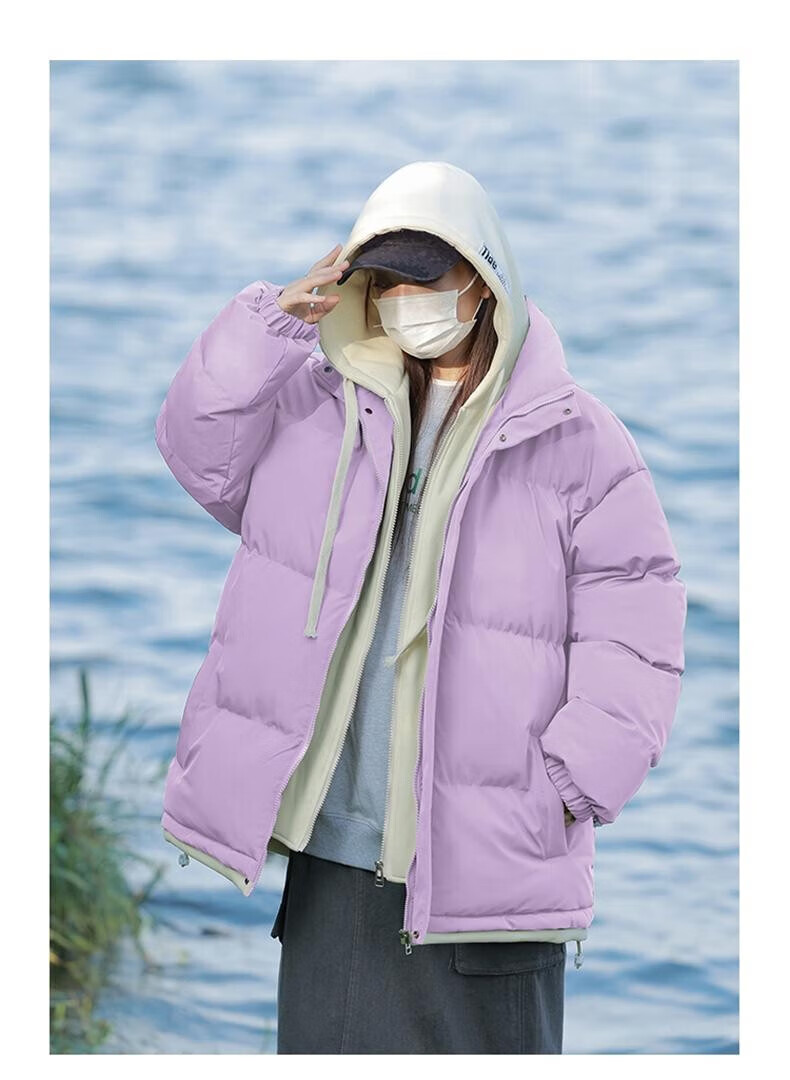 Jeanswest fake two-piece down cotton jacket for men and women in autumn and winter 2025 new couple casual jacket jacket men's trendy cotton coat to keep warm black (same style for men and women) M recommended 90-110Jin Jin equals 0.5 kg