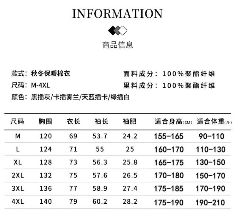 China (cm) 165 / 88-90 170 / 96-98 175 / 108-110 180 / 118-122 185 / 126-130