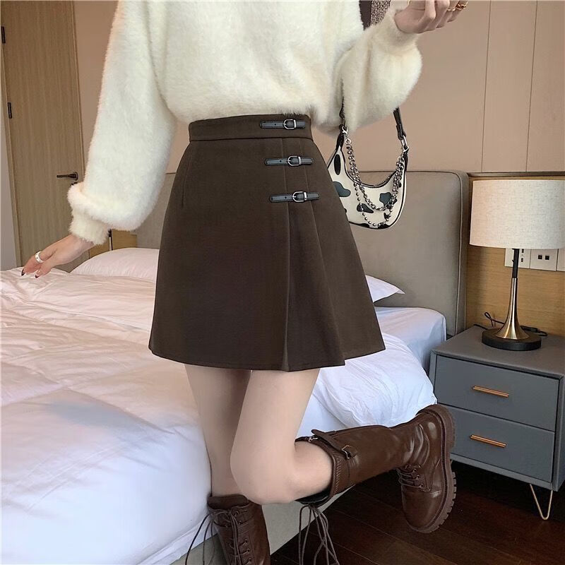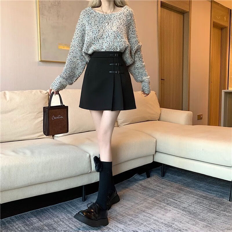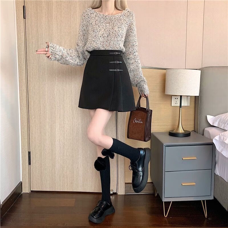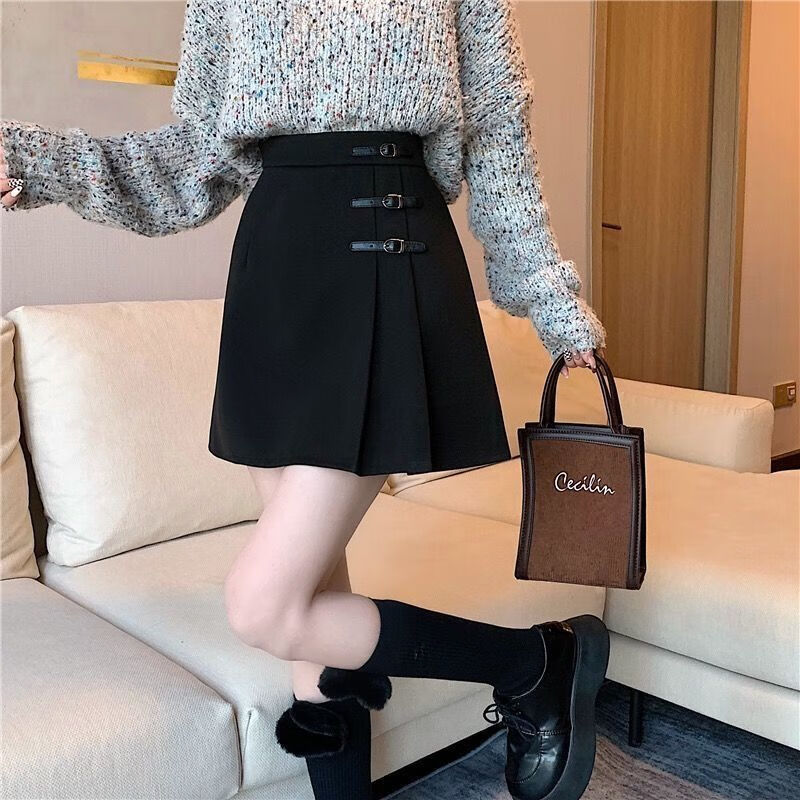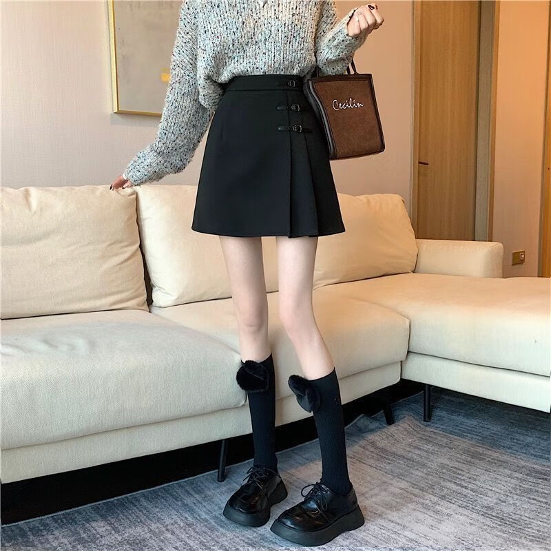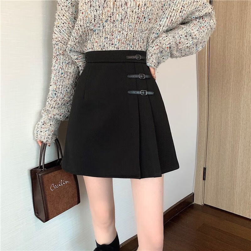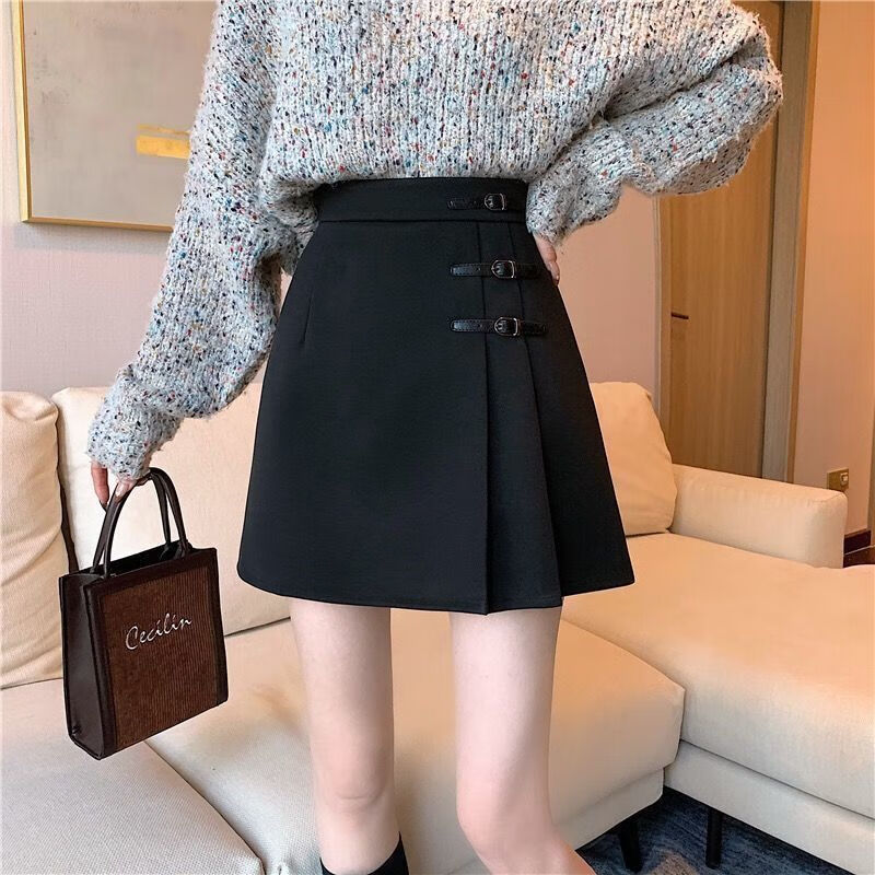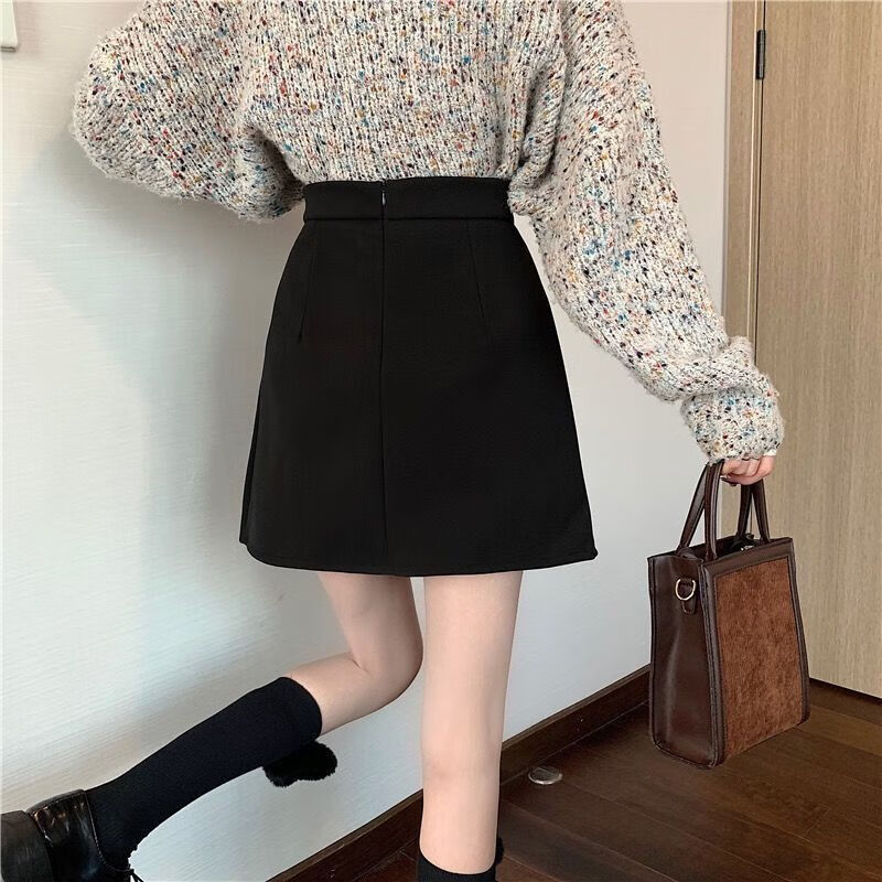 First diameter black woolen skirt for women, autumn and winter Korean style high-waisted A-line skirt, slim and versatile, A-line hip-hugging short skirt, black, inner safety pants L recommendation 105-1120Jin Jin is equal to 0.5 kg