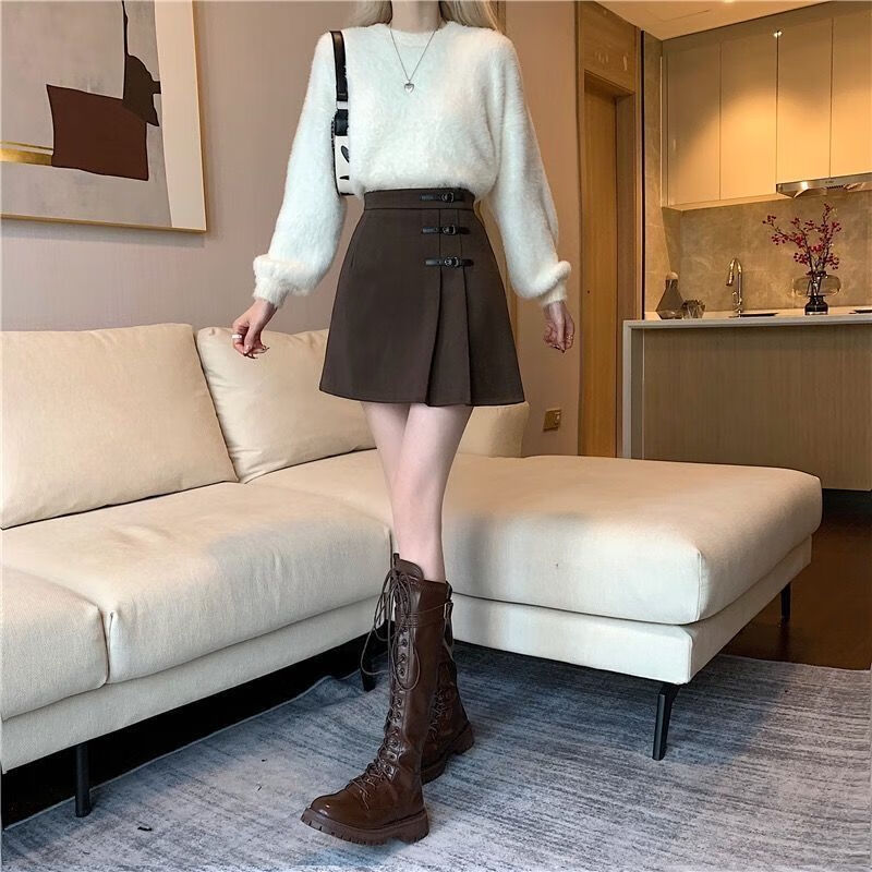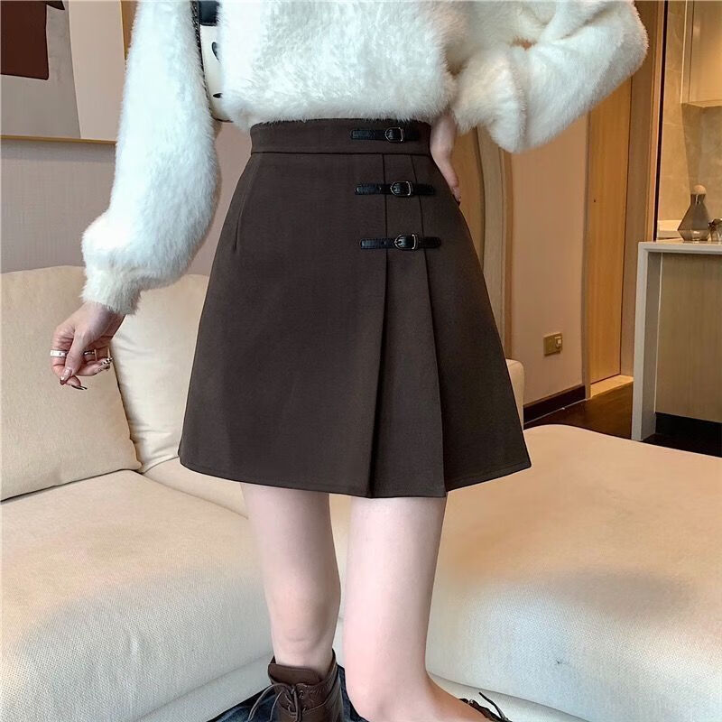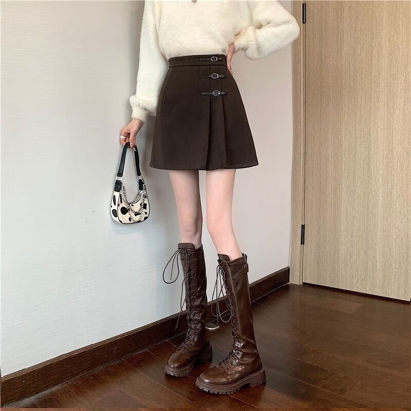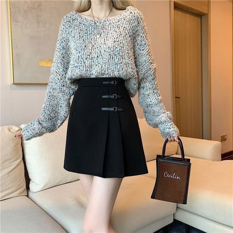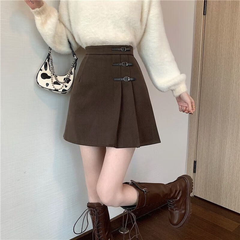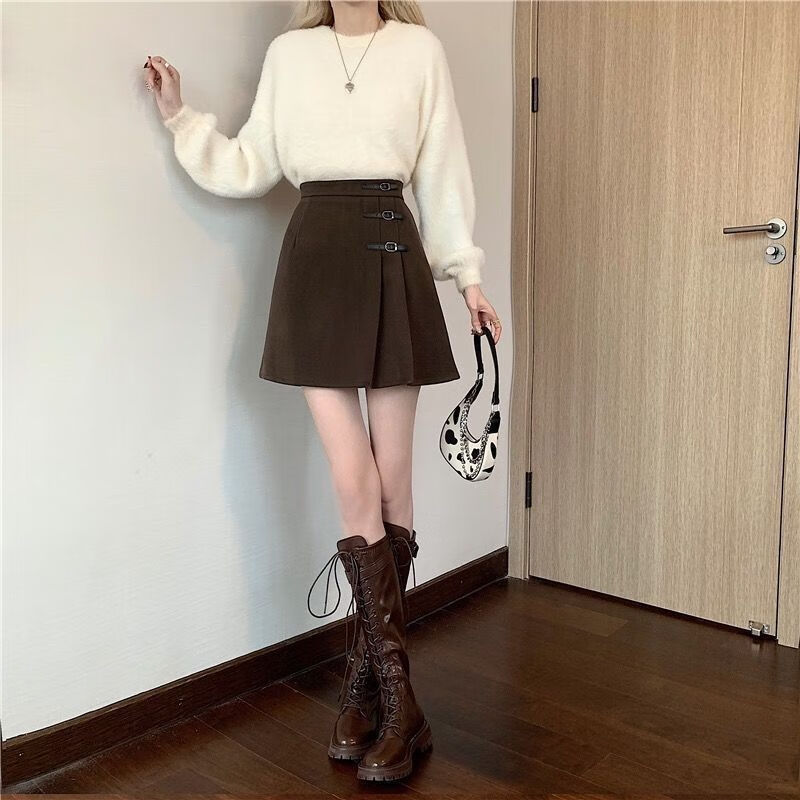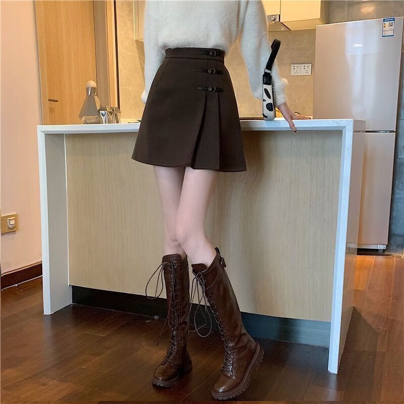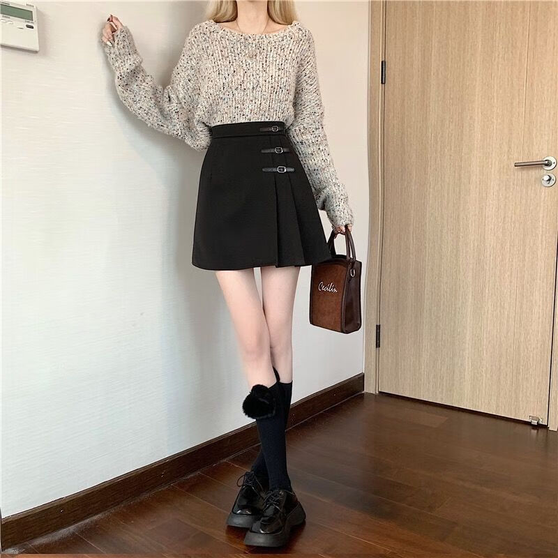 First diameter black woolen skirt for women, autumn and winter Korean style high-waisted A-line skirt, slim and versatile, A-line hip-hugging short skirt, black, inner safety pants L recommendation 105-1120Jin Jin is equal to 0.5 kg