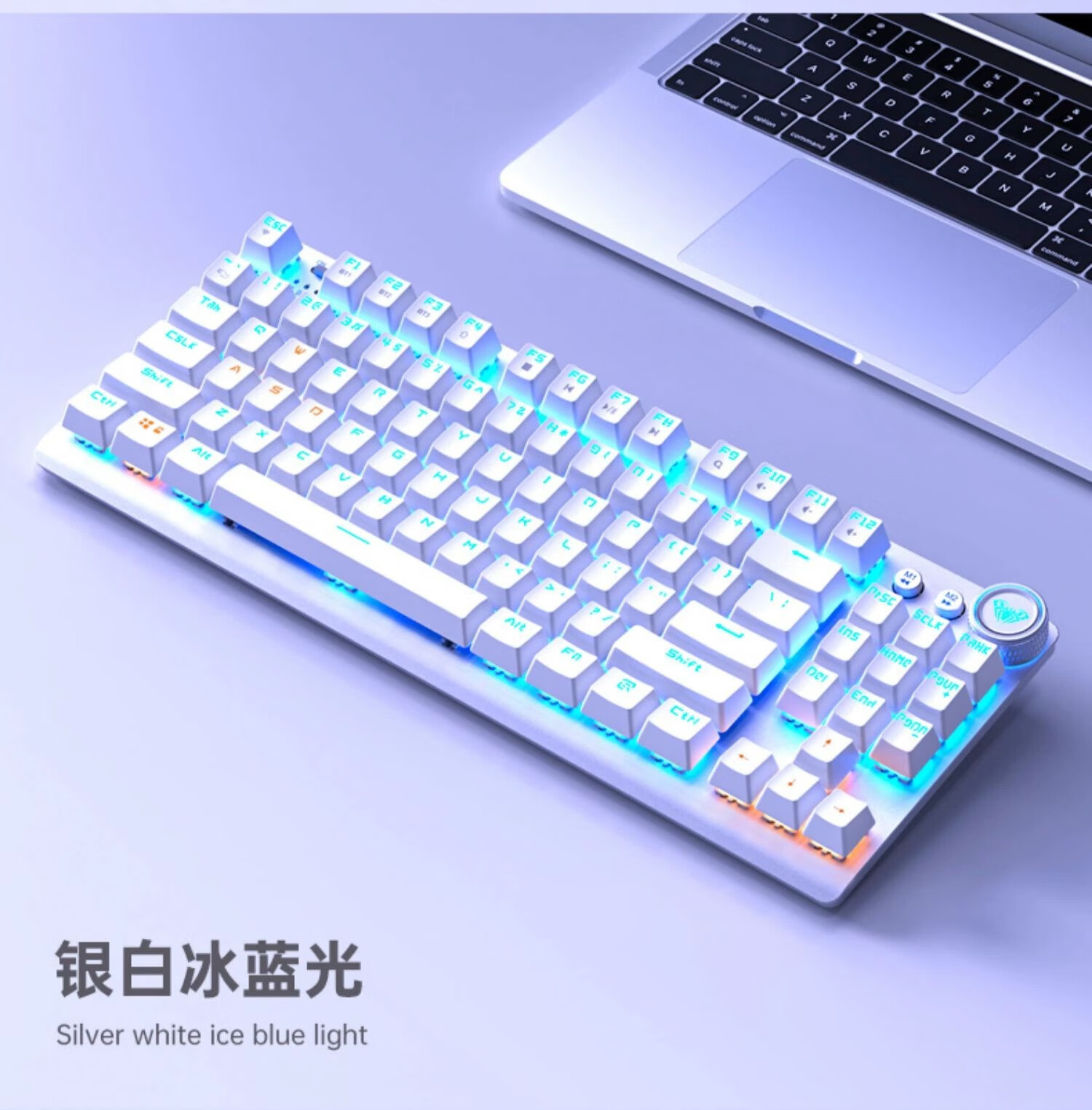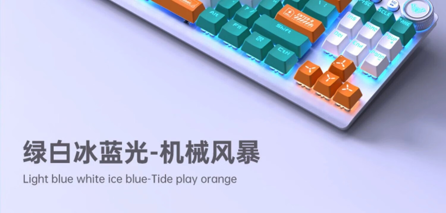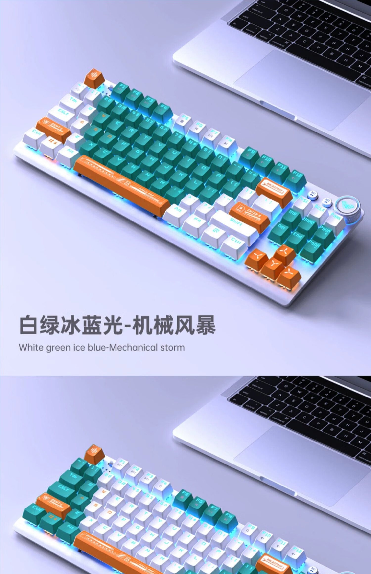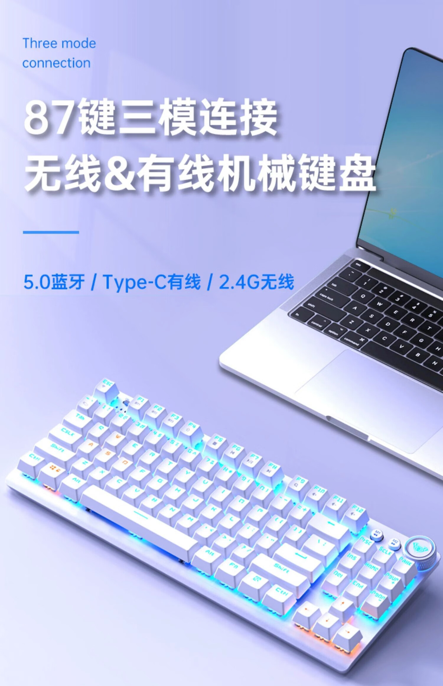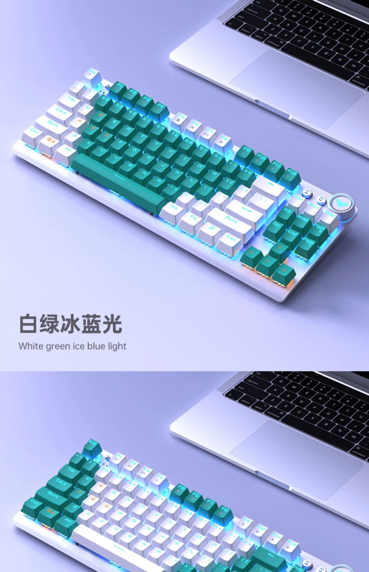 Wolf Spider (AULA) F3001 wireless bluetooth three-mode mechanical keyboard side-engraved keyboard keycap laptop gaming e-sports universal 87-key keyboard three-mode seamless white and green color matching-brown axis