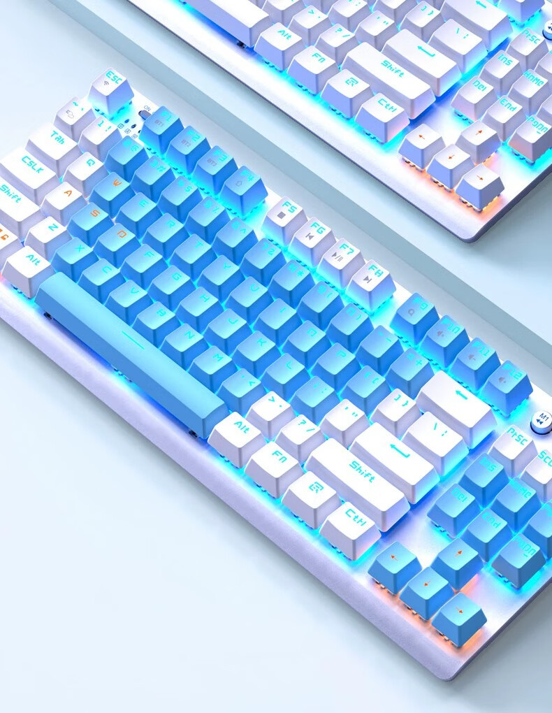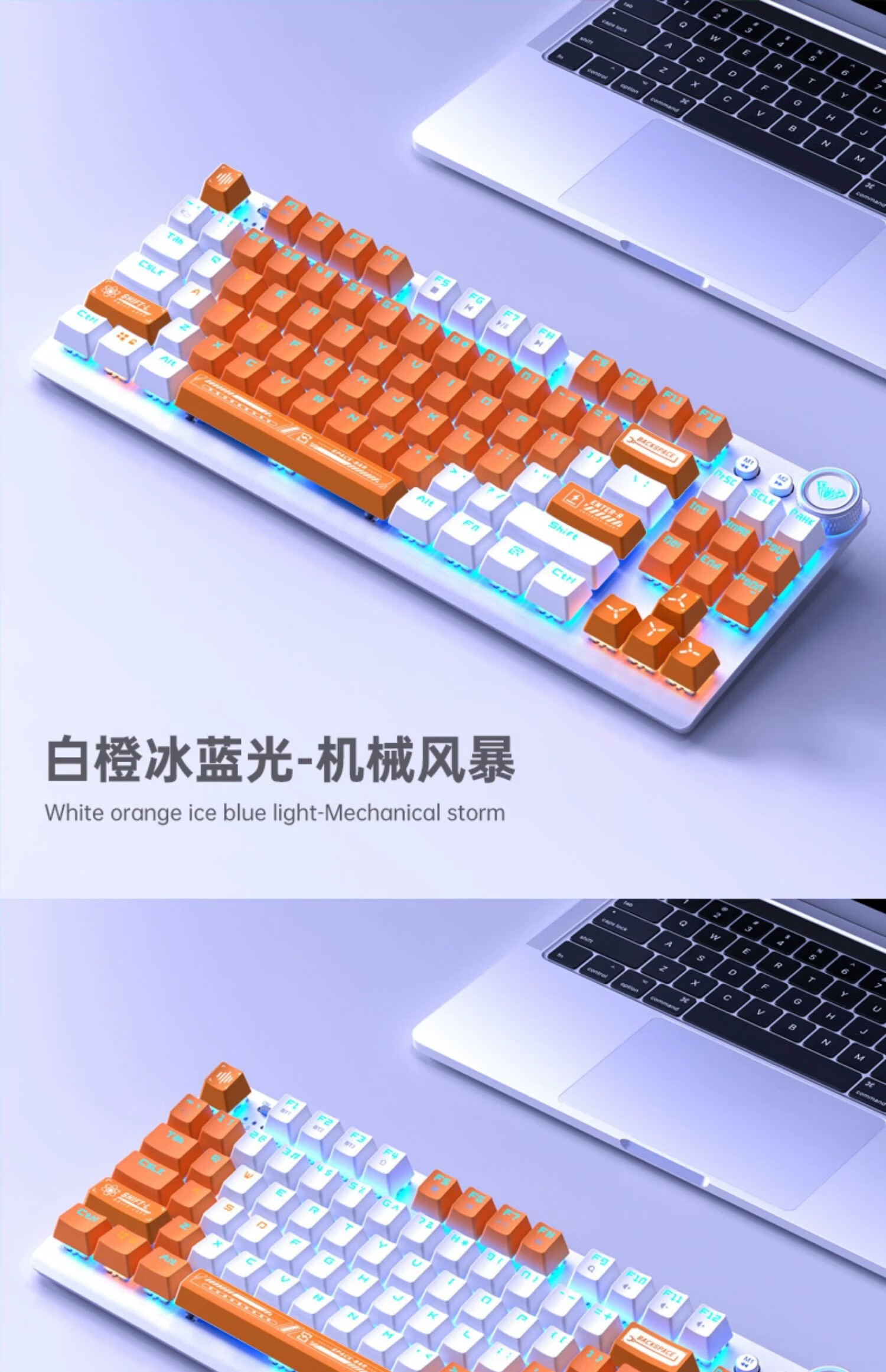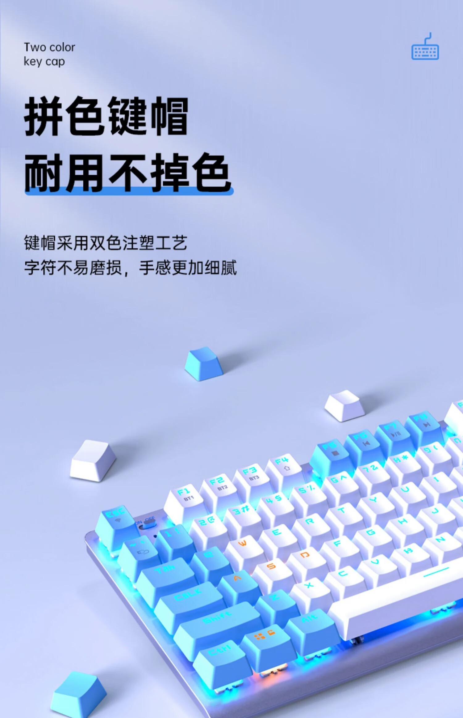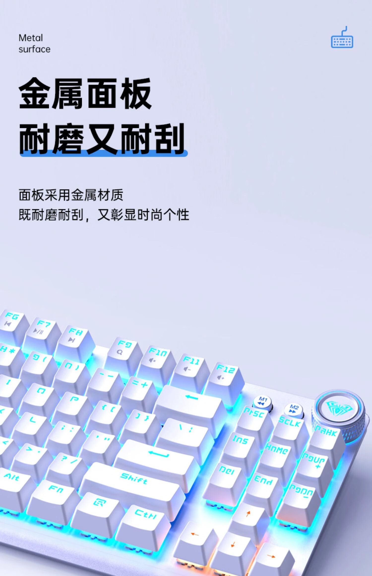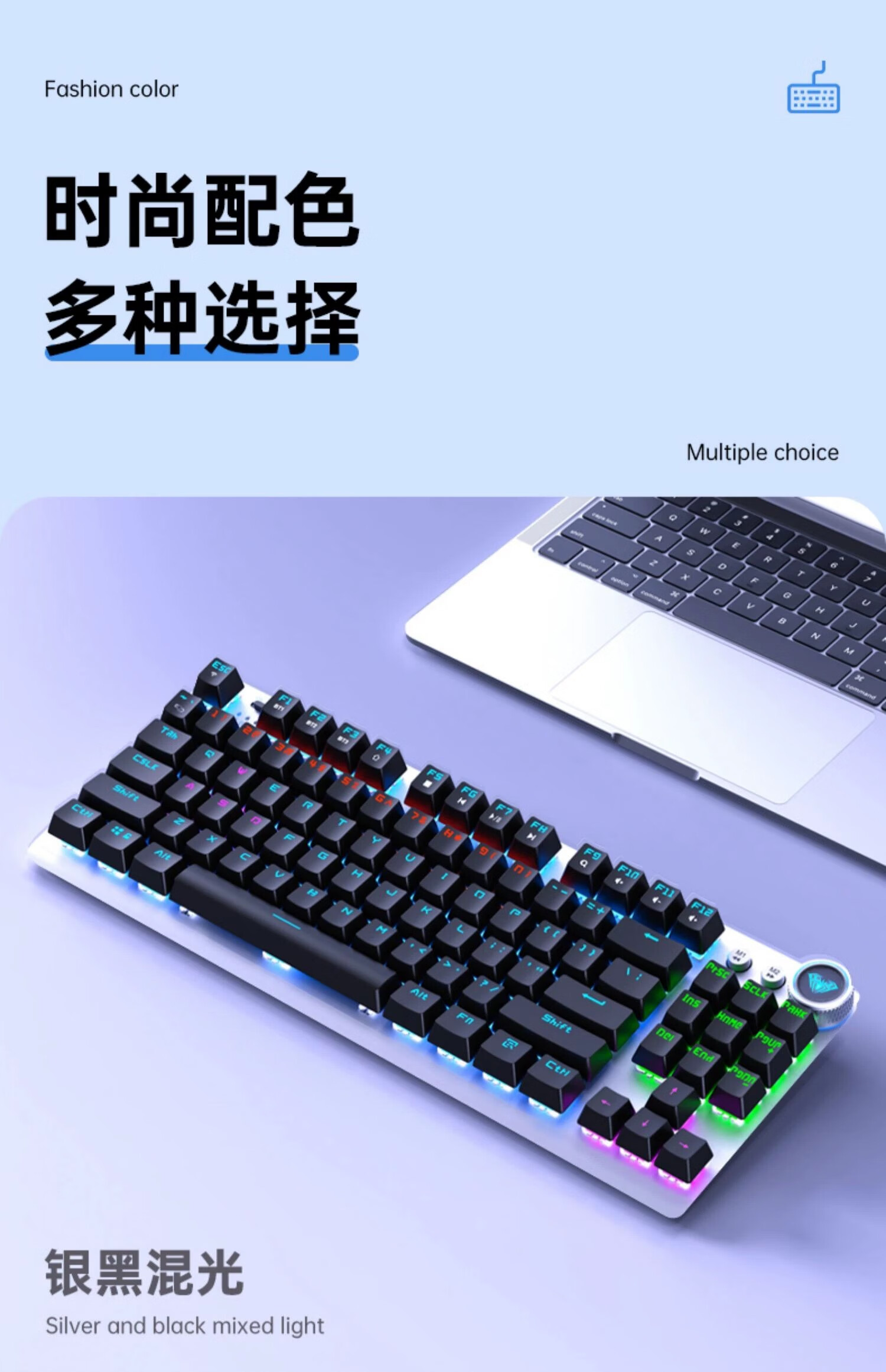Wolf Spider (AULA) F3001 wireless bluetooth three-mode mechanical keyboard side-engraved keyboard keycap laptop gaming e-sports universal 87-key keyboard three-mode seamless white and green color matching-brown axis