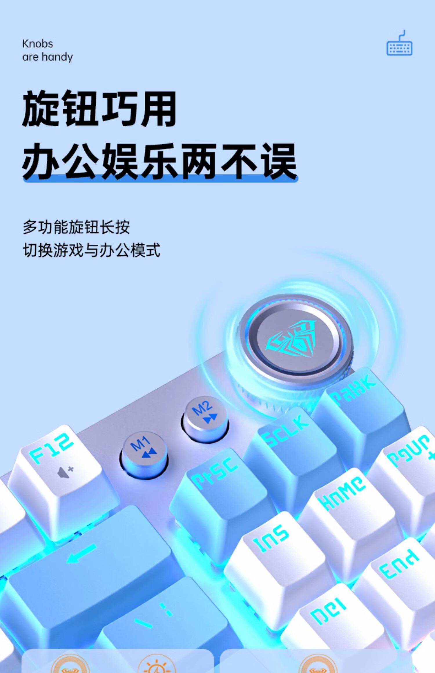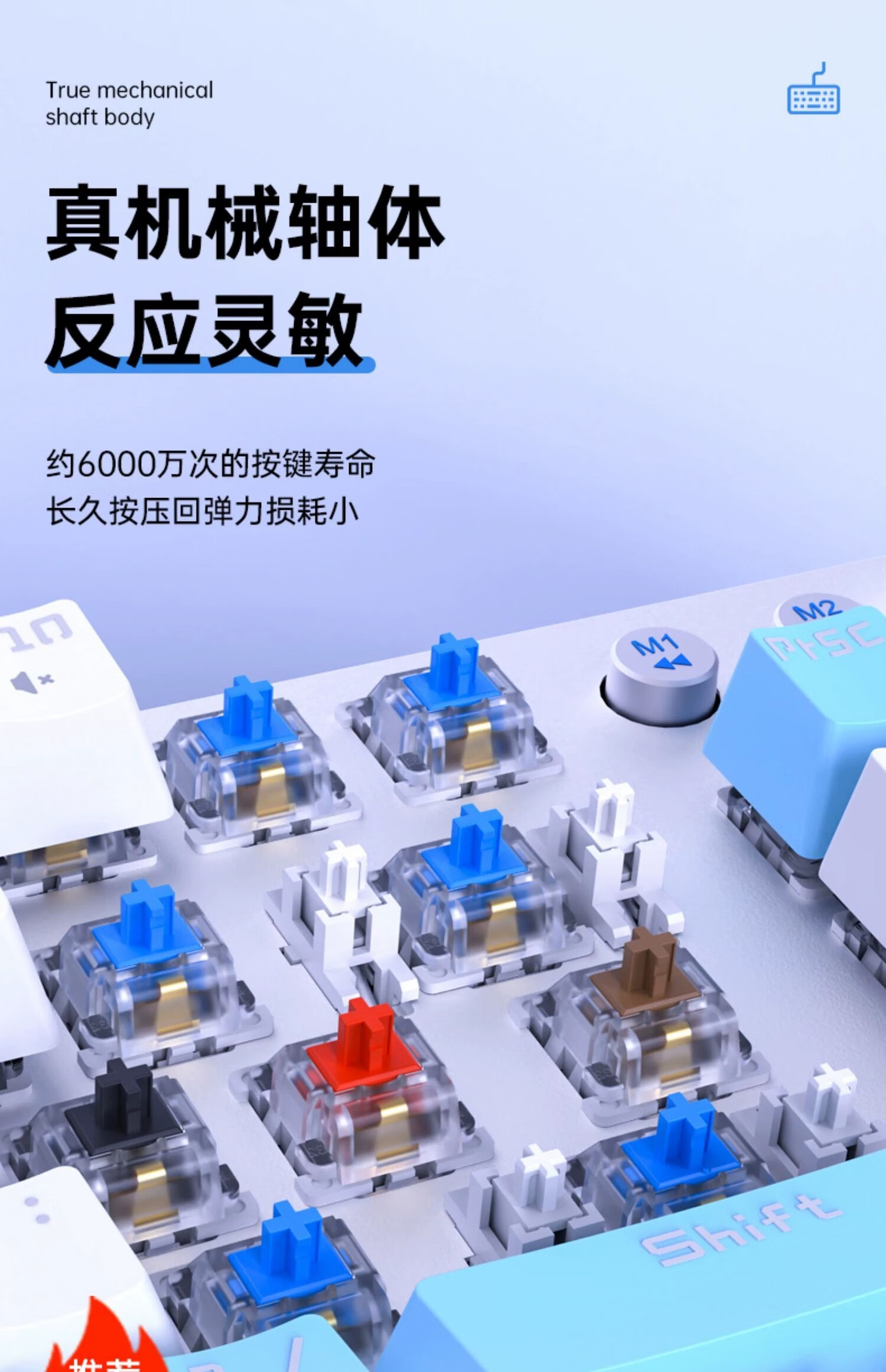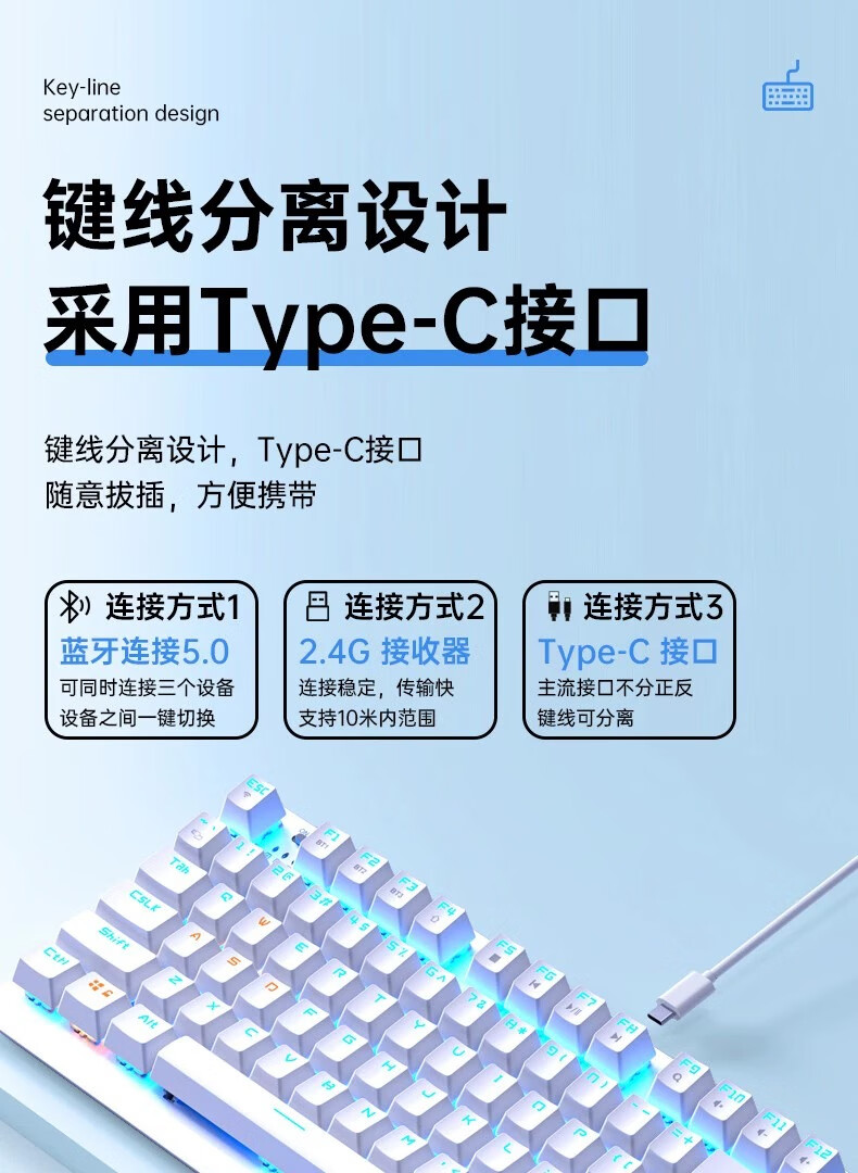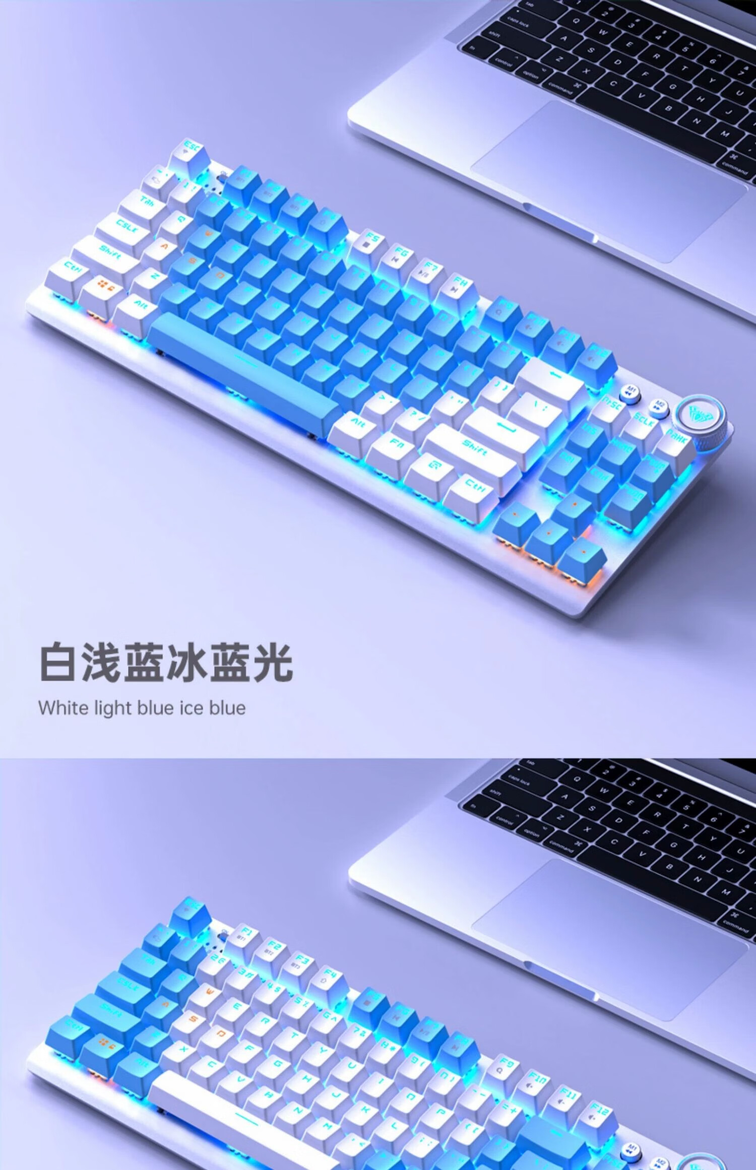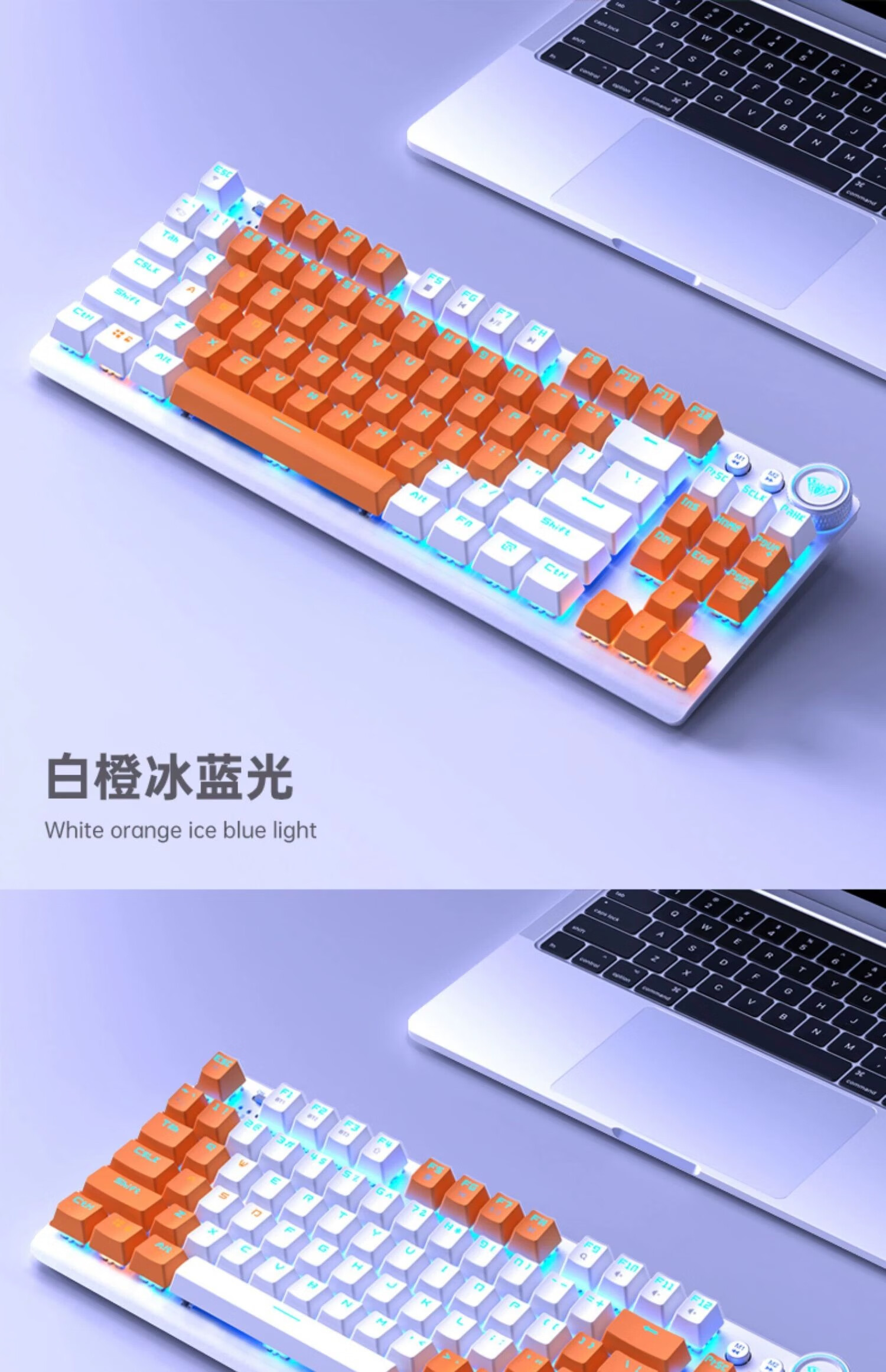 Wolf Spider (AULA) F3001 wireless bluetooth three-mode mechanical keyboard side-engraved keyboard keycap laptop gaming e-sports universal 87-key keyboard three-mode seamless white and green color matching-brown axis