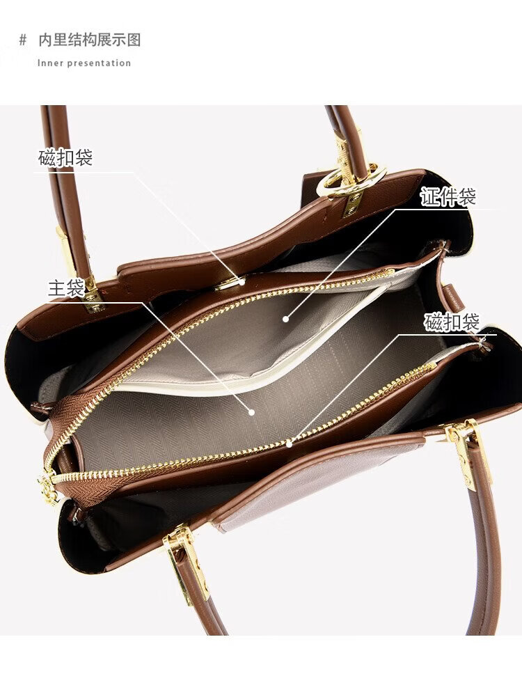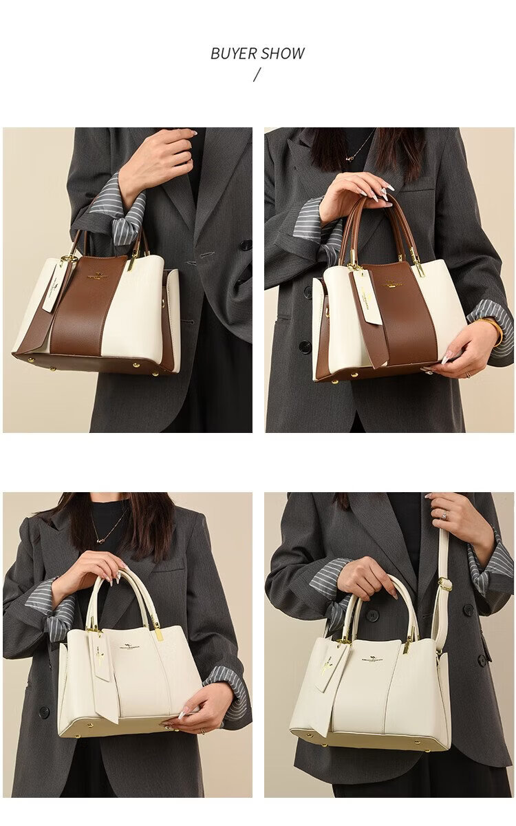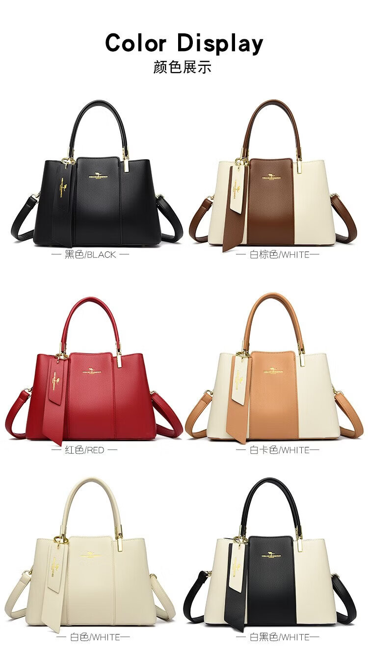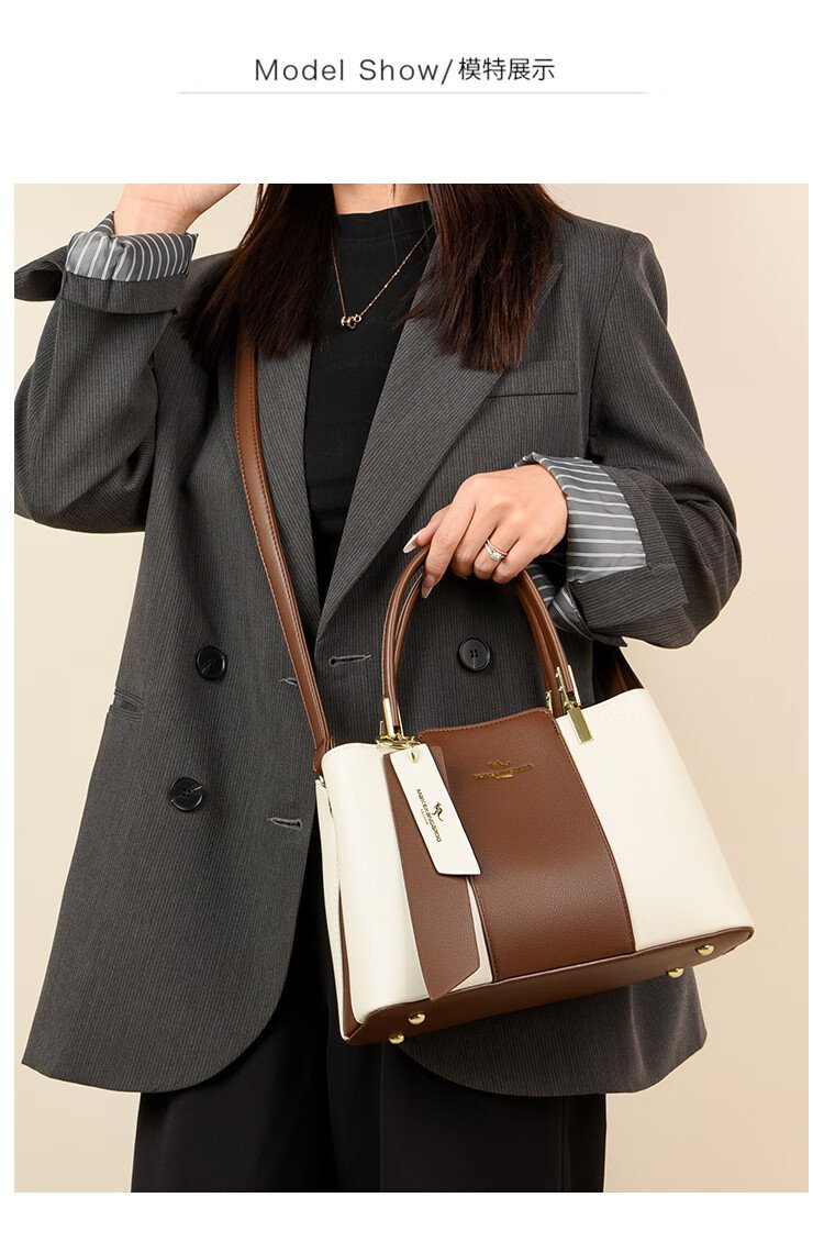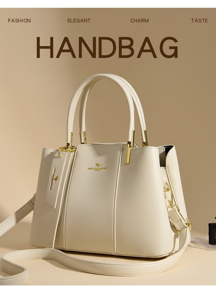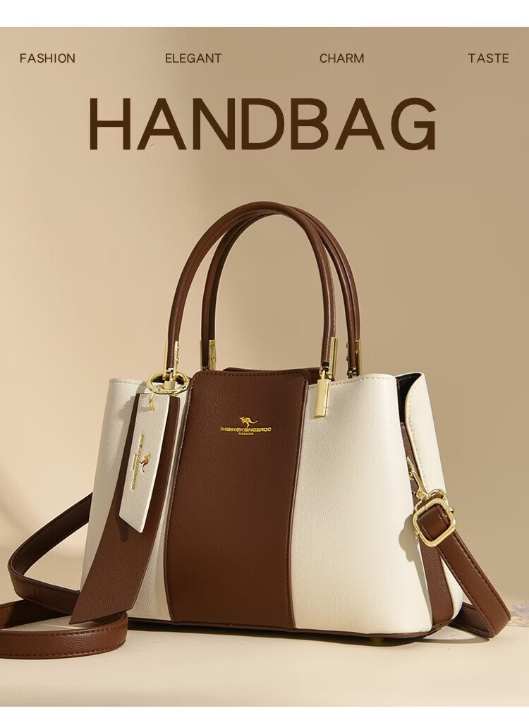 Kangaroo Kara 2026 new large-capacity fashion bag women's bag middle-aged handbag Valentine's Day New Year's gift for wife practical white brown gift box + hand bag