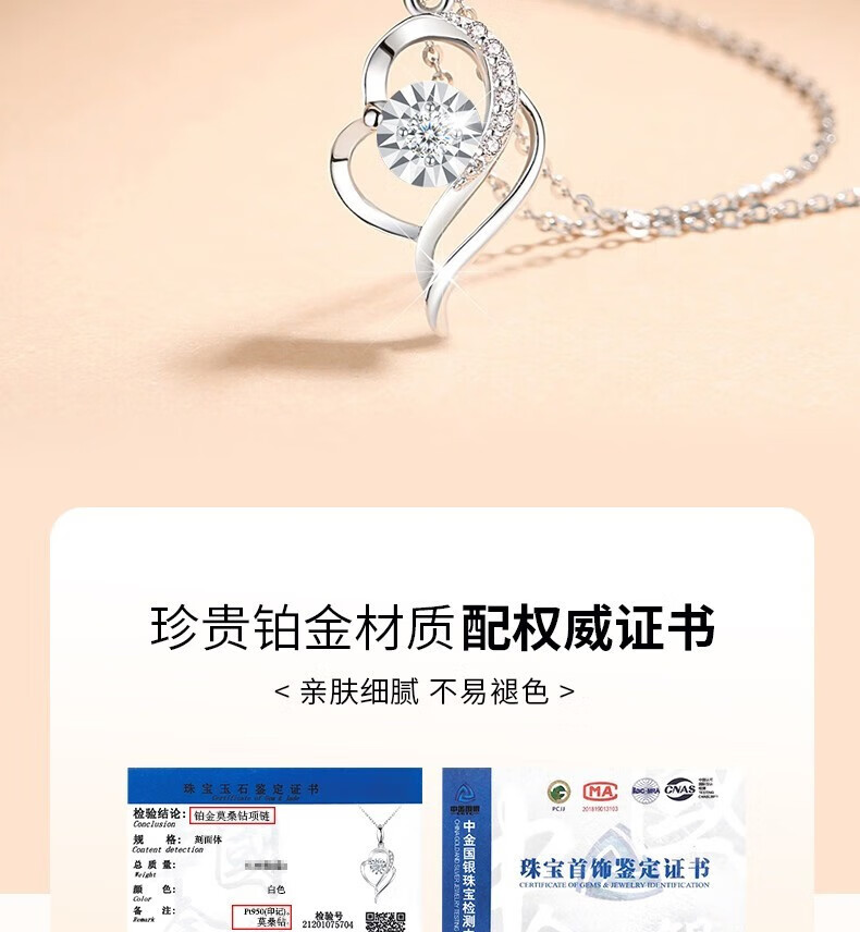 Duofei Platinum Necklace for Women Moissanite Light Luxury Jewelry Christmas Birthday Gift Anniversary for Girlfriend and Wife Platinum Topaz Necklace Can Be Engraved