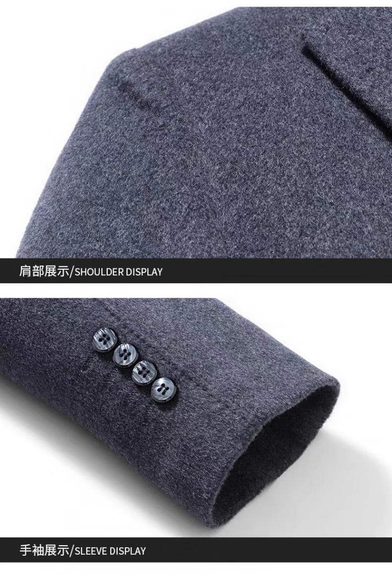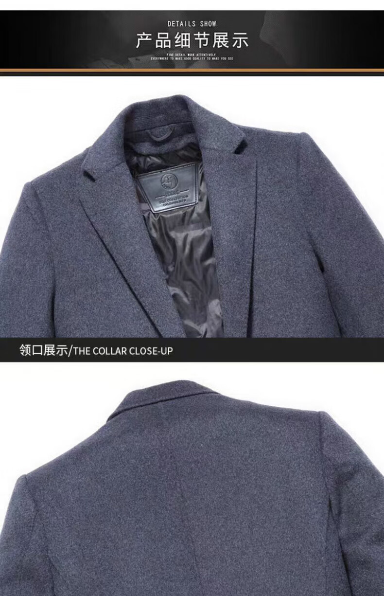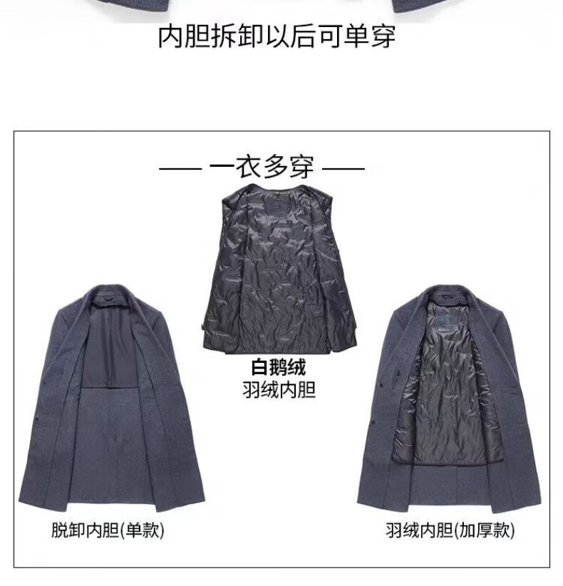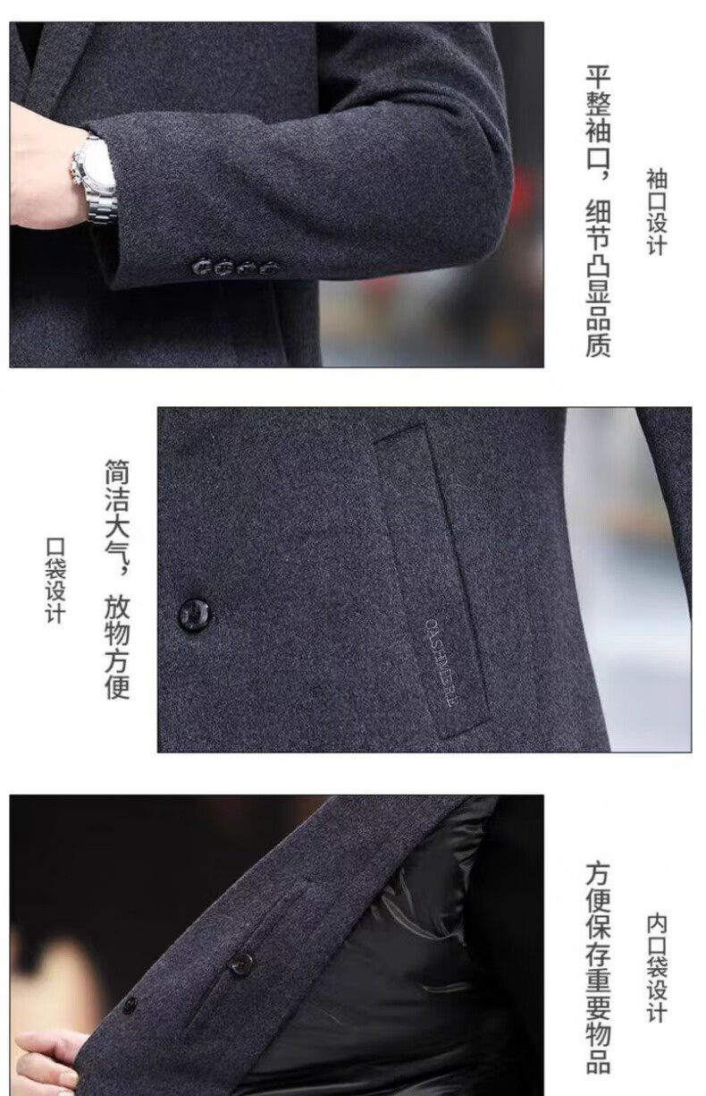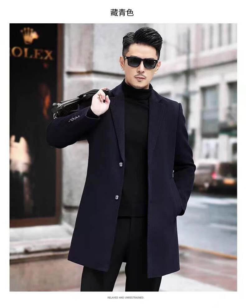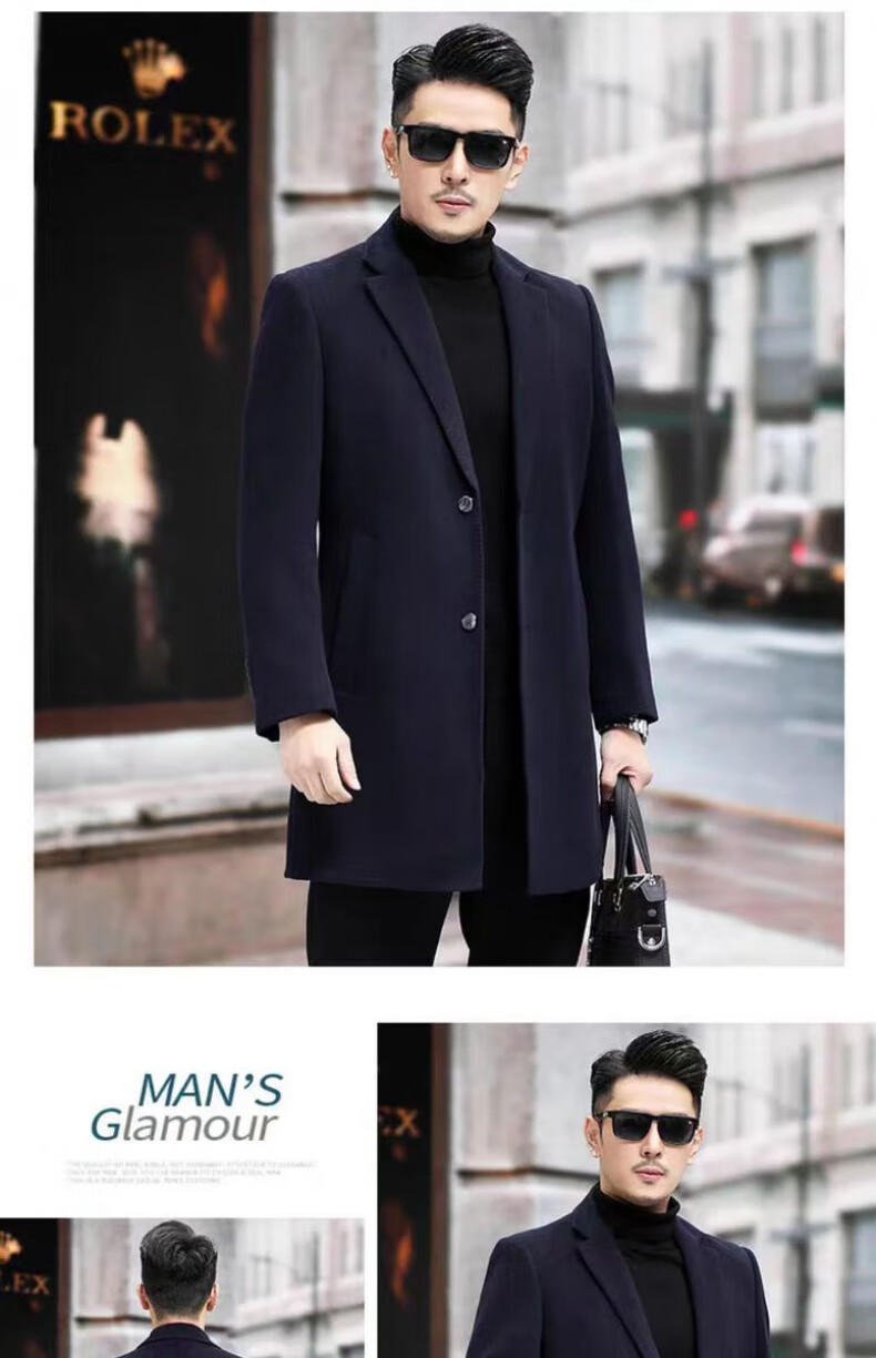 NASAOVER high-end 100% cashmere woolen coat men's winter mid-length business casual removable liner windbreaker jacket for men navy blue M