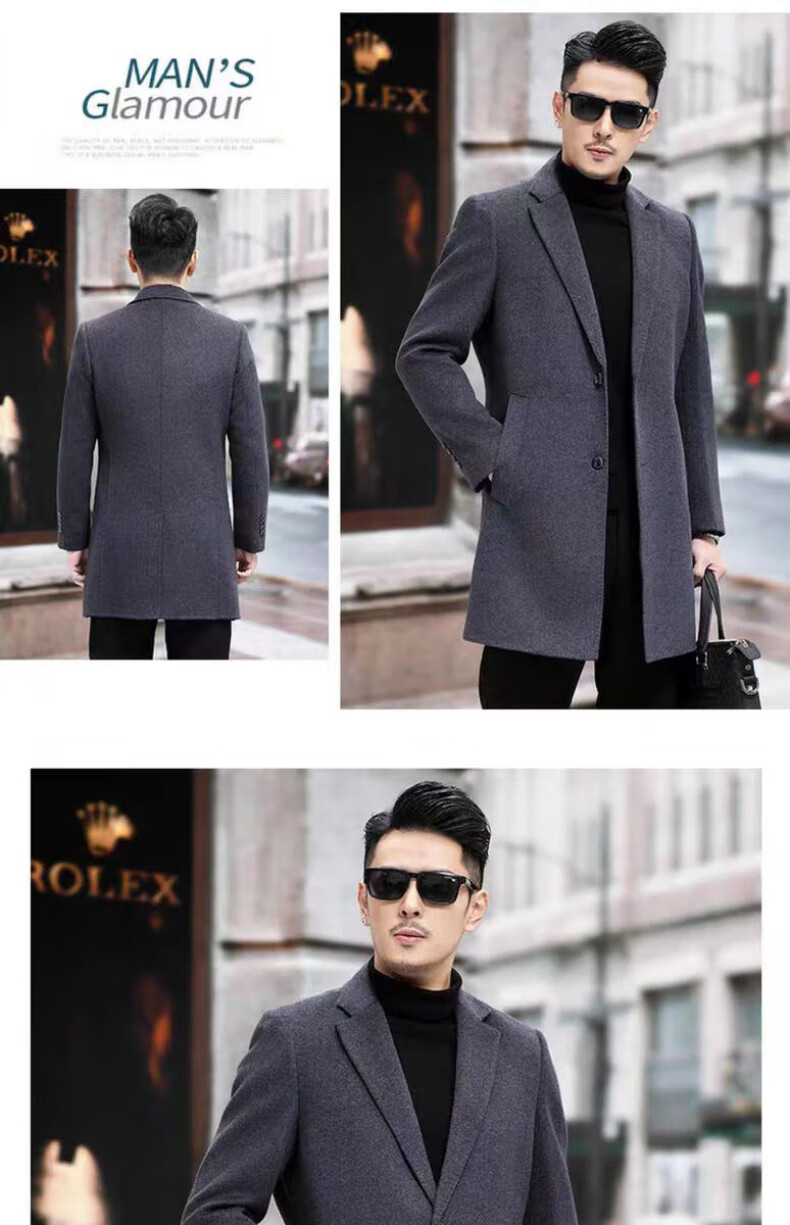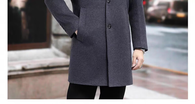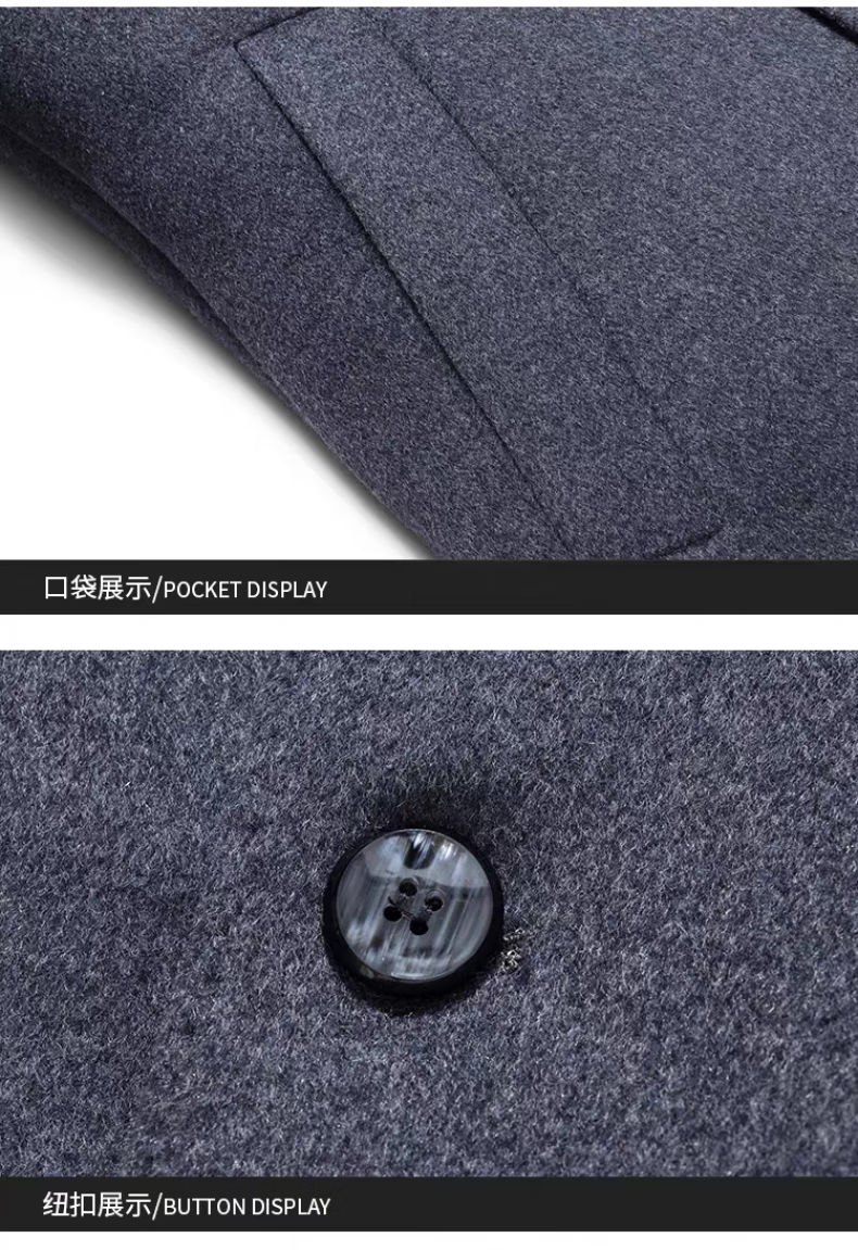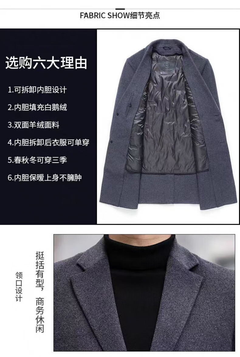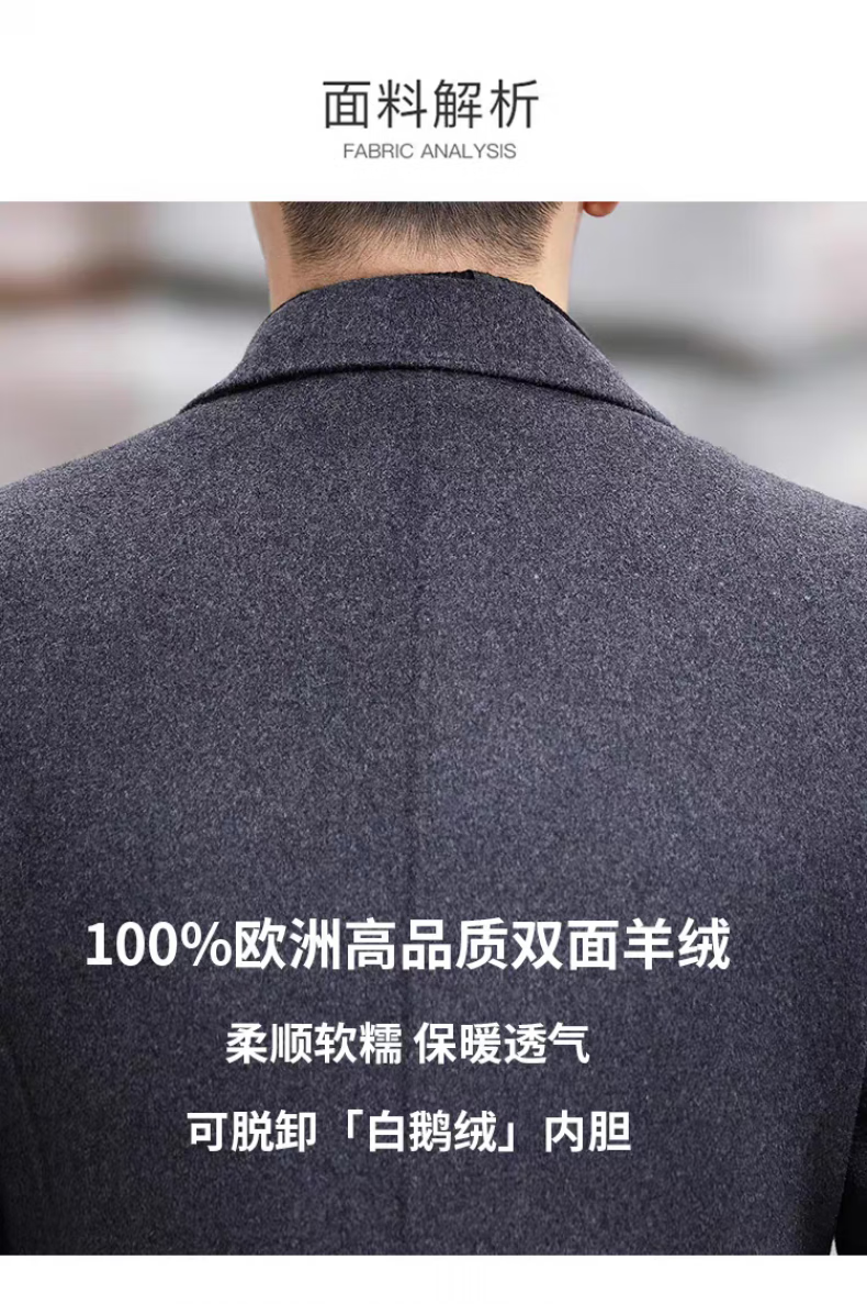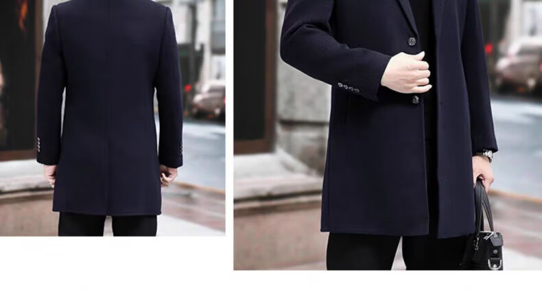 NASAOVER high-end 100% cashmere woolen coat men's winter mid-length business casual removable liner windbreaker jacket for men navy blue M