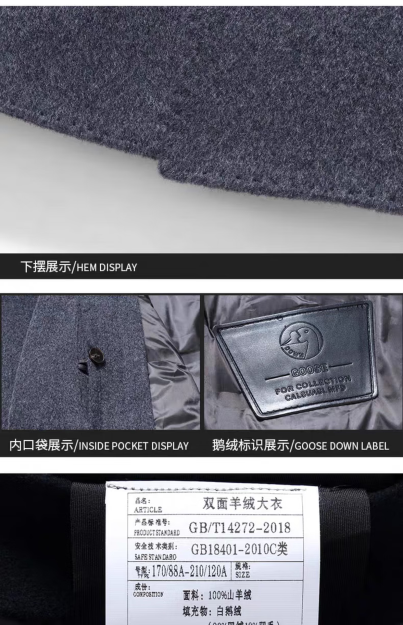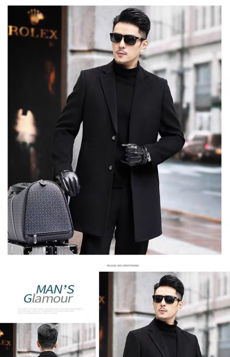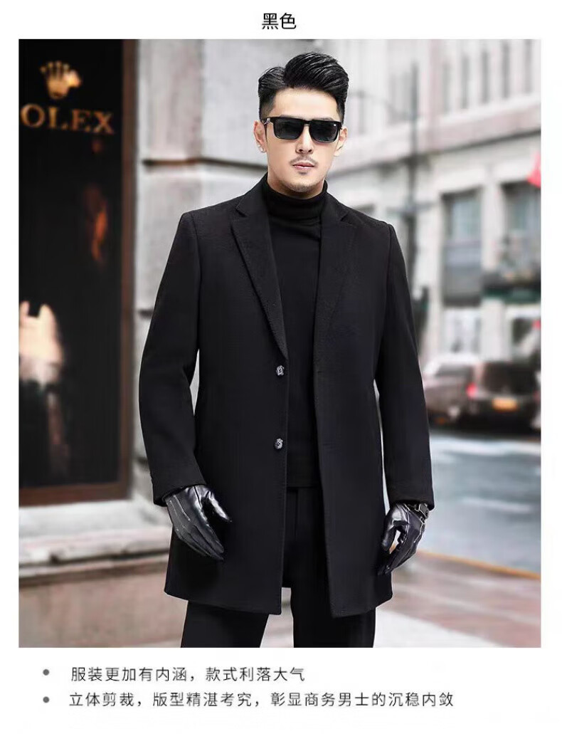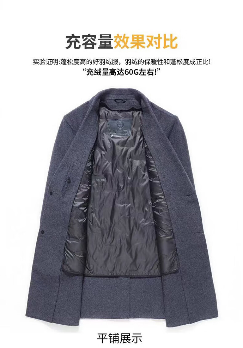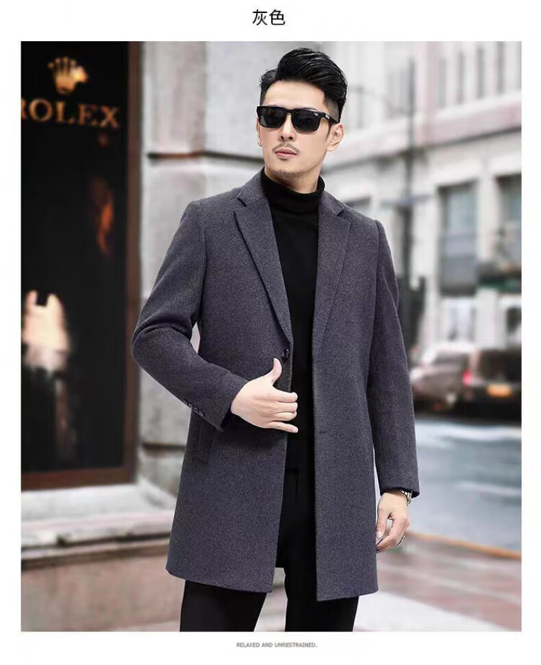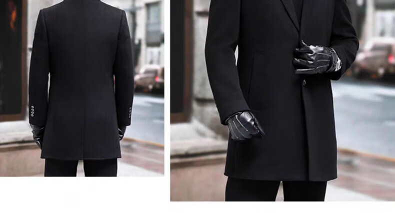 NASAOVER high-end 100% cashmere woolen coat men's winter mid-length business casual removable liner windbreaker jacket for men navy blue M