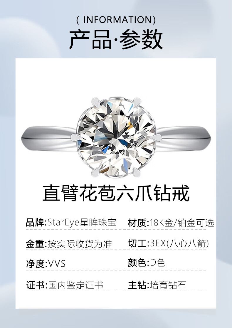 AVHE platinum ring D one carat laboratory-grown diamond straight-arm bud ring for wedding gift Chinese Valentine's Day platinum bud-grown diamond ring-30 points D color/VVS