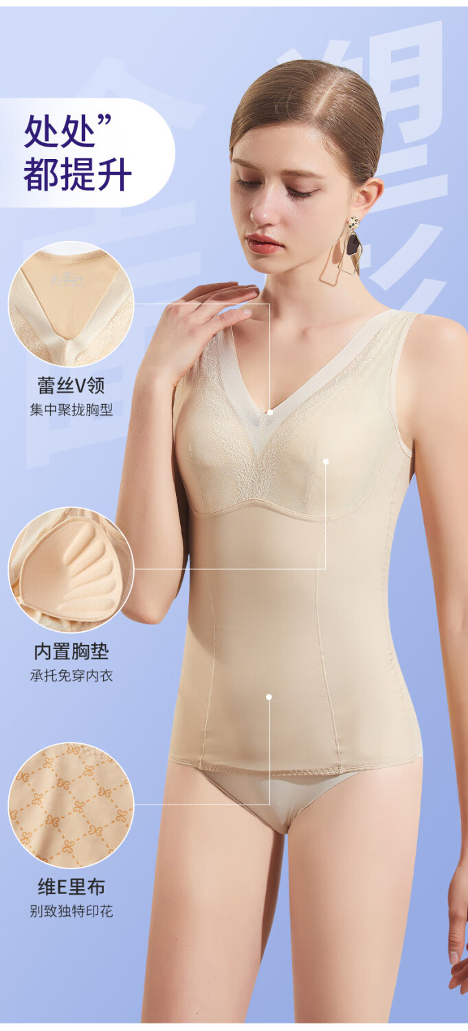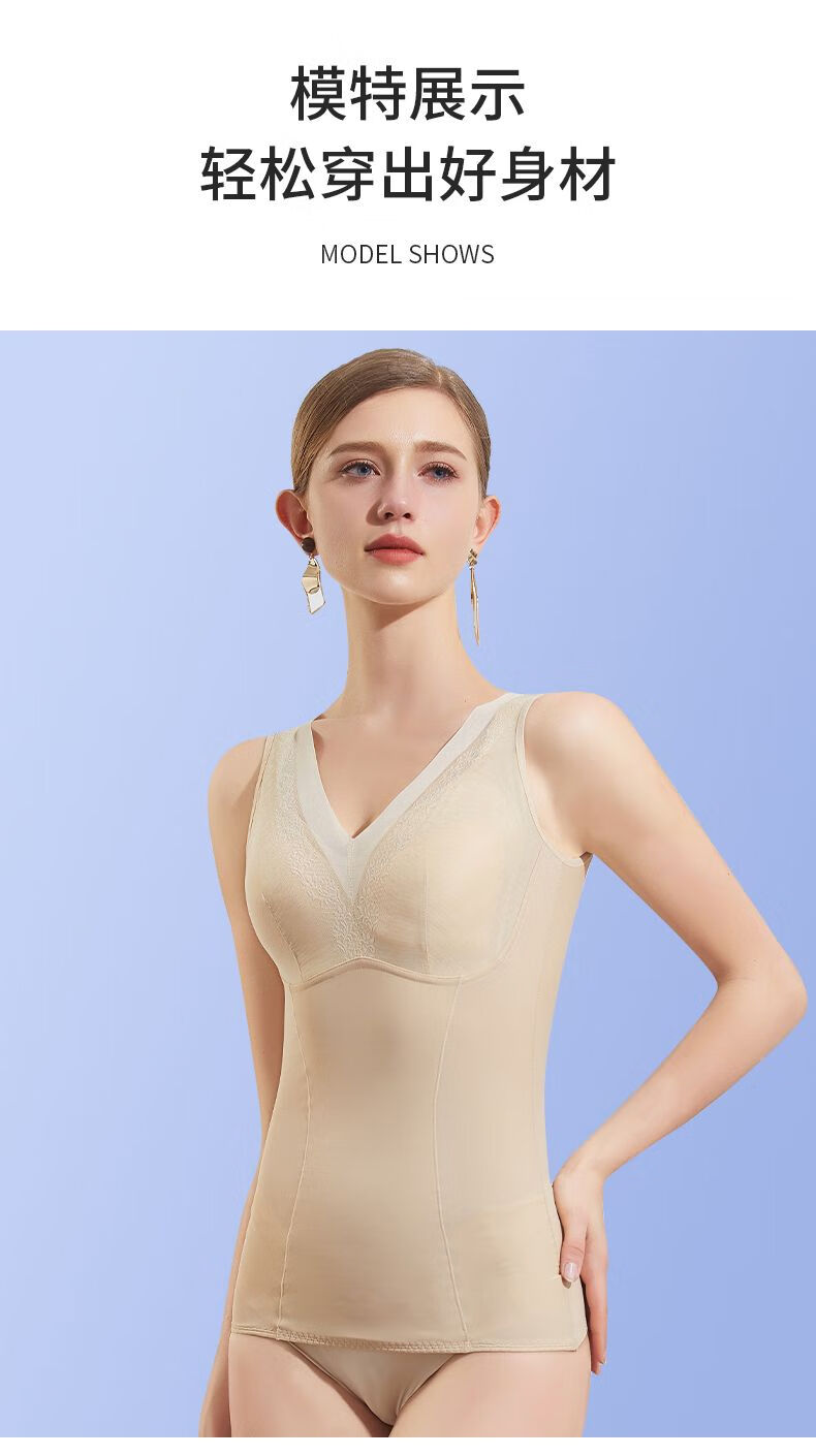LangSha body shaping vest with breast pads, corset underwear, tummy control, waist shaping, body shaping bottoming top for women, postpartum slimming, skin color XL, suitable for 120-140Jin Jin is equal to 0.5 kg