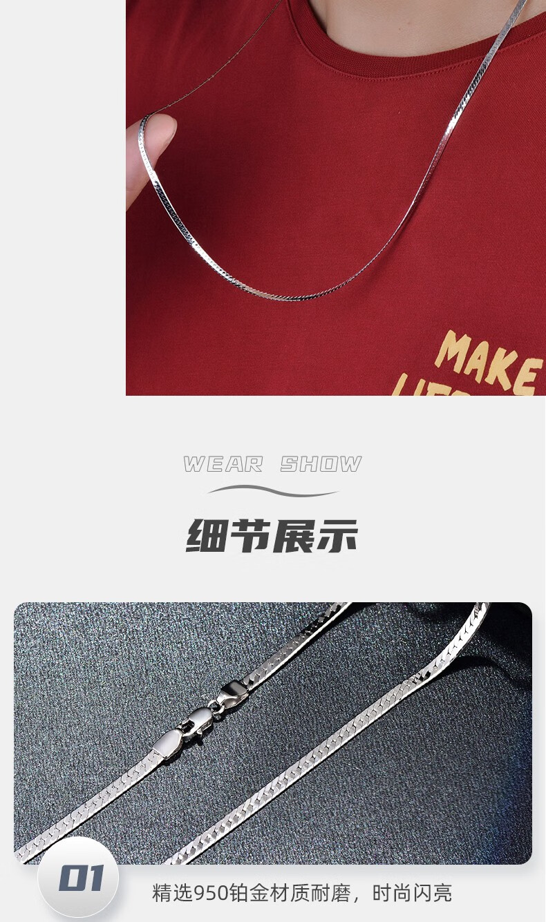 GsunGGSUNG platinum pt950 men's and women's necklace flat snakeskin platinum necklace customization needs to be customized PT950 necklace 55 cm 16 grams or so to order