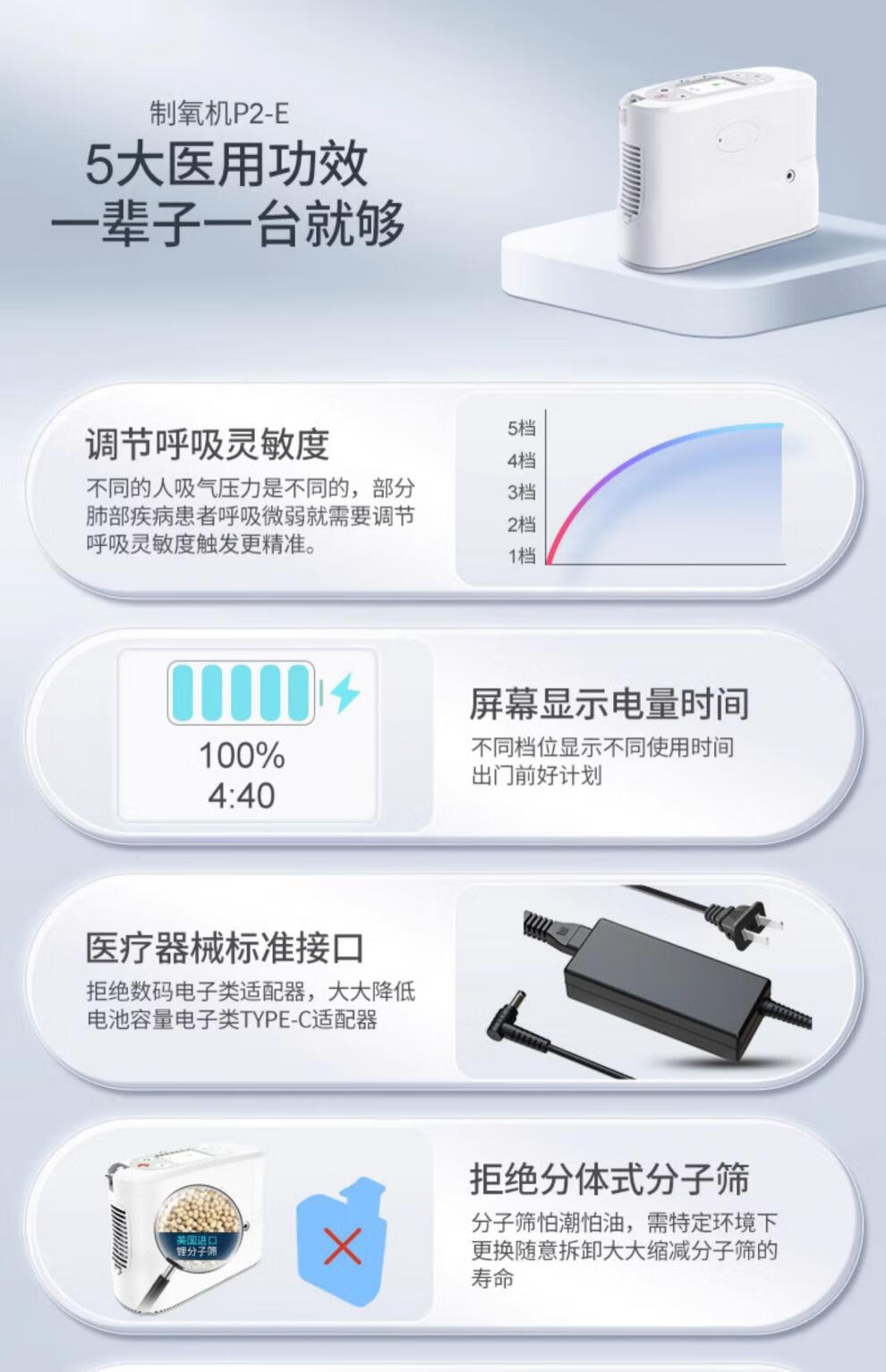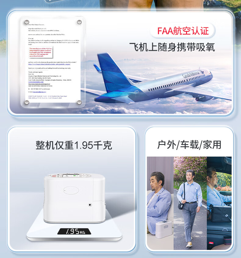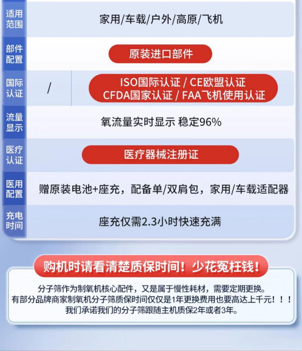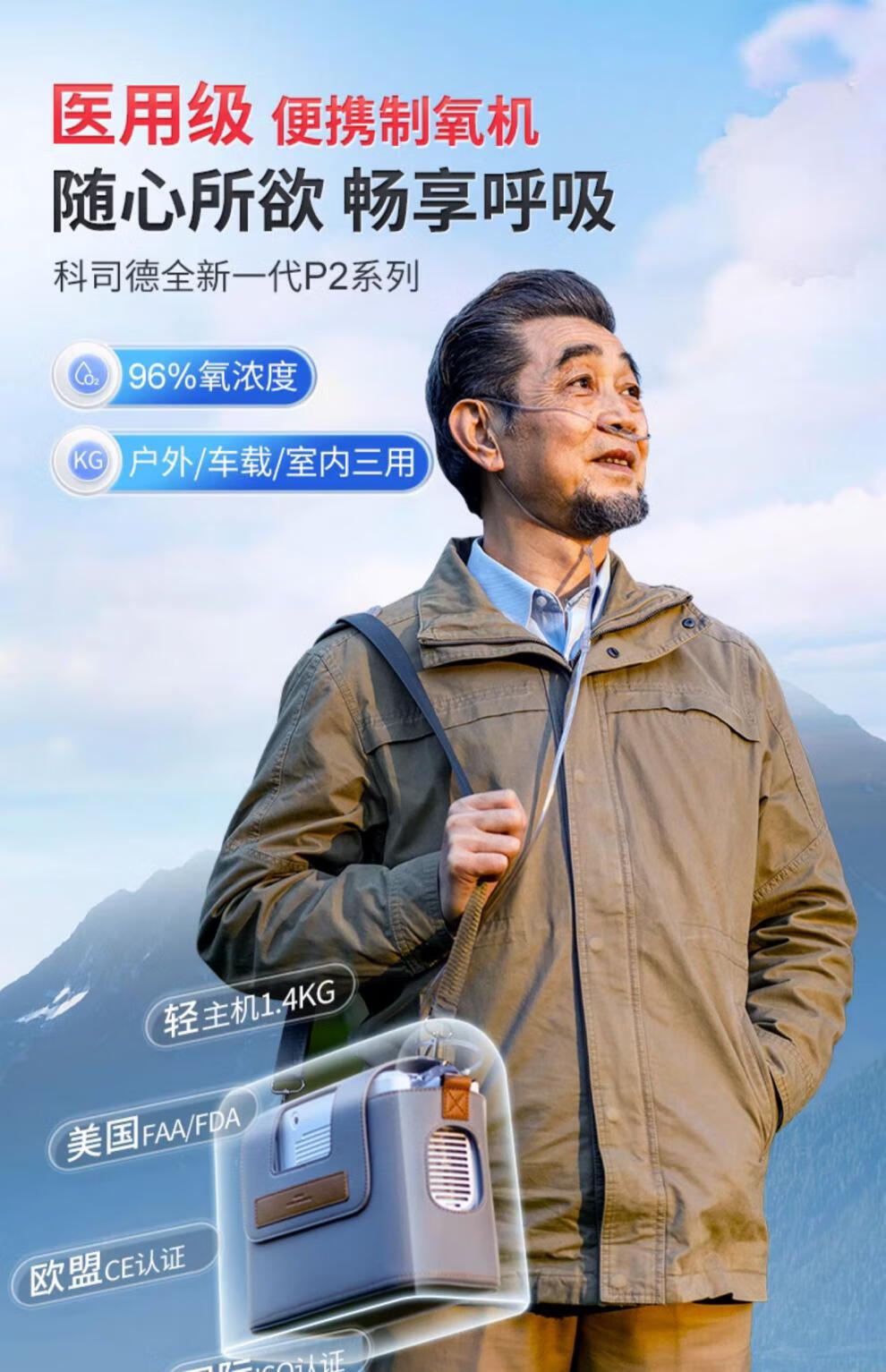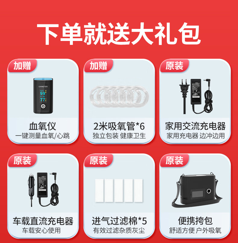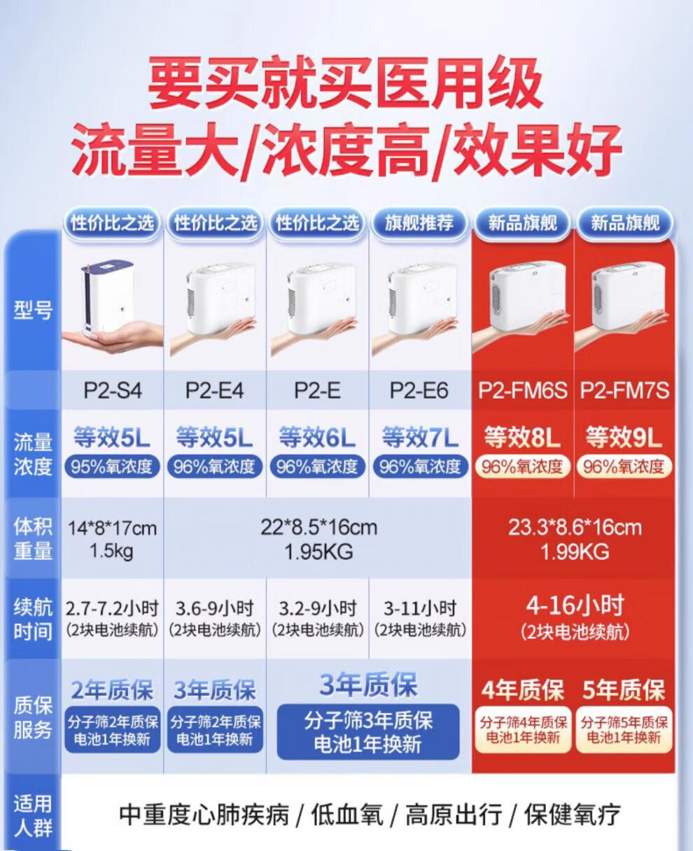 Koside 5L liter portable oxygen concentrator portable small medical grade oxygen inhaler home elderly car plateau oxygen machine medical 7 liters - 23 years model P2-E6 3 batteries, including free