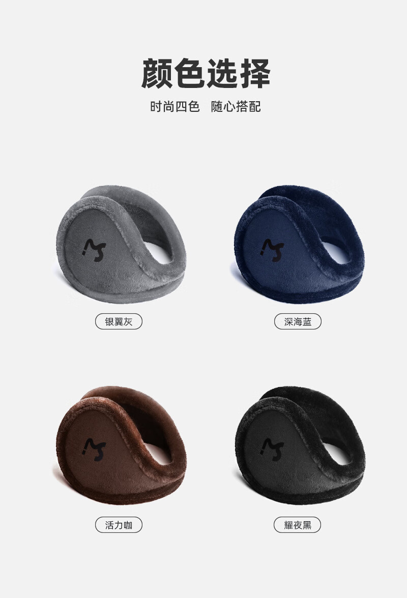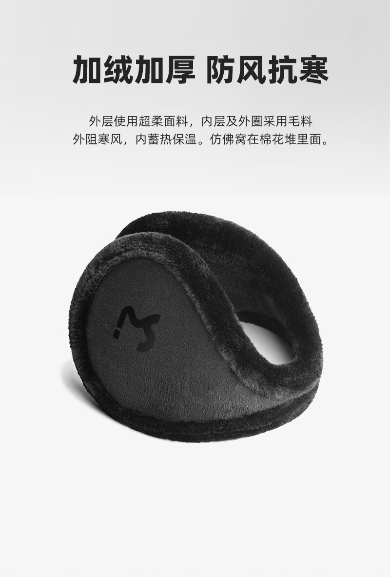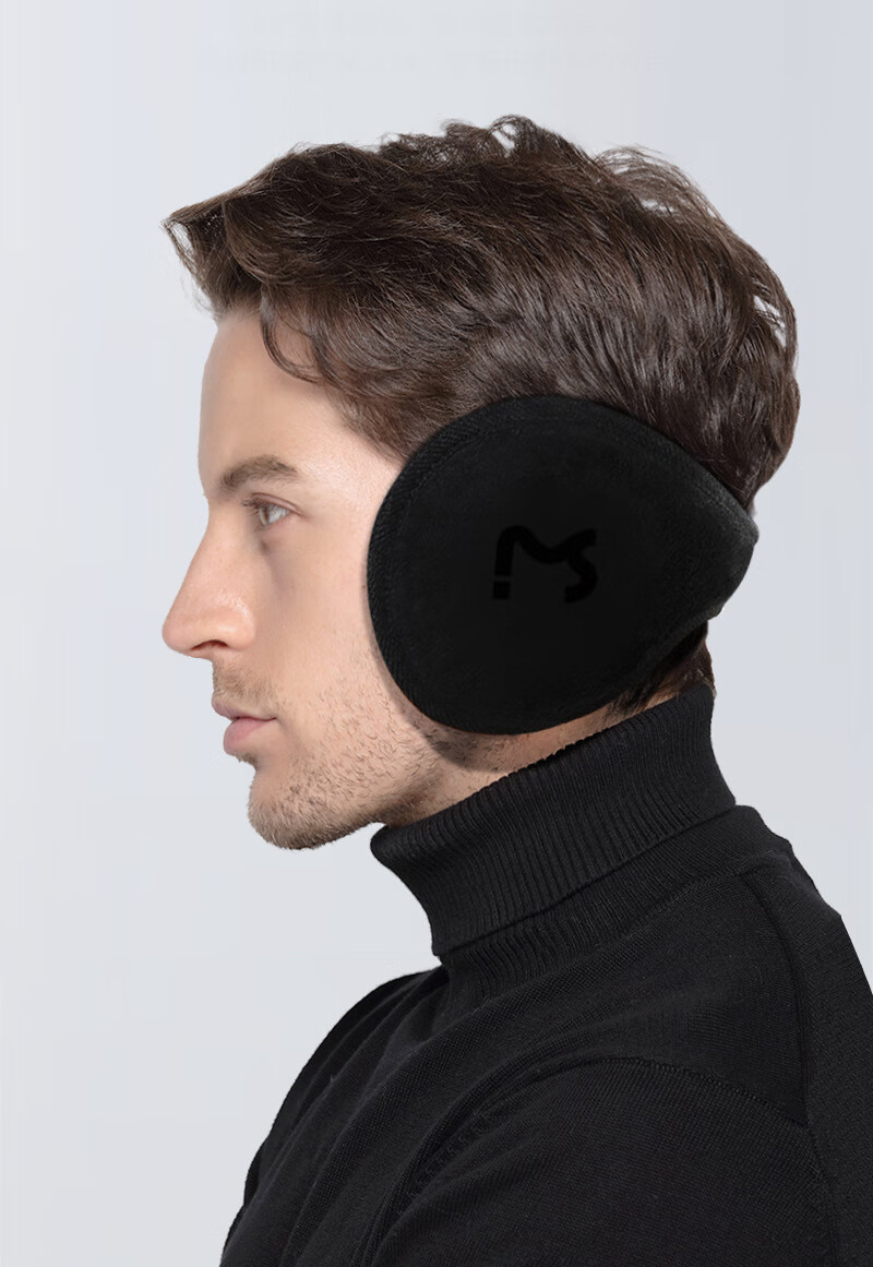 Di Shulan's new thickened plush warm earmuffs for winter men's ear protection and ear warmers solid color student anti-cold back-worn earmuffs plus velvet style - Yao Ye Black