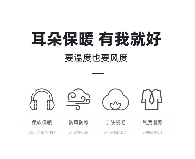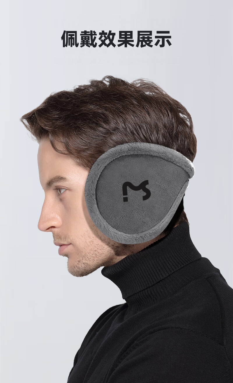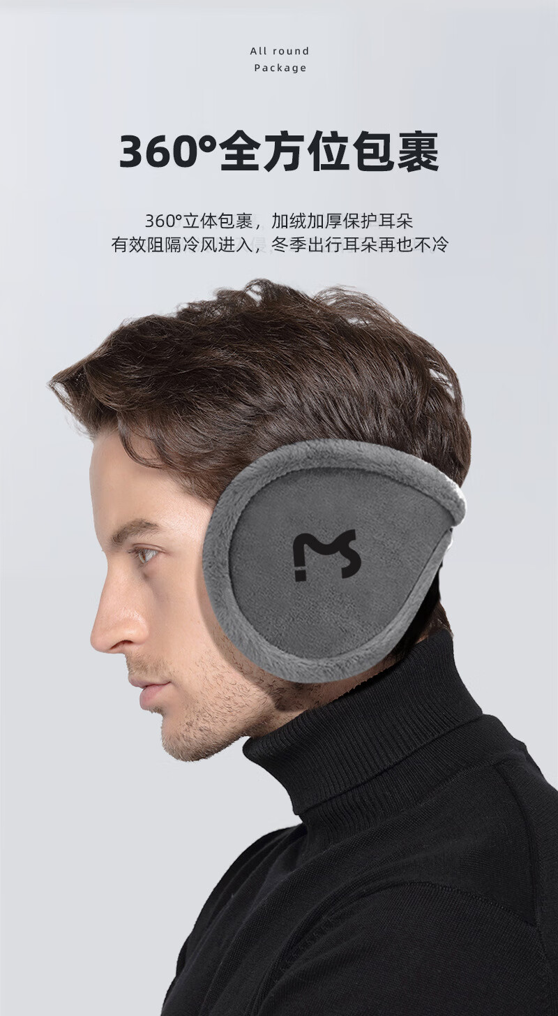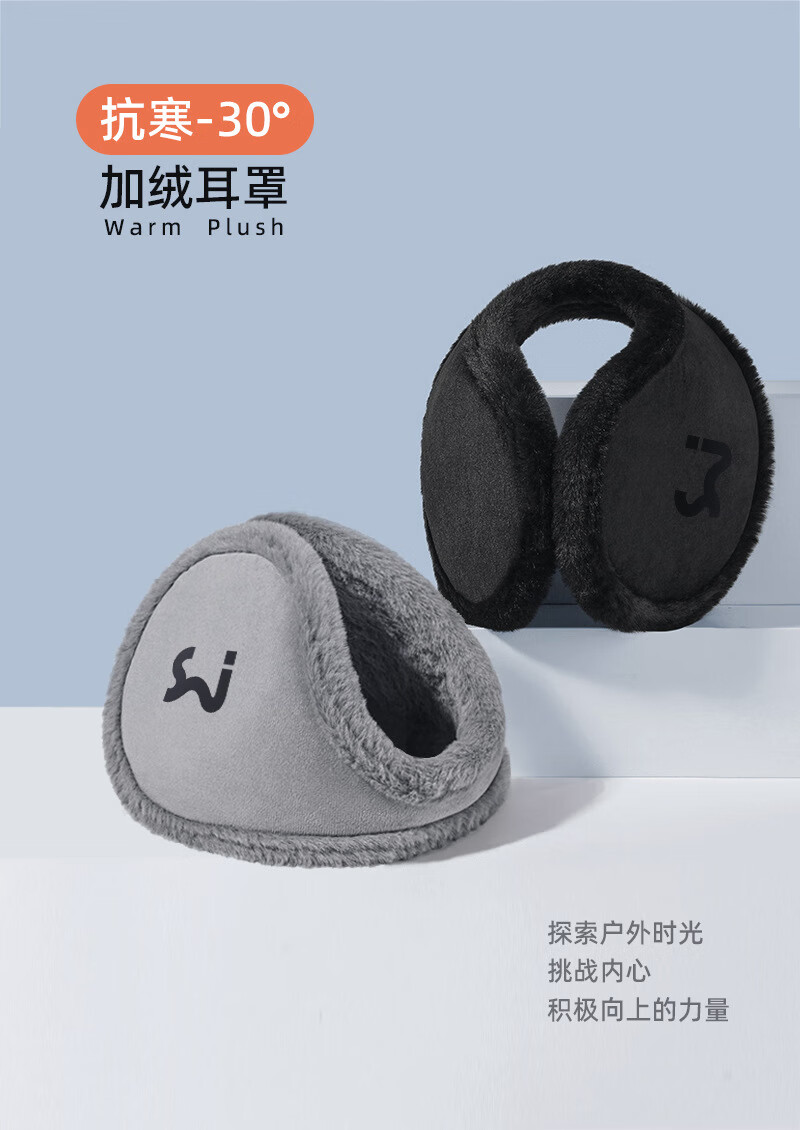 Di Shulan's new thickened plush warm earmuffs for winter men's ear protection and ear warmers solid color student anti-cold back-worn earmuffs plus velvet style - Yao Ye Black