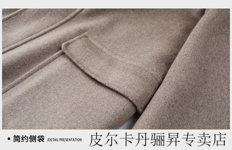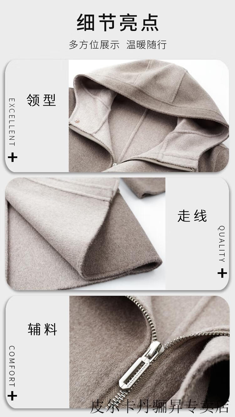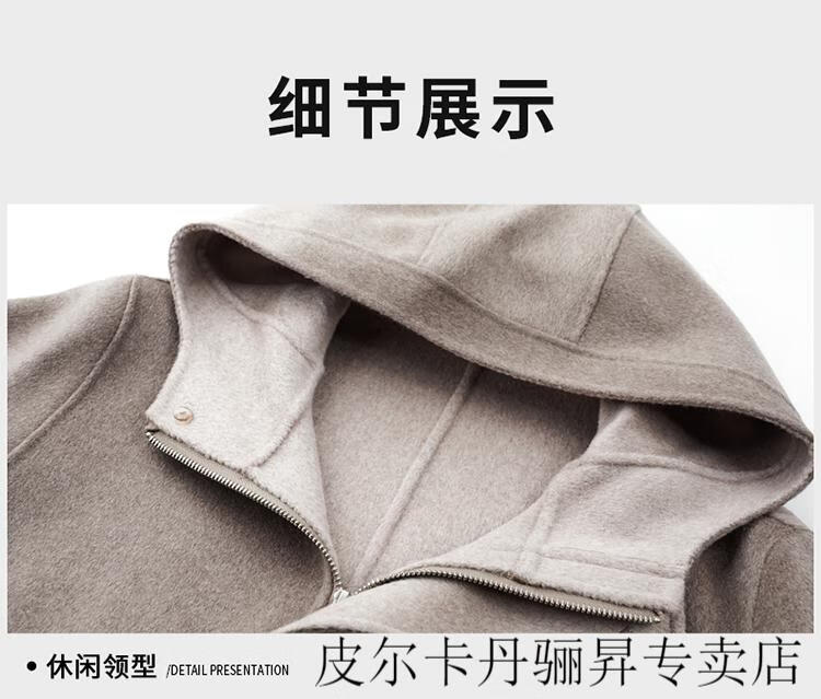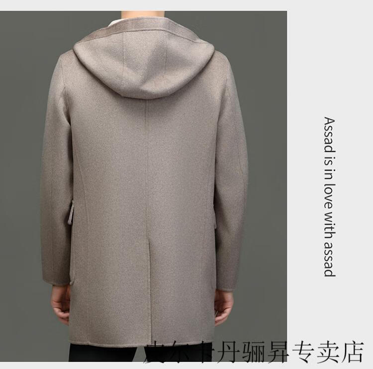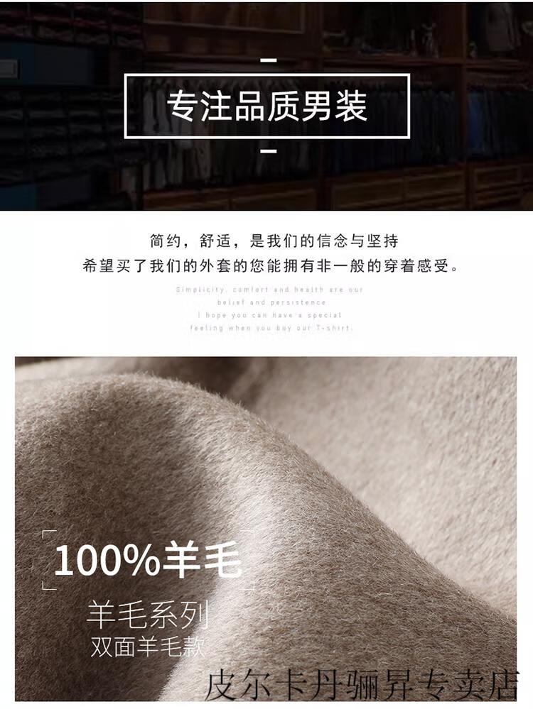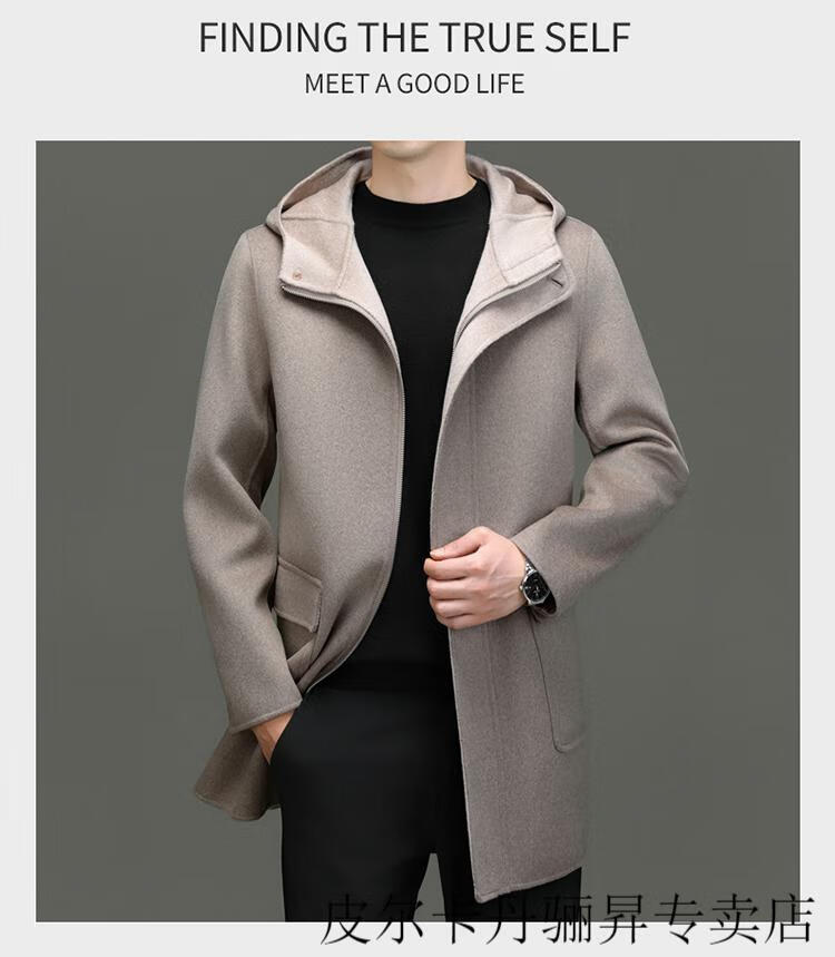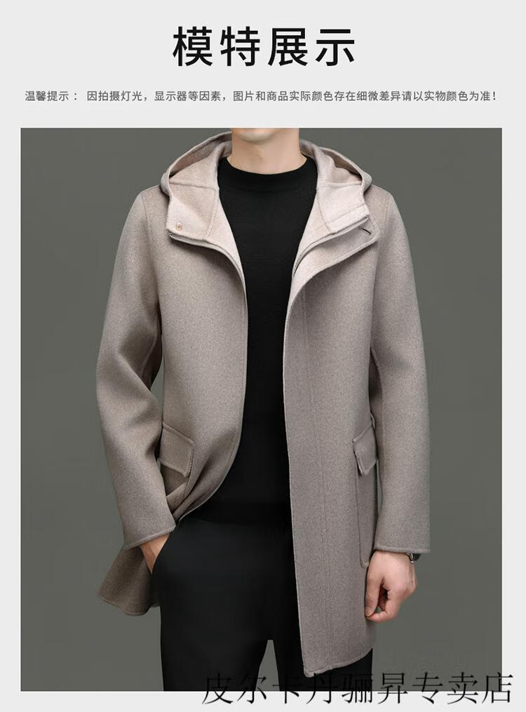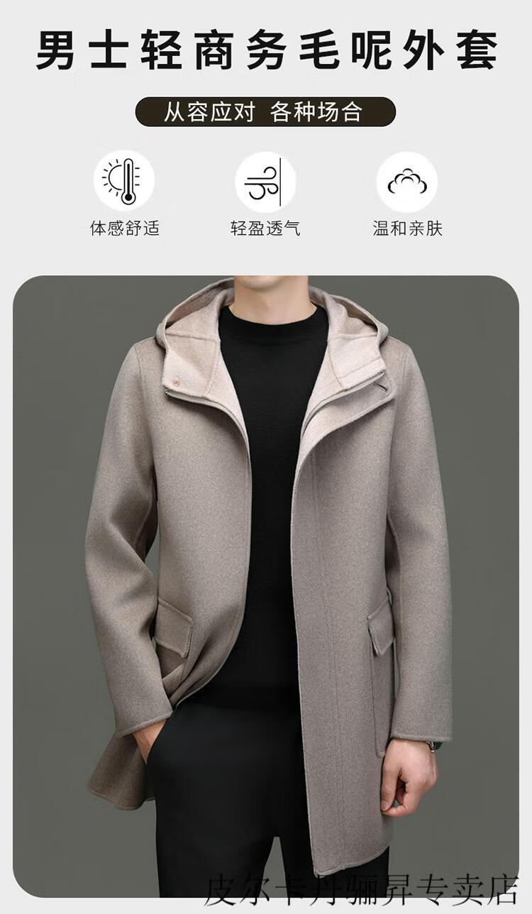 Pierre Cardin brand 100% wool hooded woolen coat men's autumn and winter mid-length double-sided woolen coat casual wool windbreaker black M recommended 110-130Jin Jin equals 0.5 kg