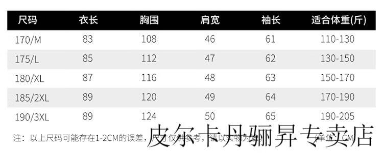 China (cm) 165 / 88-90 170 / 96-98 175 / 108-110 180 / 118-122 185 / 126-130