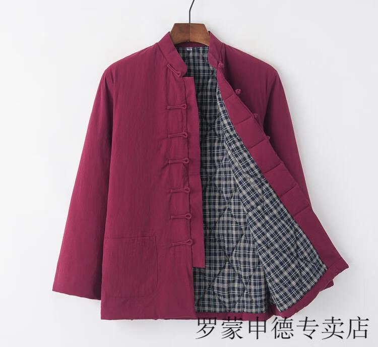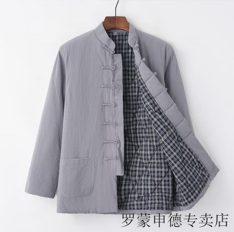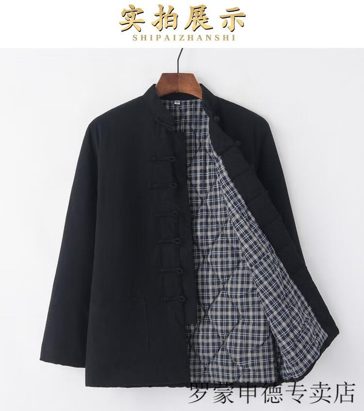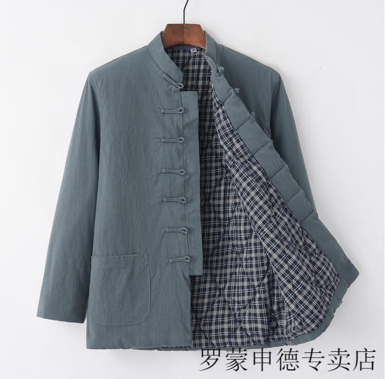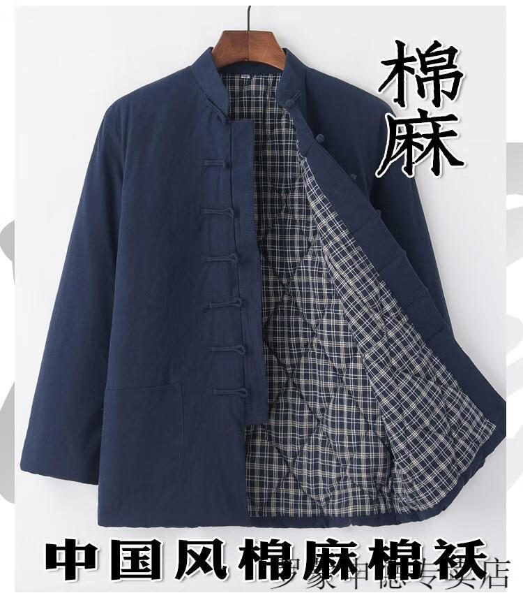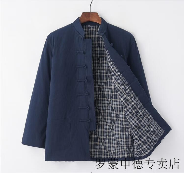 ROMON Chinese-style Tang suit cotton-padded jacket for middle-aged and elderly men, winter thickened coat, layman's suit, Hanfu, plate buckle and quilted, navy blue 175/XL