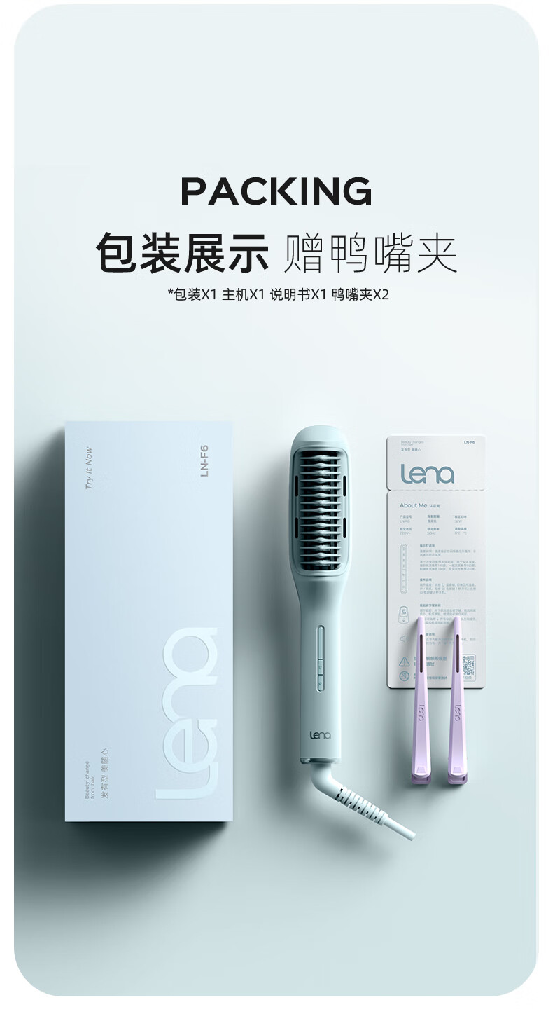 Lena straight hair comb negative ions do not hurt hair, fluffy straight hair artifact mini portable small curling iron perm inner buckle splint dual-use household anti-scald electric comb F6 50 million negative ions comb teeth can be clamped F6