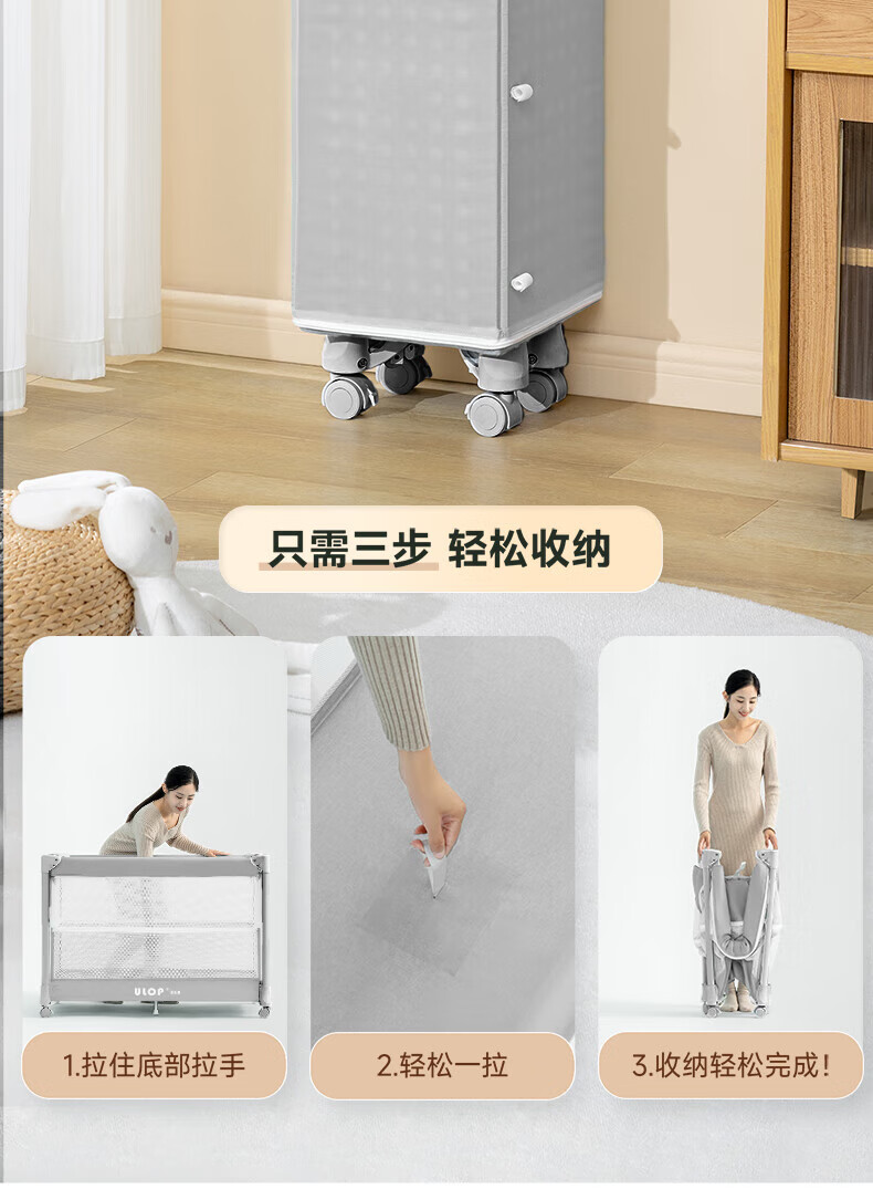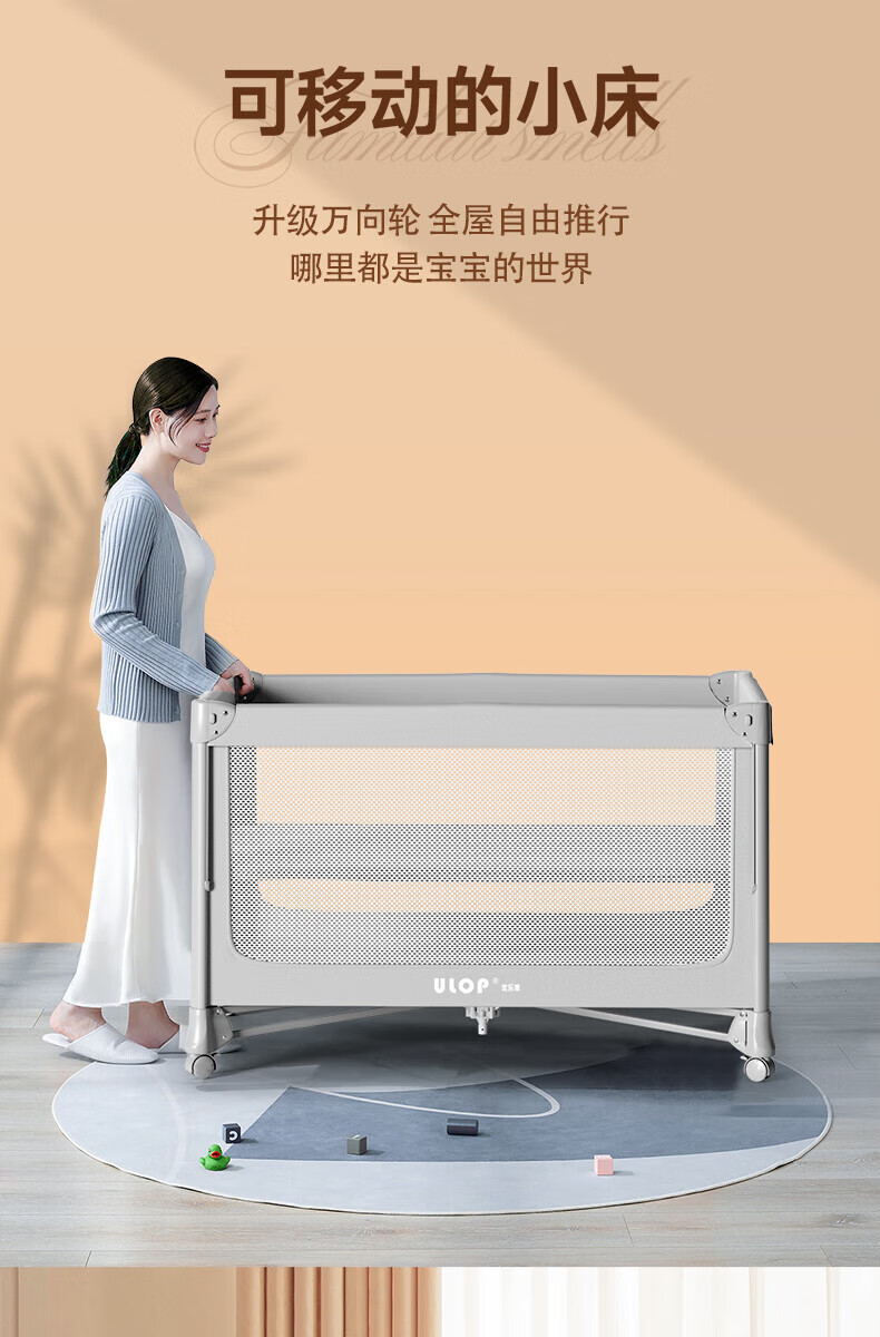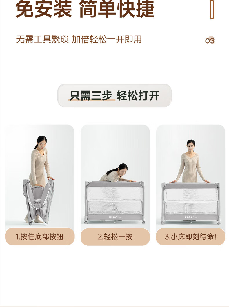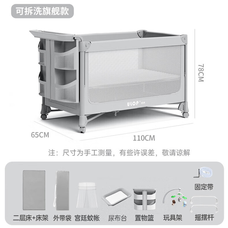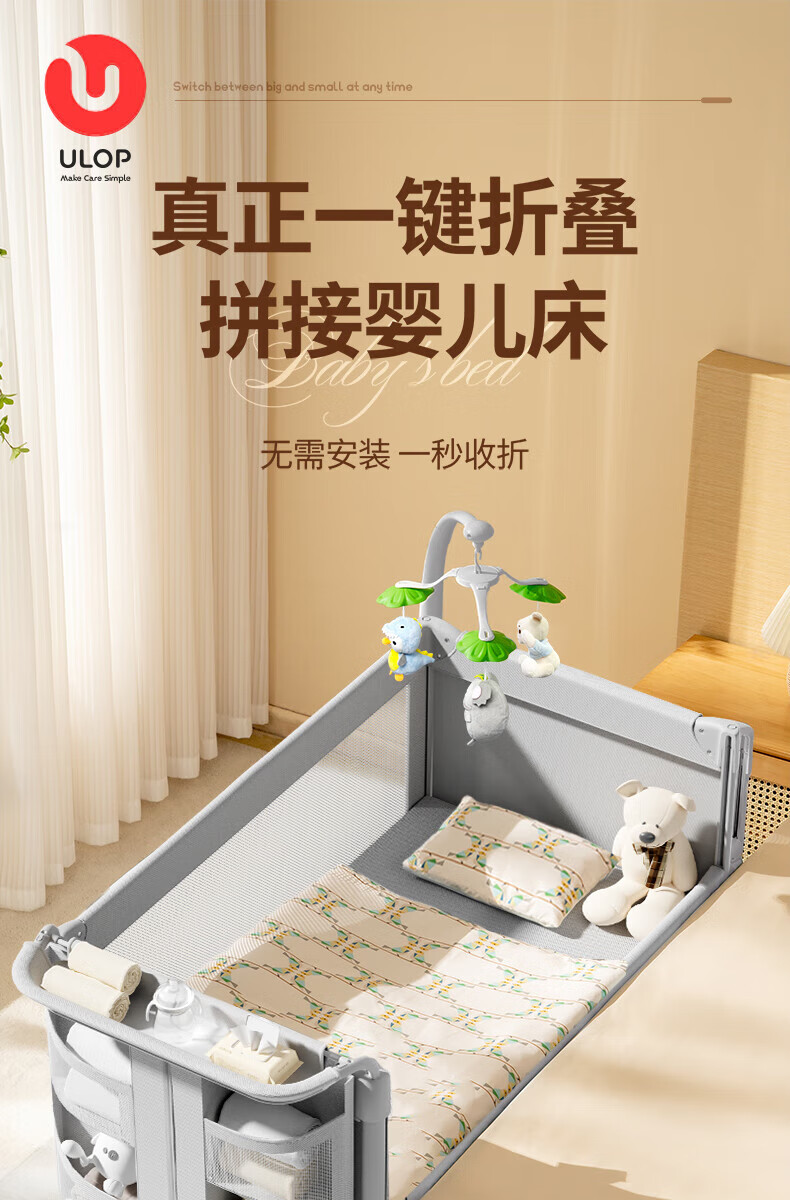 ULOP one-touch folding crib multi-functional removable bed spliced baby bed with diaper table 0-3 years old newborn bb bed removable and washable flagship model diaper table + mosquito net