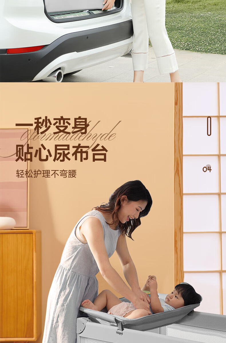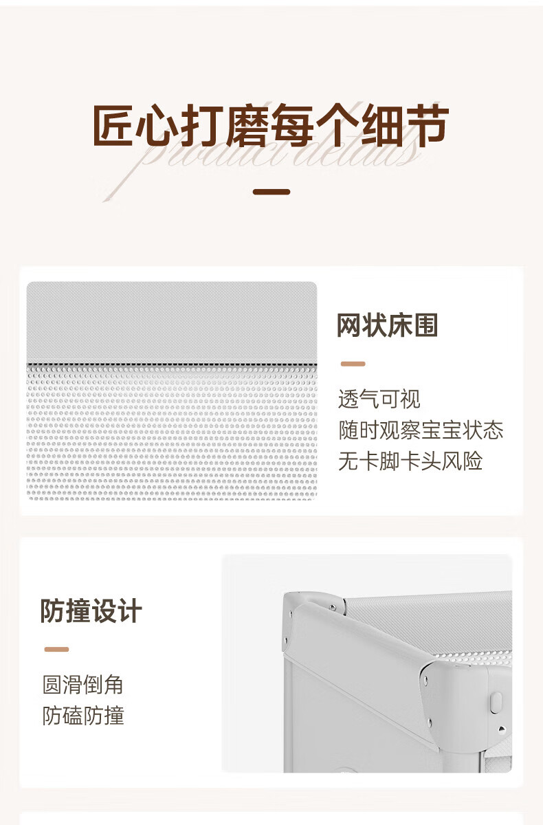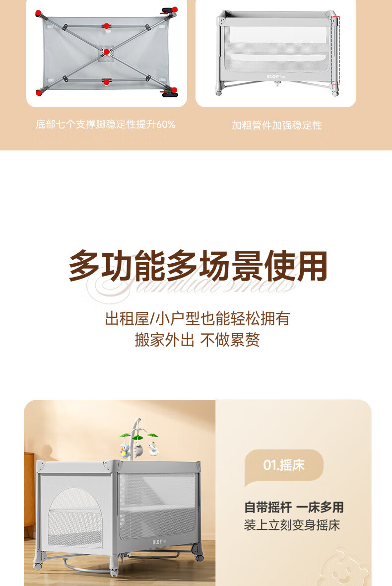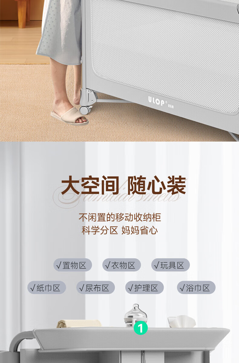 ULOP one-touch folding crib multi-functional removable bed spliced baby bed with diaper table 0-3 years old newborn bb bed removable and washable flagship model diaper table + mosquito net