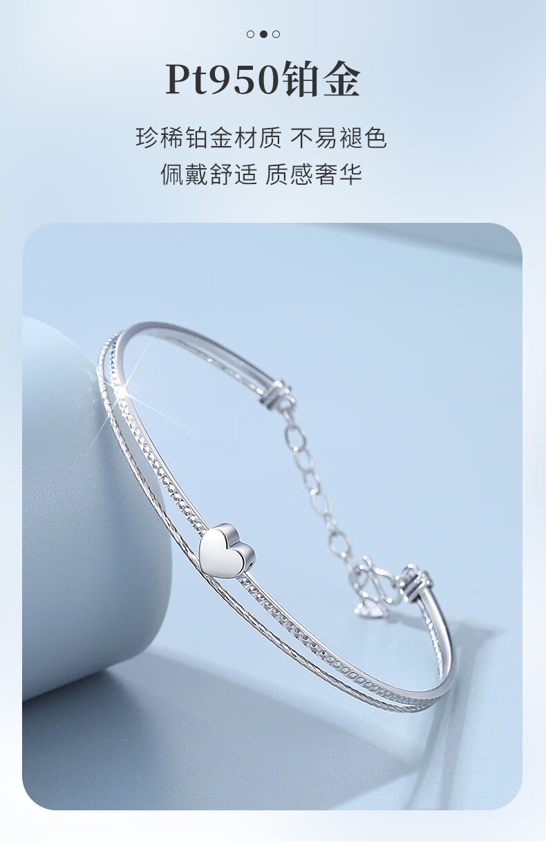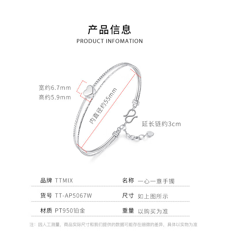 TTMIX fashionable platinum bracelet for women pt950 love platinum bracelet chain heart shape for girlfriend 7.3-7.5g 56mm