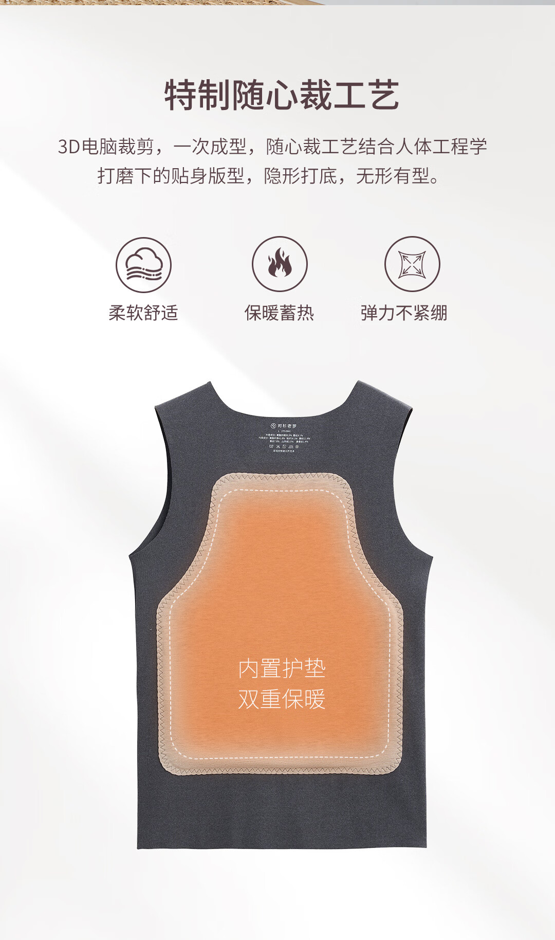 Shirt Lao Luo Thermal Vest Men's Seamless Skin Friendly Thermal Underwear Thermal Storage Warm Bottoming Shirt Inside Thermal Clothes Men's BB001 Black Gray XL