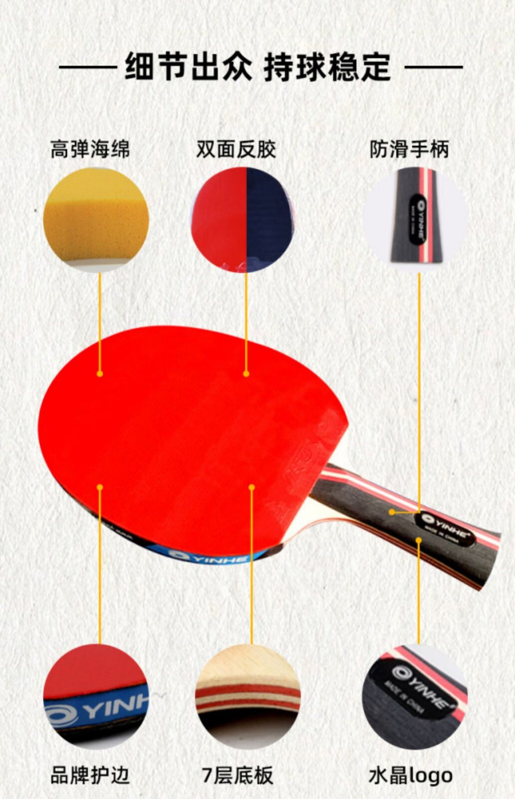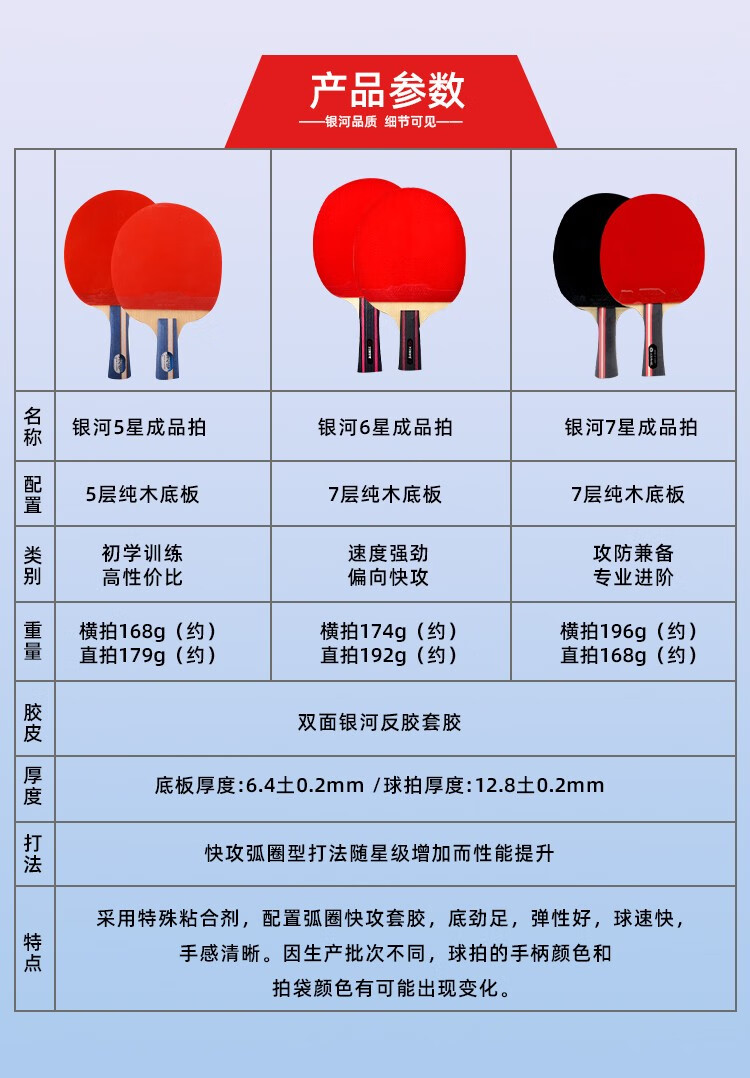 Galaxy (YINHE) table tennis racket for beginners and students, professional-grade table tennis single racket, professional finished racket, six-star 6-star straight racket