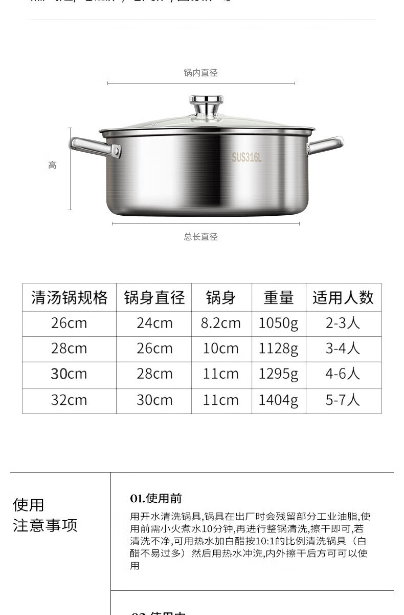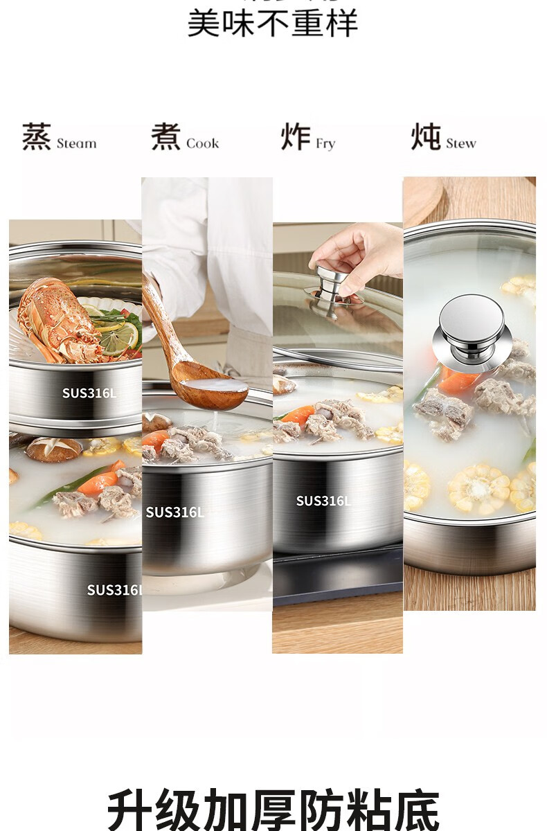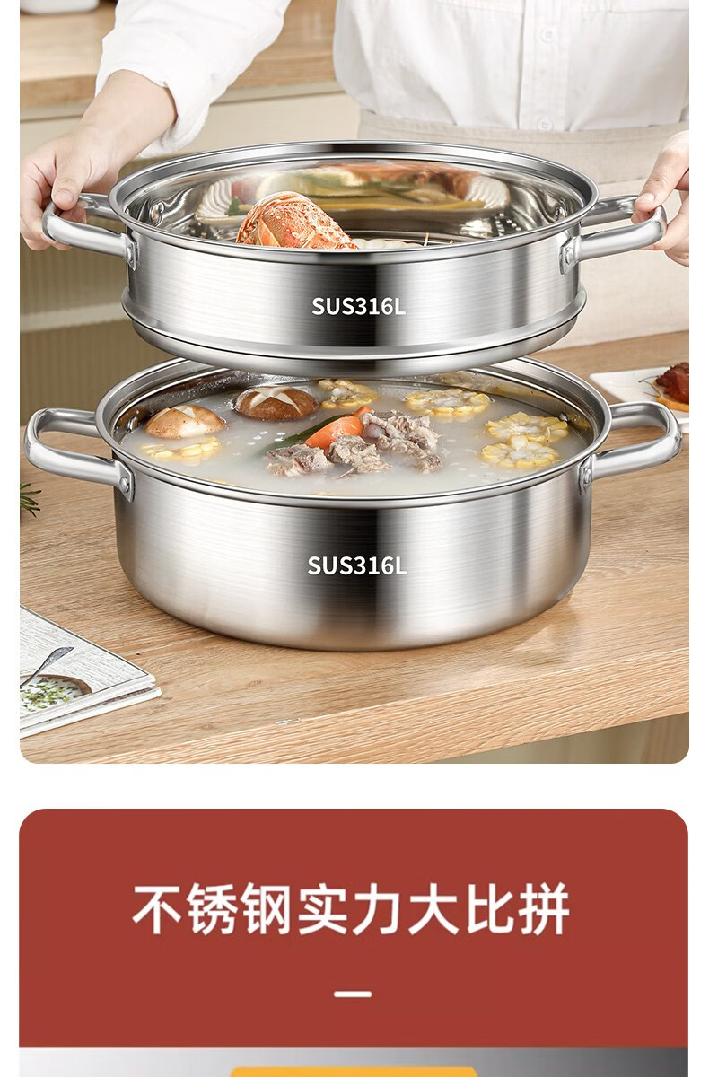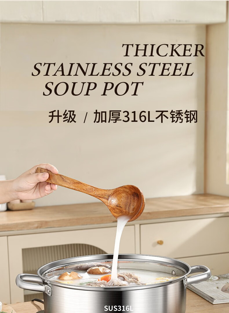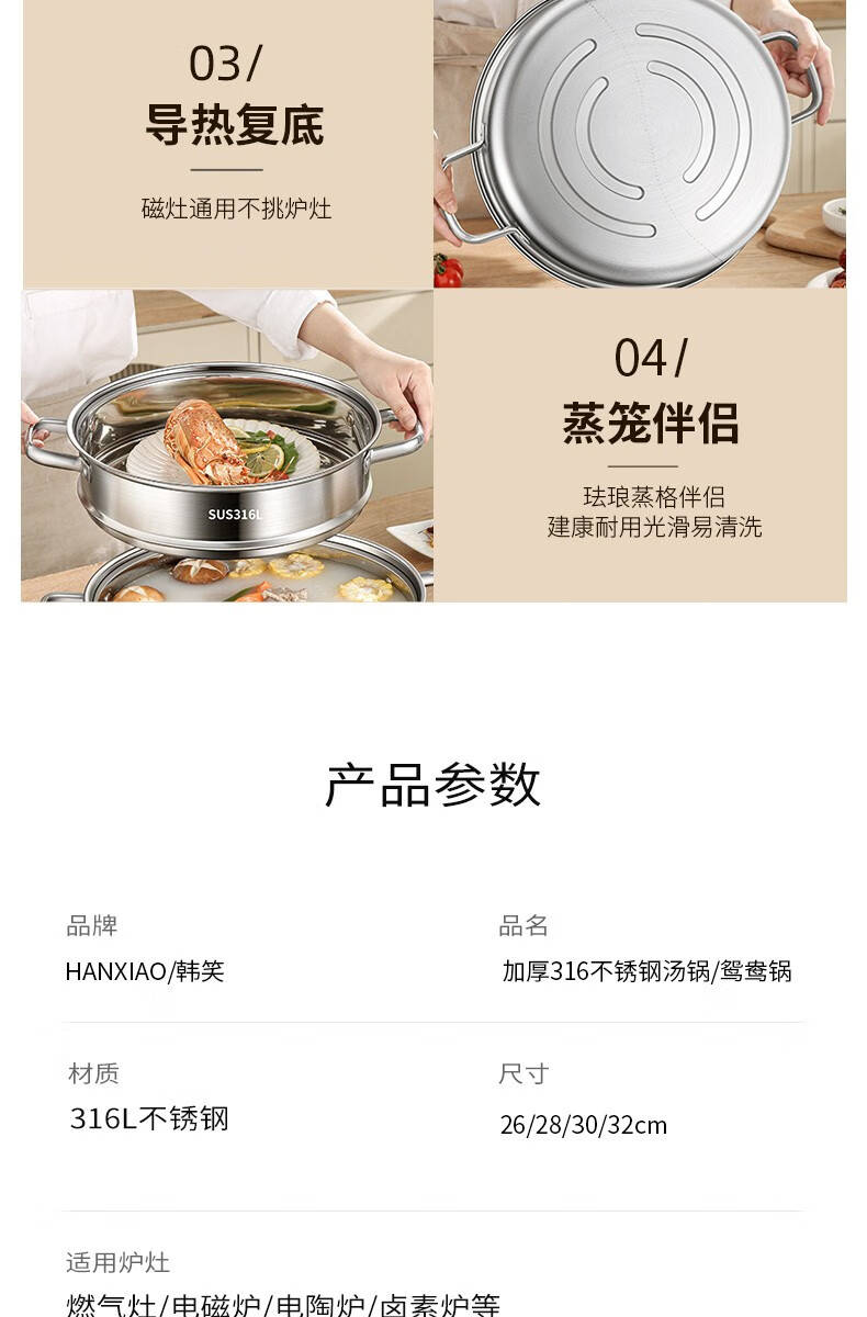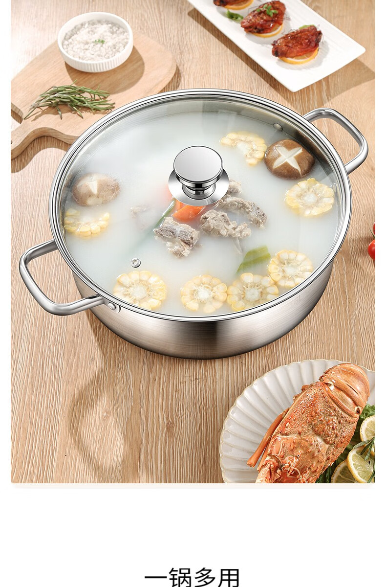 Hanxiao food grade 316 stainless steel soup pot household induction cooker hot pot special pot large capacity household hot pot basin thickened clear soup hot pot suitable for 4-6 people 30cm