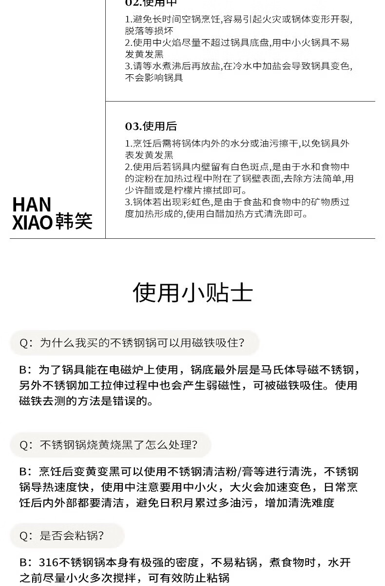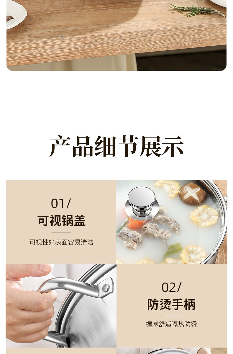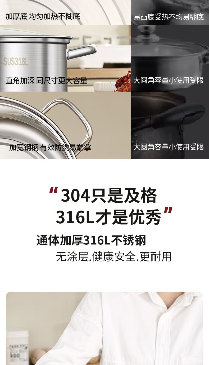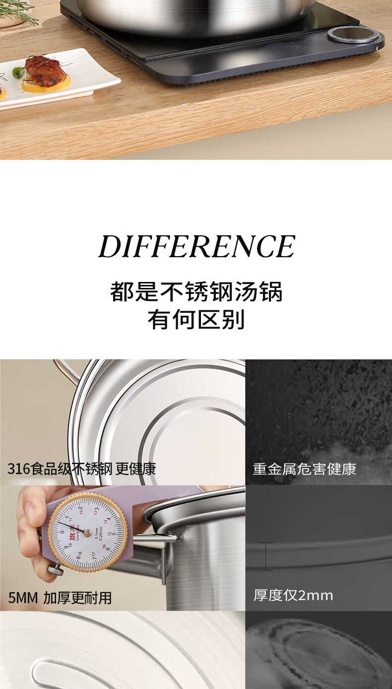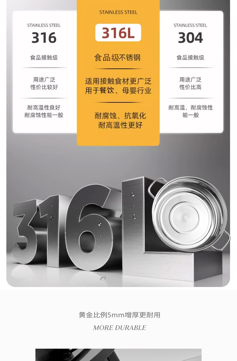 Hanxiao food grade 316 stainless steel soup pot household induction cooker hot pot special pot large capacity household hot pot basin thickened clear soup hot pot suitable for 4-6 people 30cm