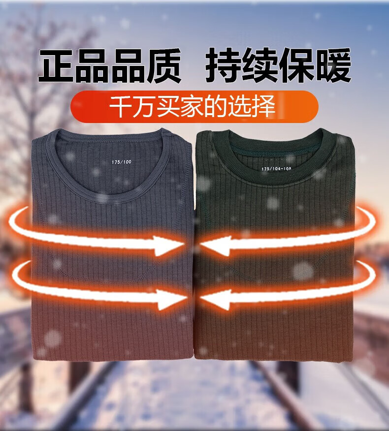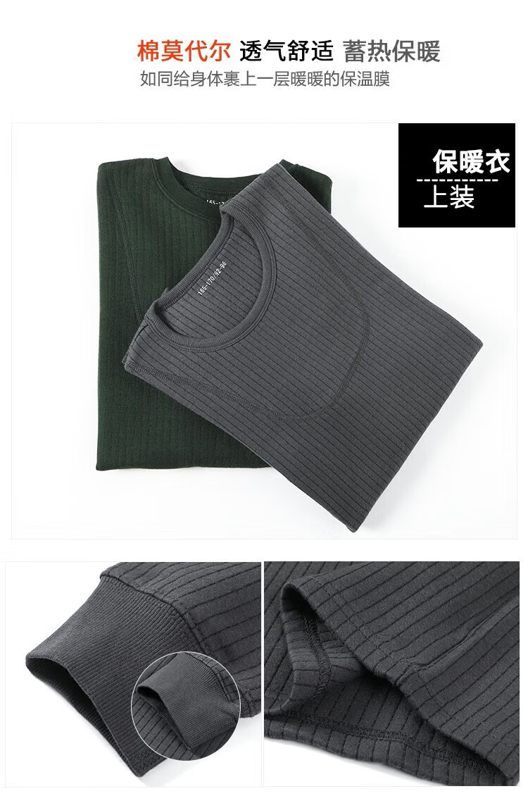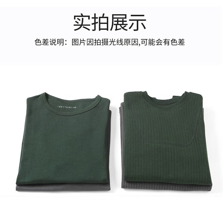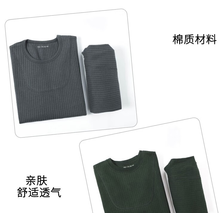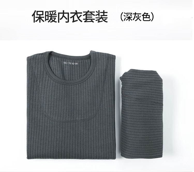 Jihua 3565 new style autumn clothes and autumn trousers set warm underwear men's thickened cold-proof warm round neck military underwear set autumn clothes and trousers dark gray 180-185/92-96