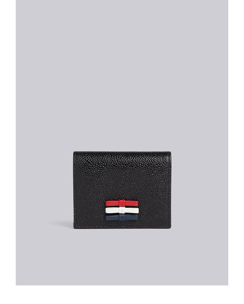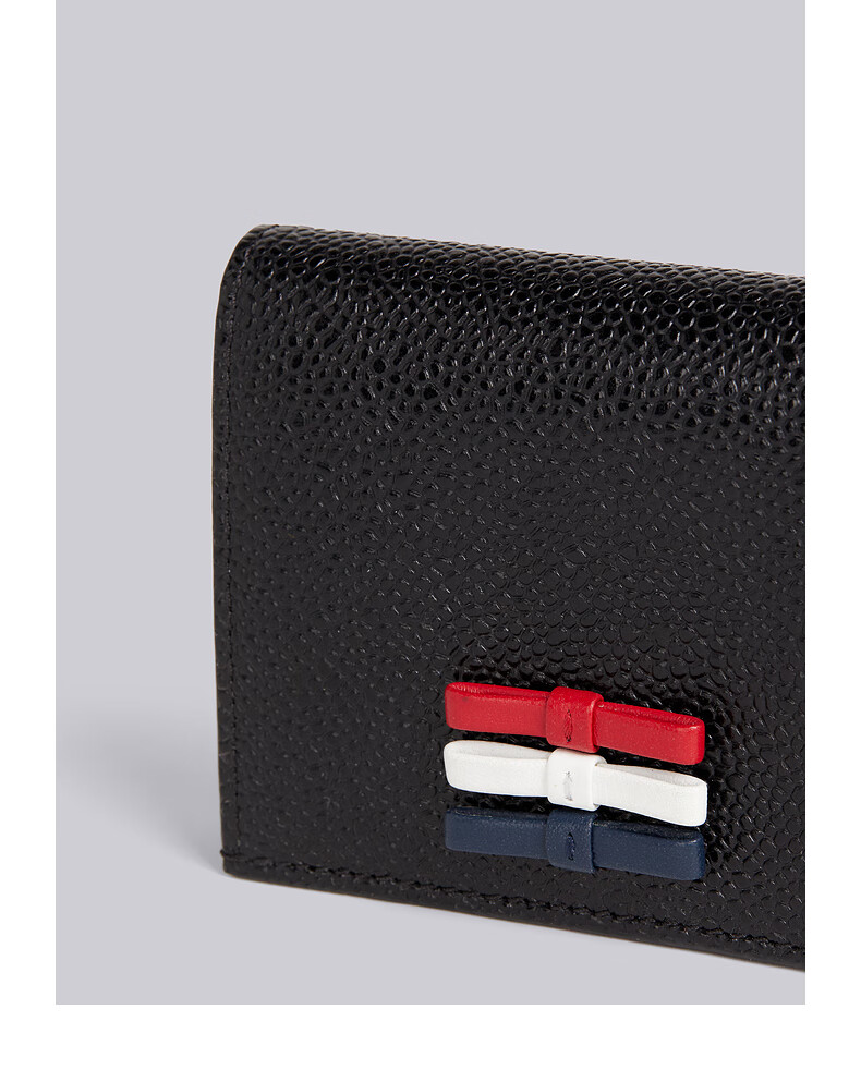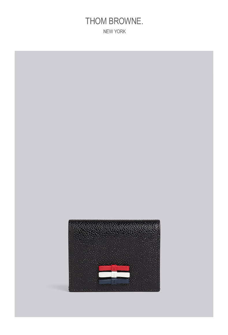 THOM BROWNE TB Custom bronzing pebble leather double-sided card holder black size 00