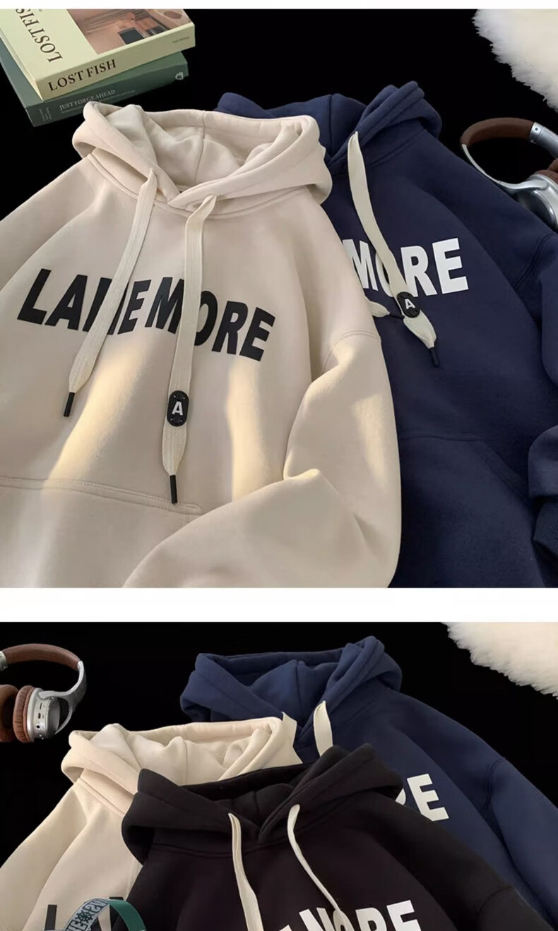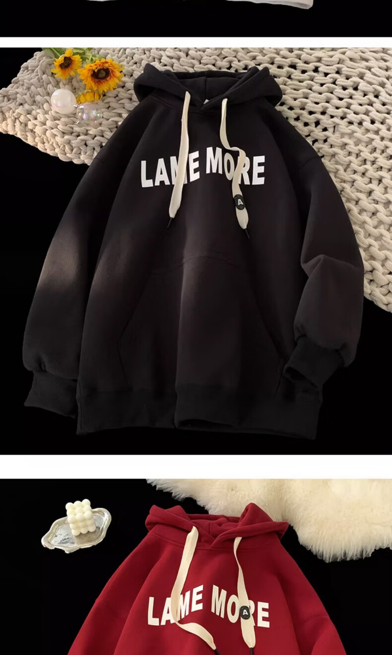 Woodpecker Sweatshirt Men's 2025 Autumn and Winter Heavy Thick Fashion Hooded Sweatshirt Men's Teenagers Versatile Sweatshirt Top Men Black Velvet XL 120-140Jin Jin equals 0.5 kg