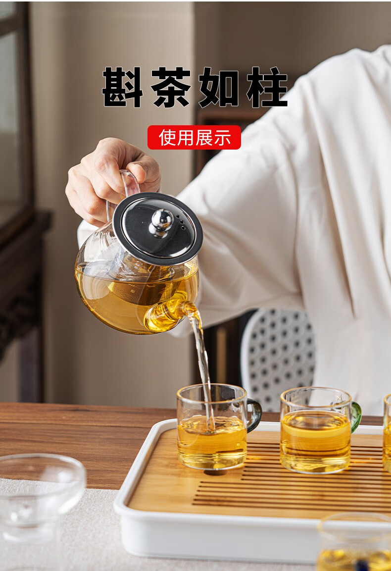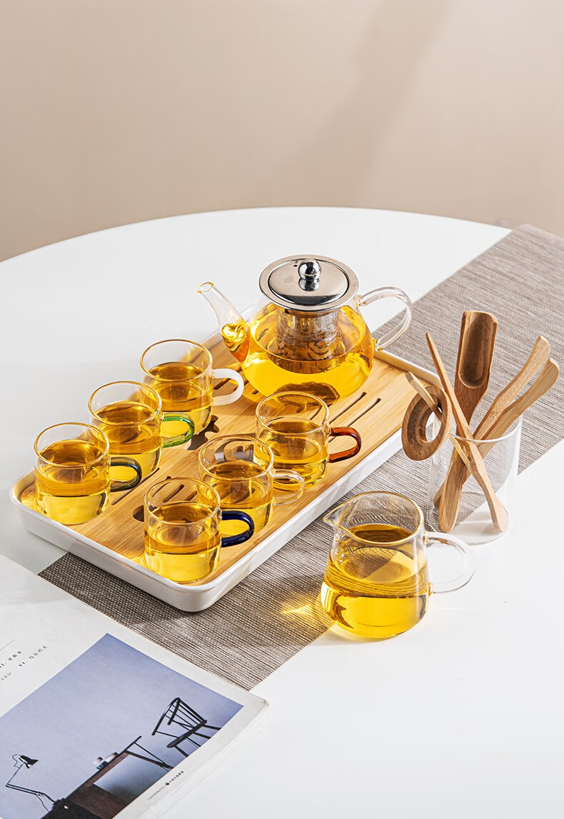 Haoxiang light luxury high-end glass kung fu tea set tea tray set home office simple reception cup pot tea brewing set Bajun pot + four-color cup five-piece set + small square plate