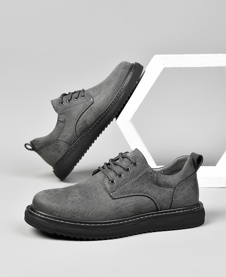 SATCHI men's shoes autumn and winter new business casual shoes fashionable British sneakers men's low-cut lace-up shoes for men gray 40 (250mm) leather shoe size