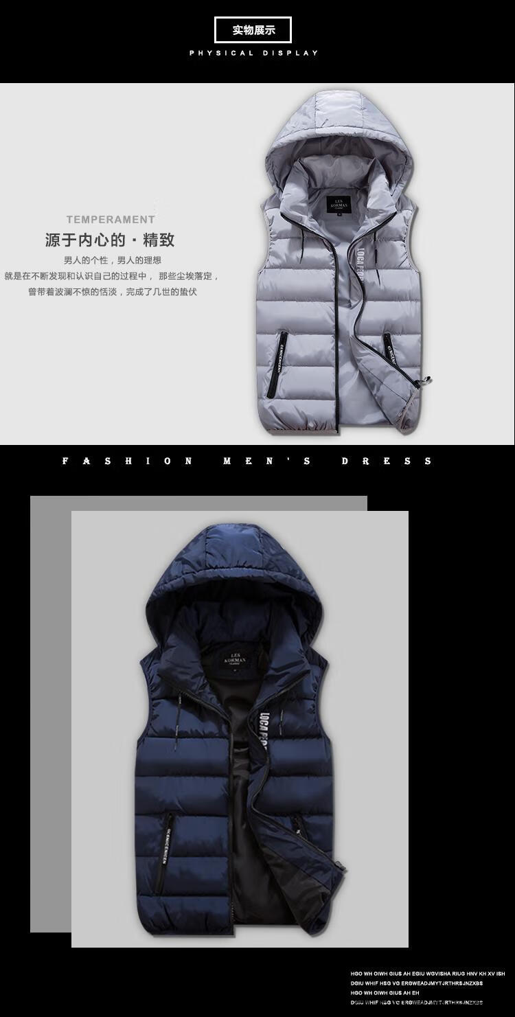 Pierre Cardin Winter Cotton Vest Men's Hooded Vest Men's Loose Vest Korean Style Trendy Down Cotton Sleeveless Jacket Vest Black M 80-100Jin Jin is equal to 0.5 kg