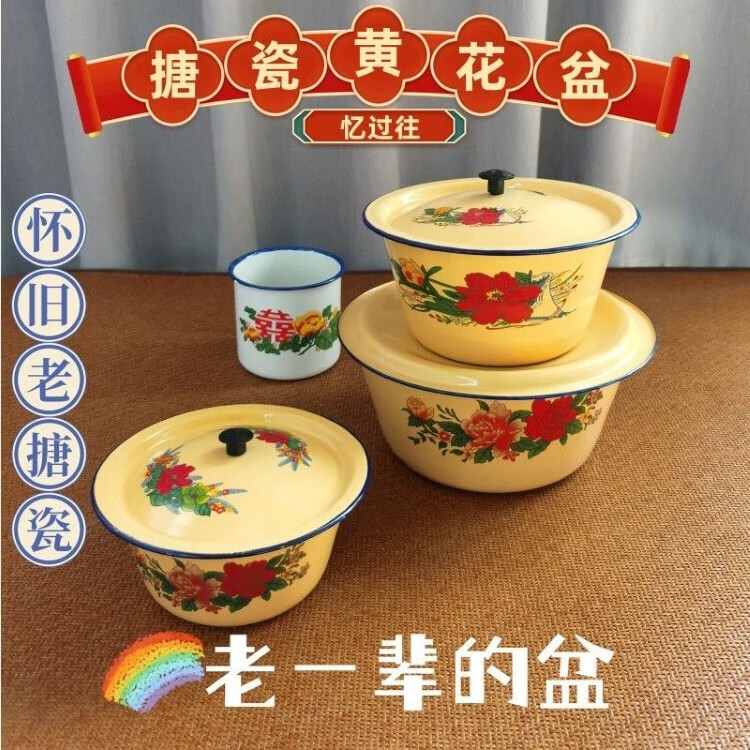 Aseblarm lard tank household storage tank high temperature resistant meat oil tank old-fashioned with lid retro nostalgic and basin enamel basin 17 cm thickened version with lid 1050ml
