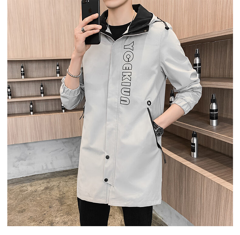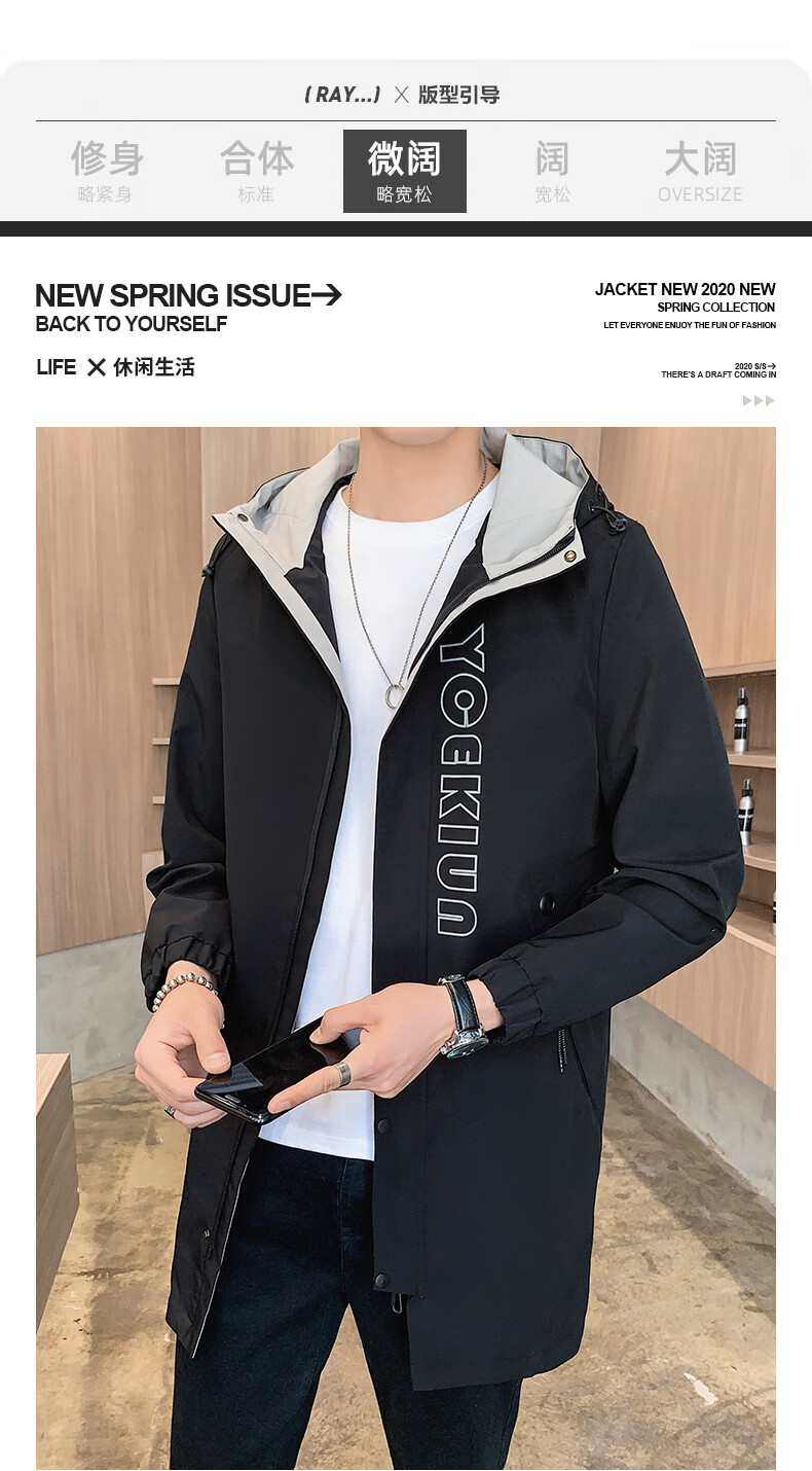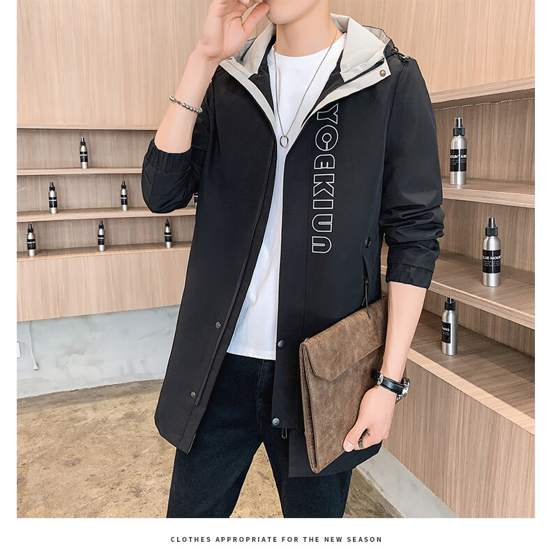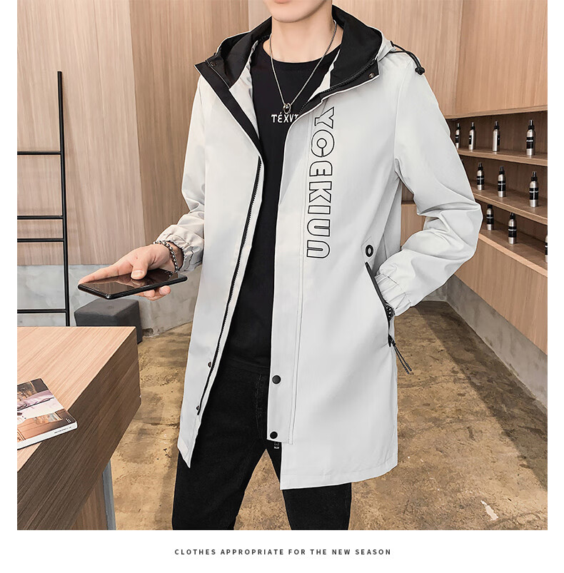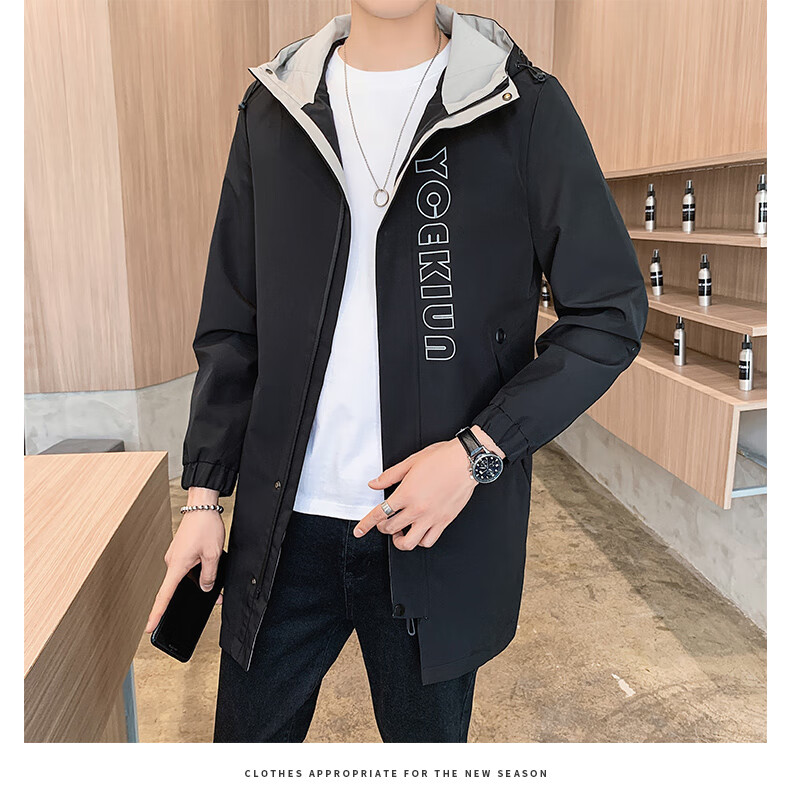 Pierre Cardin Windbreaker Men's Mid-Length Spring Autumn Winter Jacket Hooded Men's Plus Size Plus Size Students and Teenagers JS-2177 Green Mid-Length Windbreaker XL Weight 120-140Jin Jin is equal to 0.5 kg