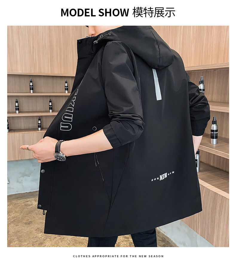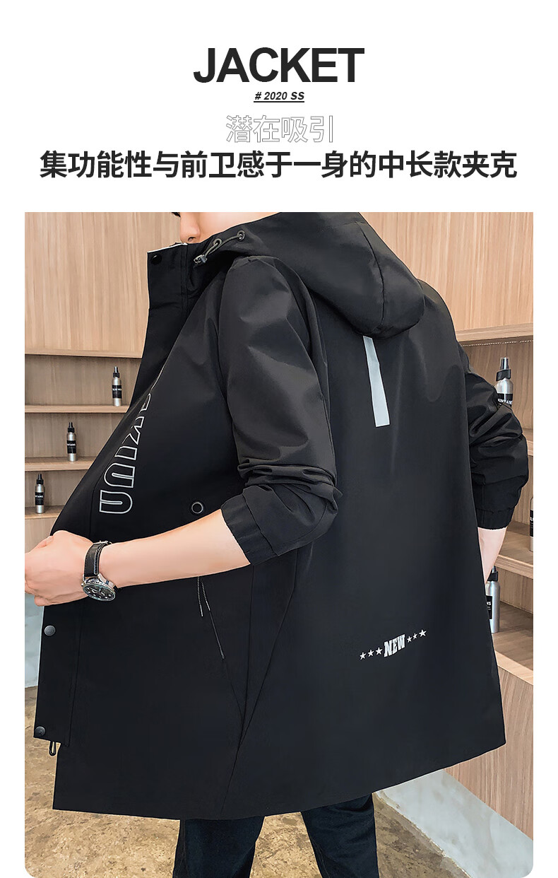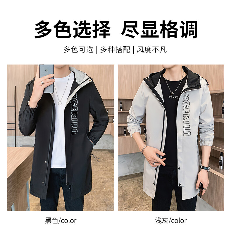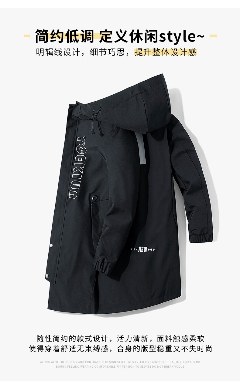 Pierre Cardin Windbreaker Men's Mid-Length Spring Autumn Winter Jacket Hooded Men's Plus Size Plus Size Students and Teenagers JS-2177 Green Mid-Length Windbreaker XL Weight 120-140Jin Jin is equal to 0.5 kg