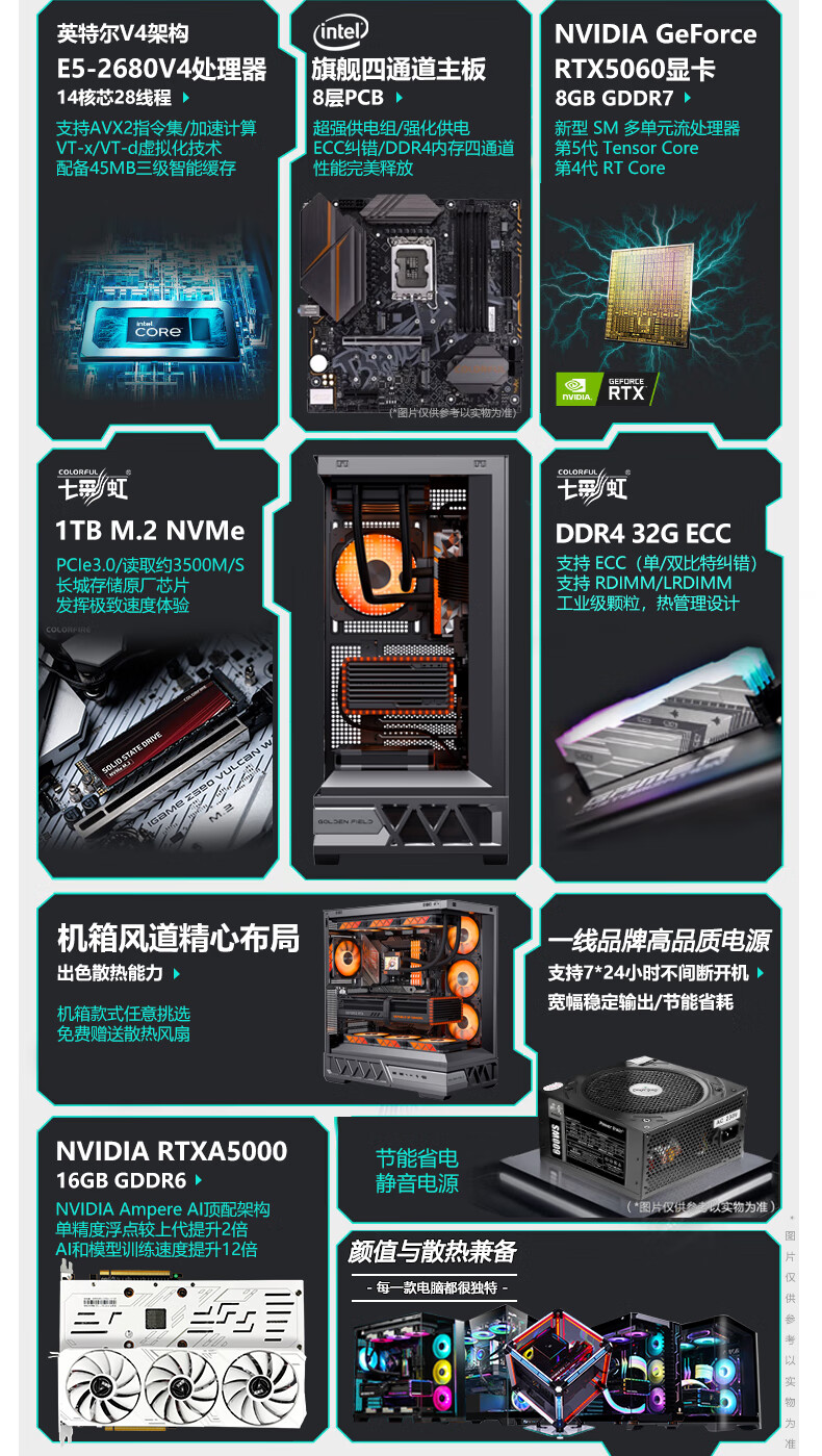 Colorful RTX5060/RTX5050 independent graphics + Intel high-end 14 cores 28 threads desktop computer RTX4060/3060 e-sports design live broadcast host i5/i7/i9 assembly machine configuration three i9 level 12 cores 24 threads + RTX3050