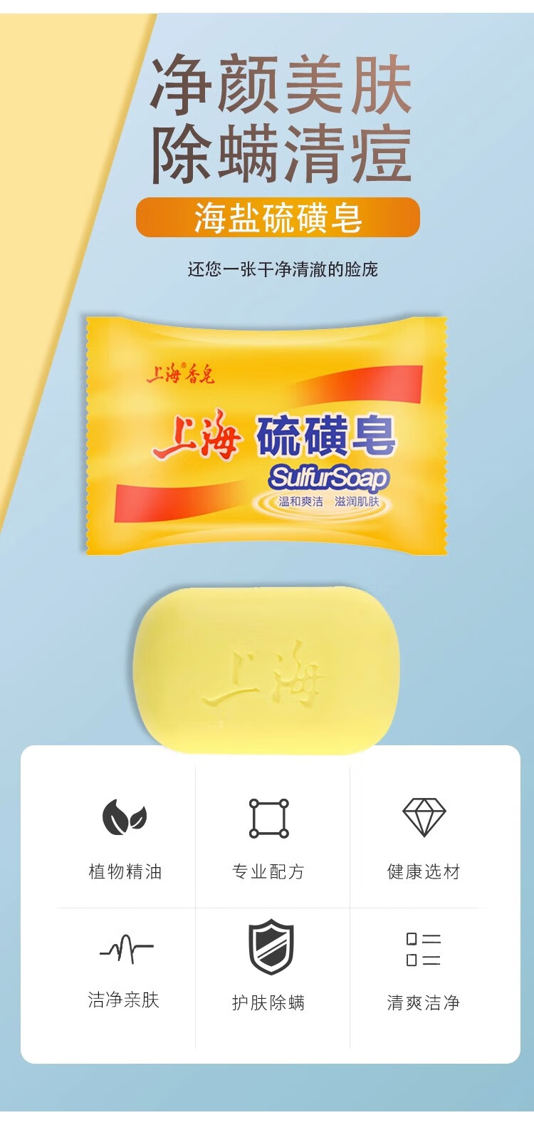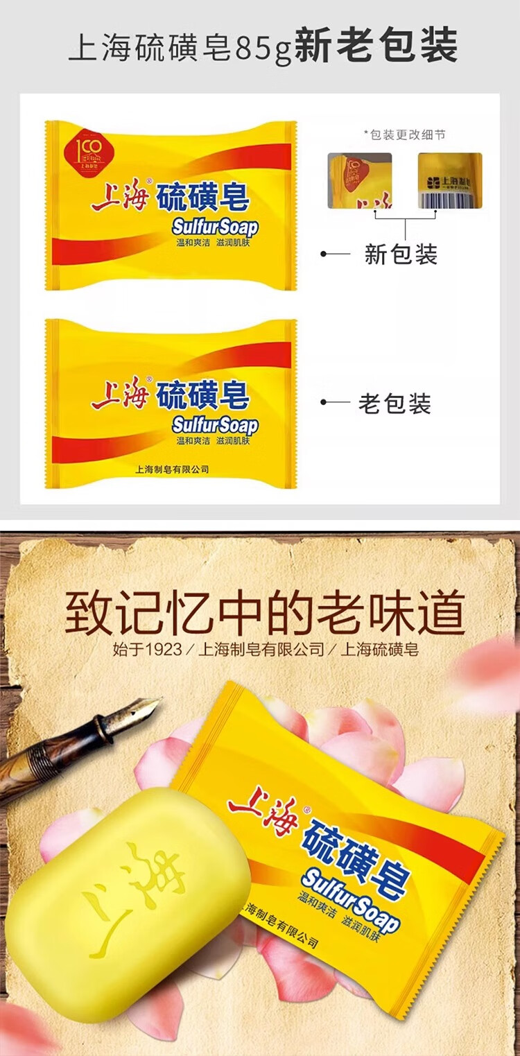 Shanghai sulfur soap anti-mite soap bath hand soap soap face bath deep cleansing men and women back bath soap sulfur soap 85g