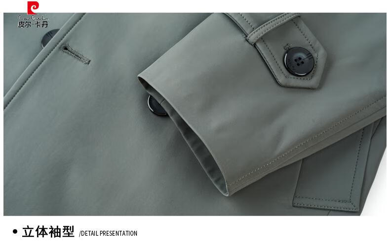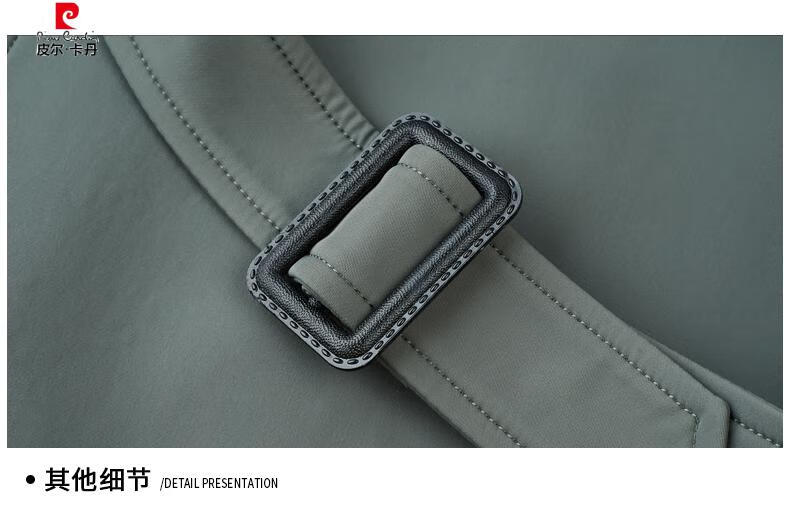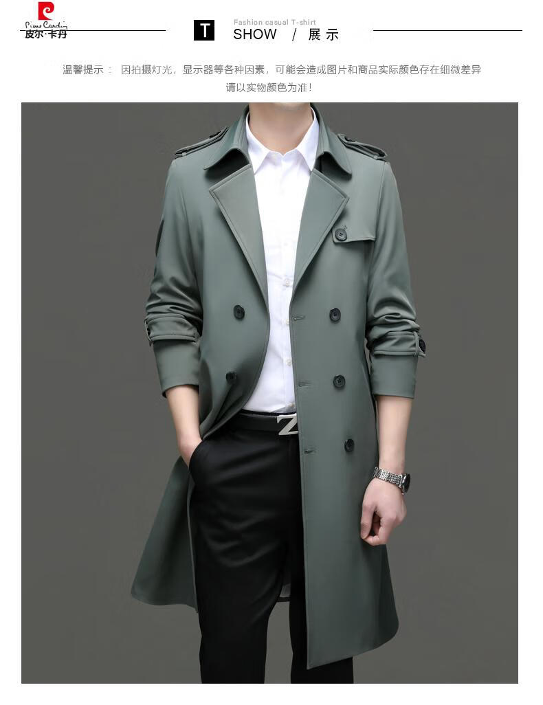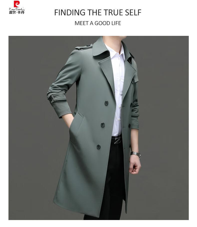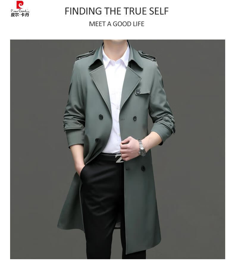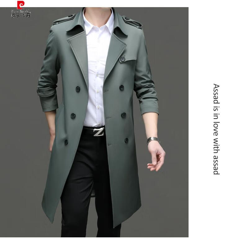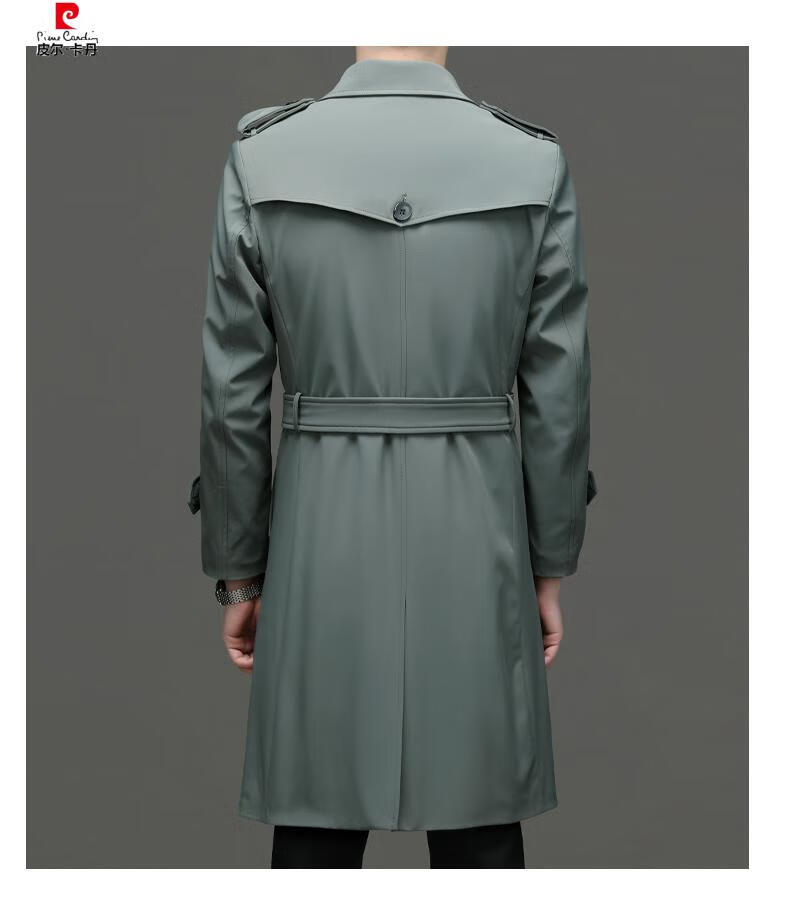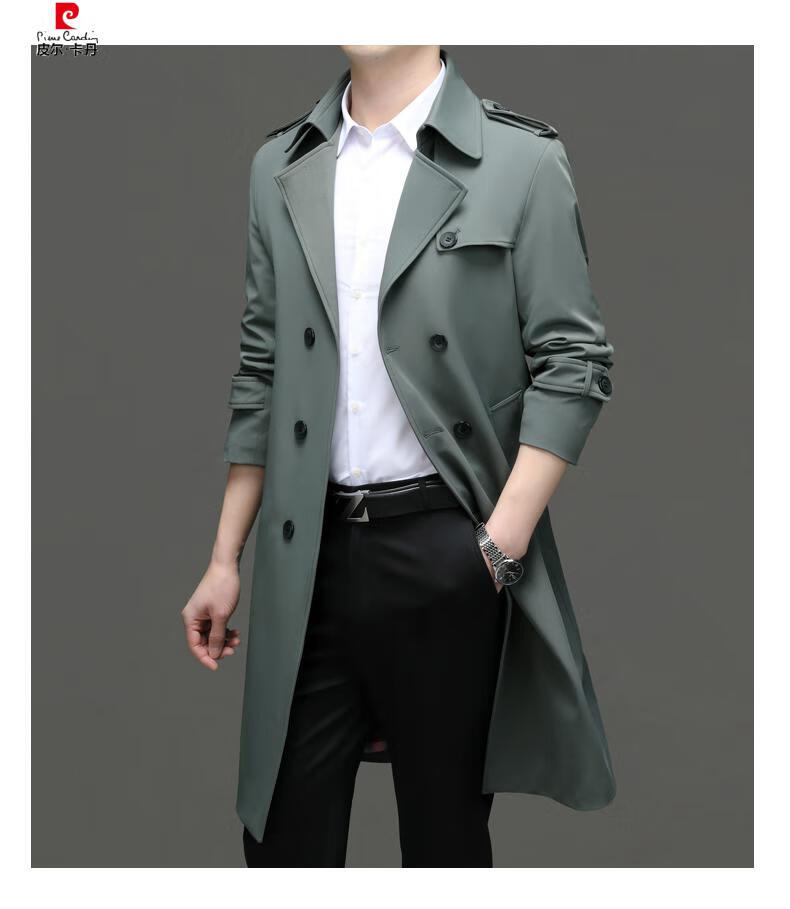 Pierre Cardin high-end high-end windbreaker men's knee-length long 2025 spring and autumn coat men's loose coat British style business men's wear pea green 180/XL