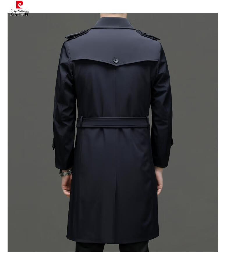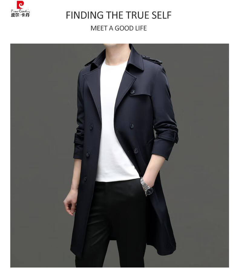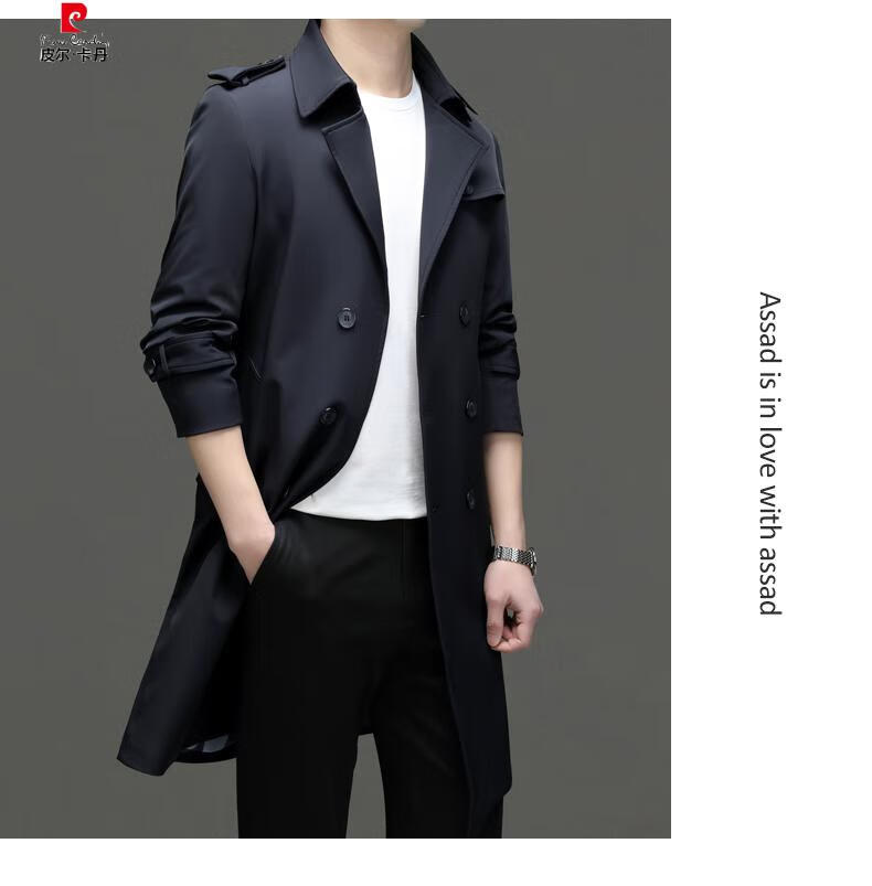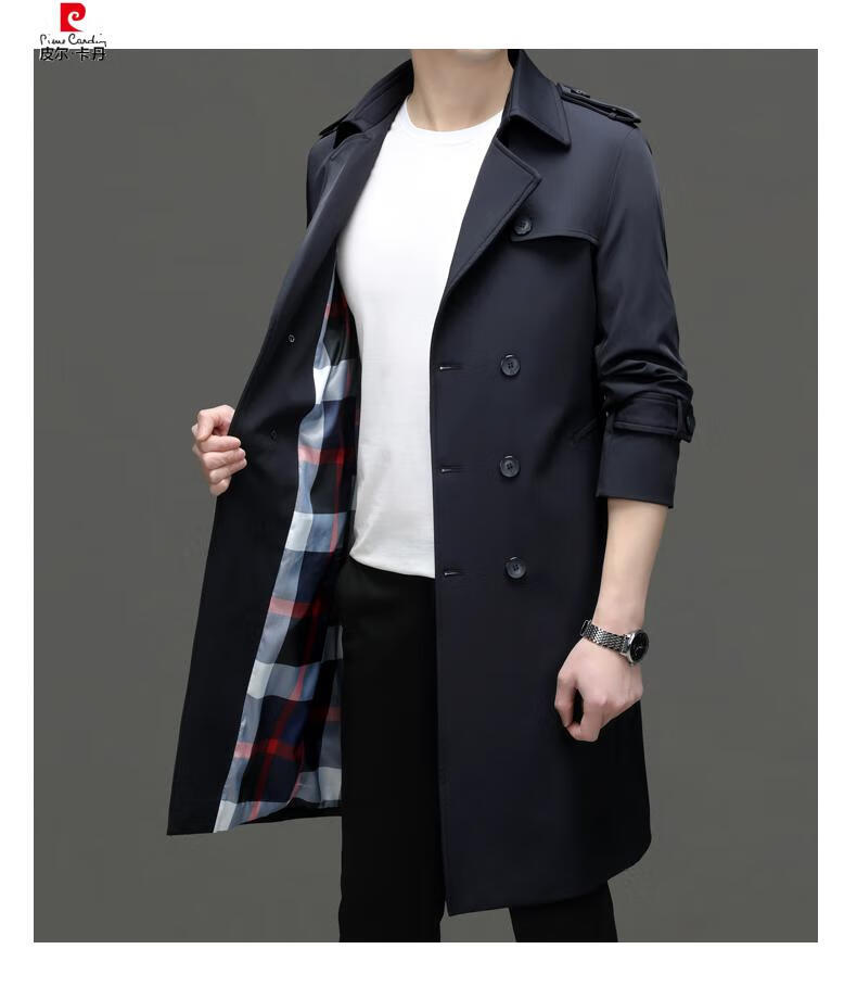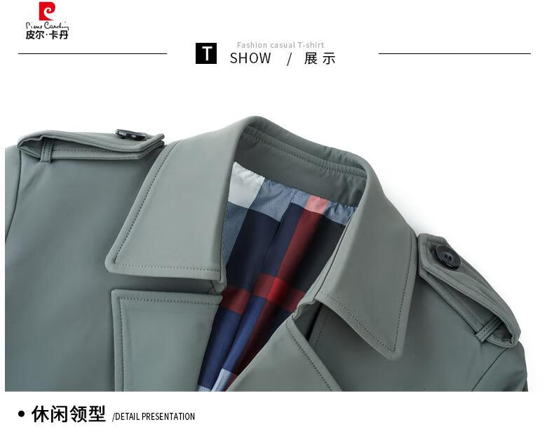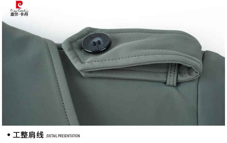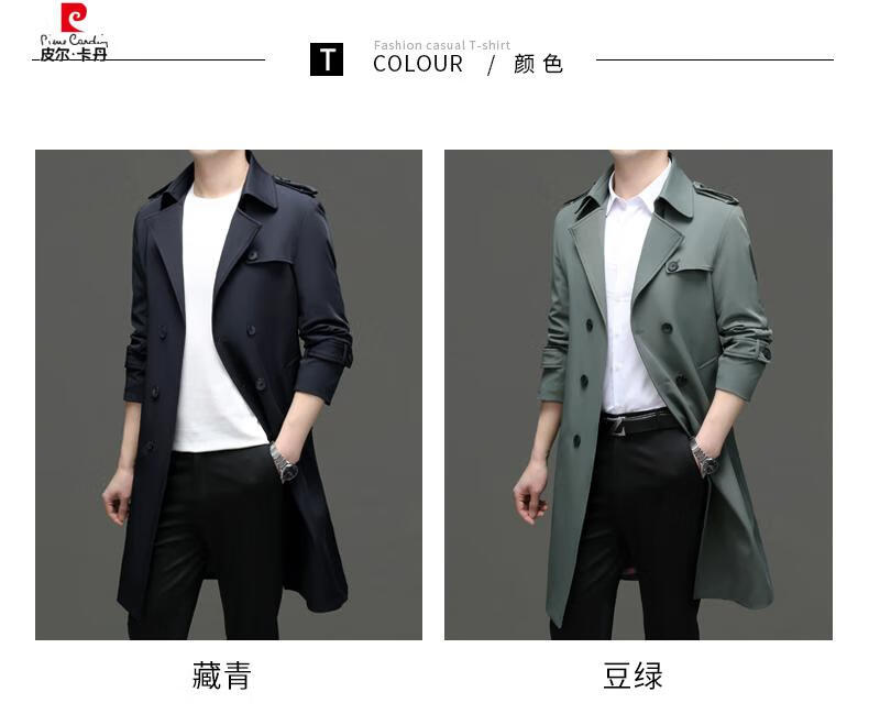 Pierre Cardin high-end high-end windbreaker men's knee-length long 2025 spring and autumn coat men's loose coat British style business men's wear pea green 180/XL
