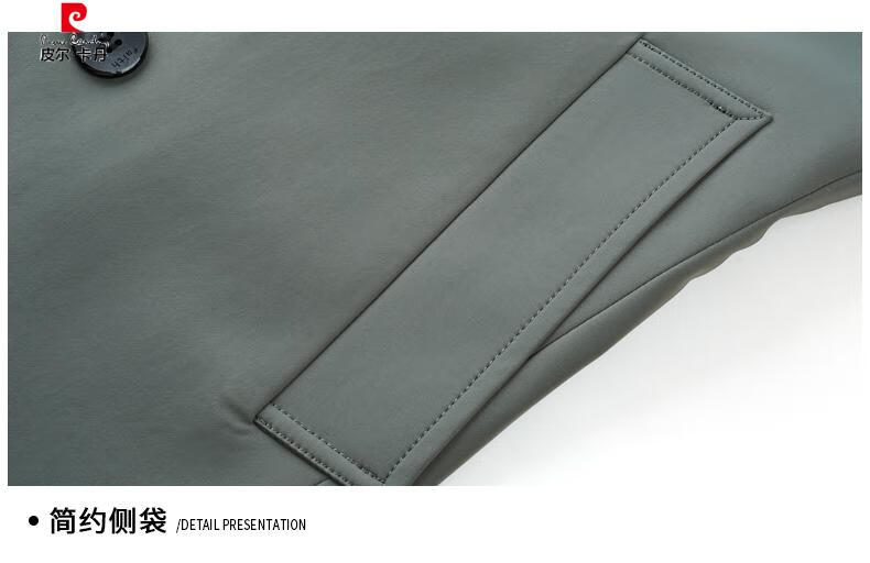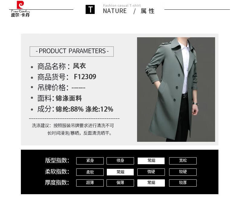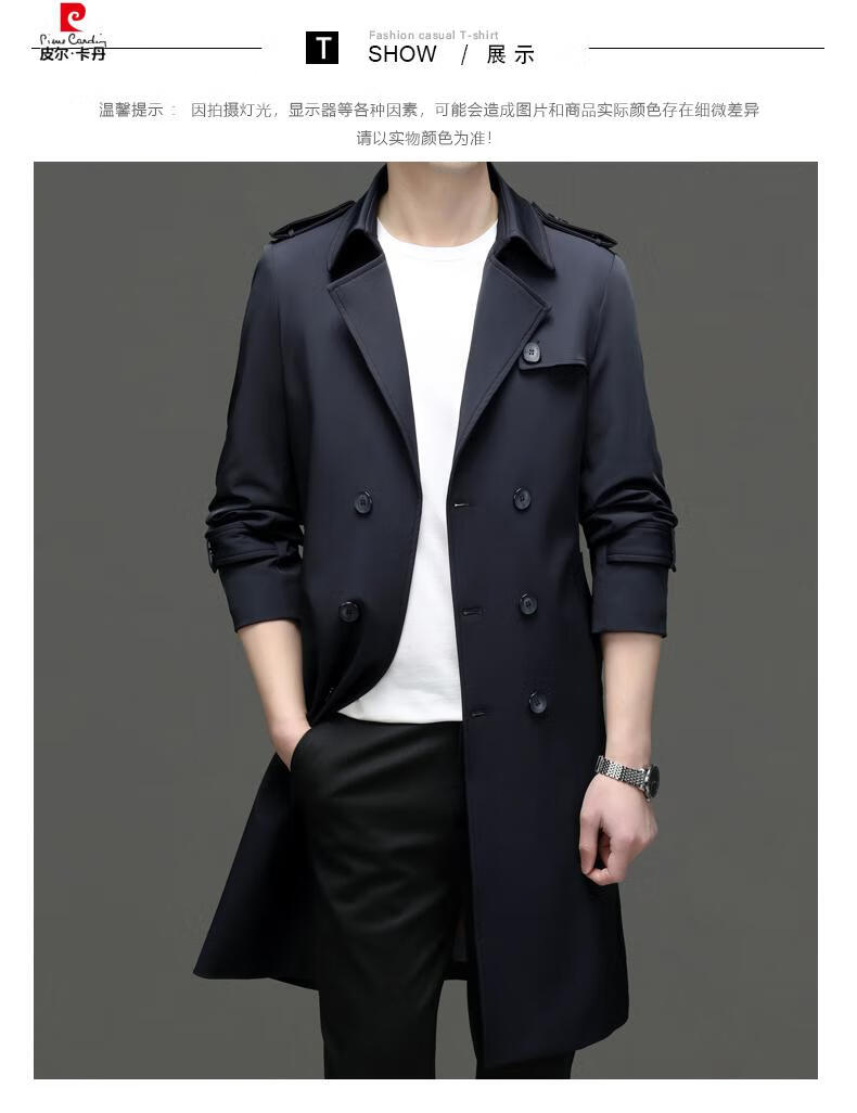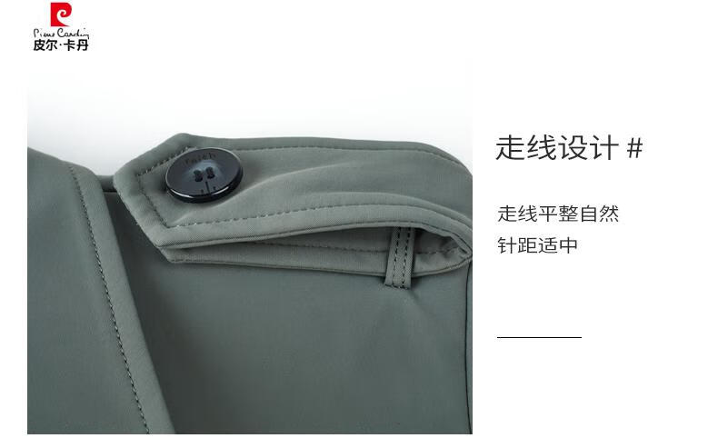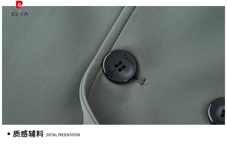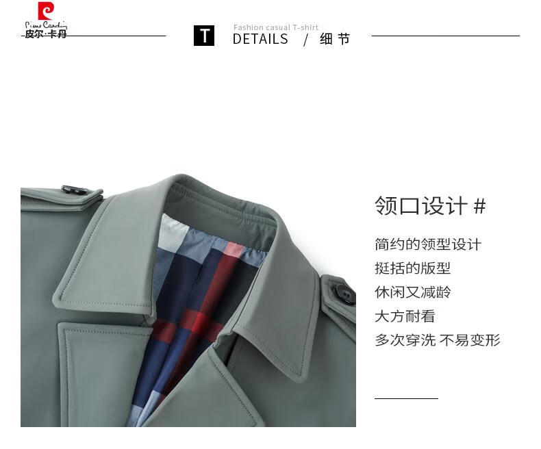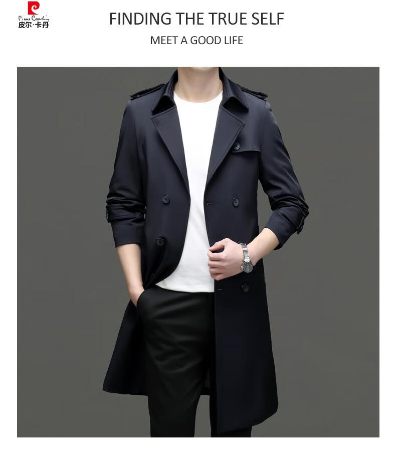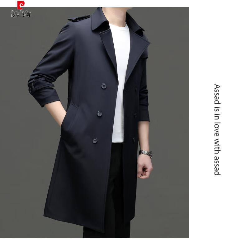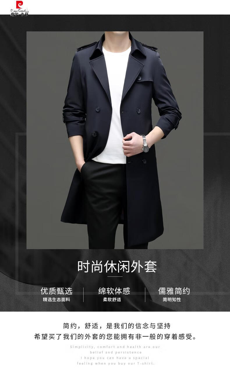 Pierre Cardin high-end high-end windbreaker men's knee-length long 2025 spring and autumn coat men's loose coat British style business men's wear pea green 180/XL