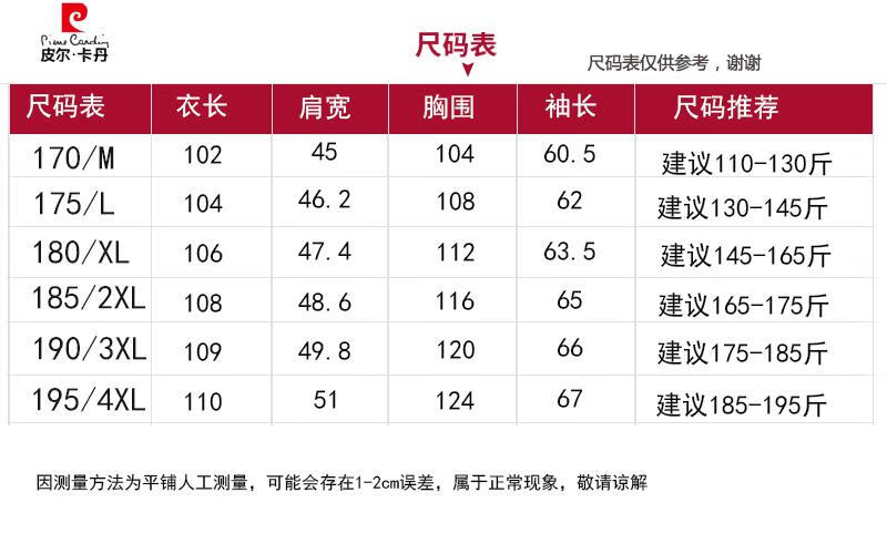 China (cm) 165 / 88-90 170 / 96-98 175 / 108-110 180 / 118-122 185 / 126-130